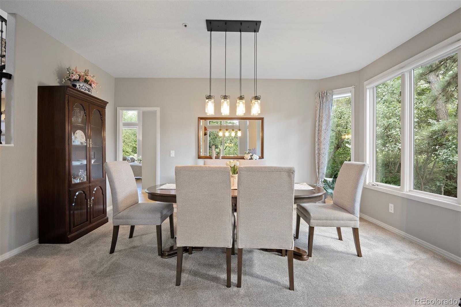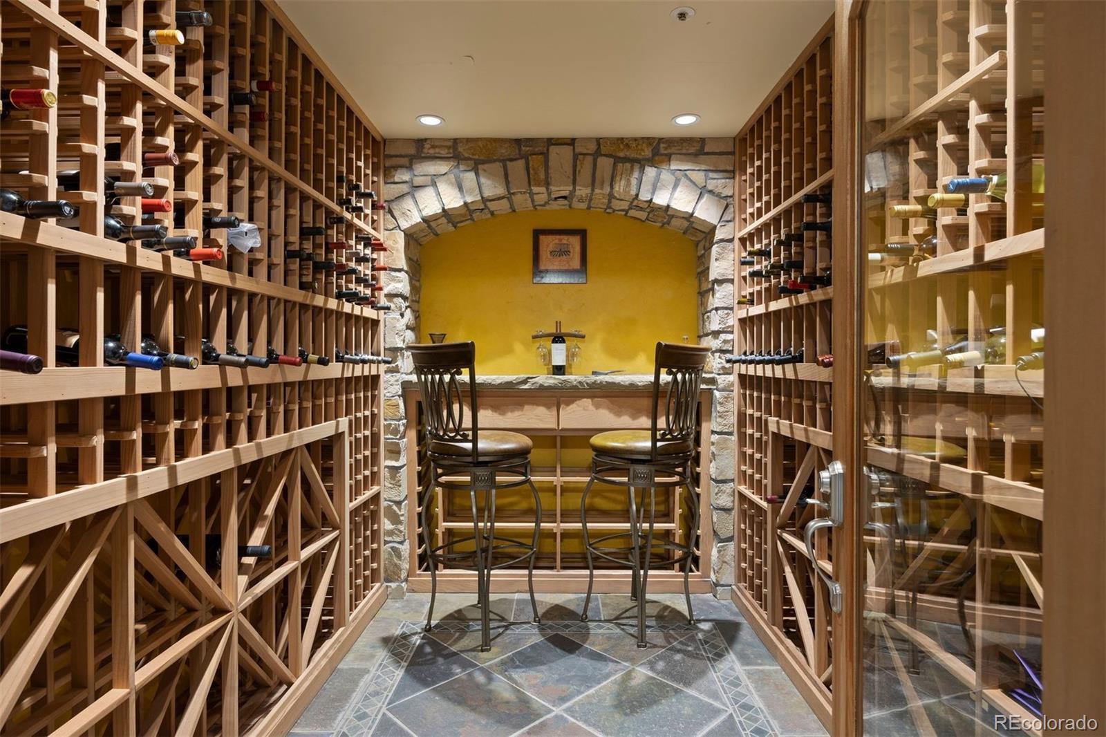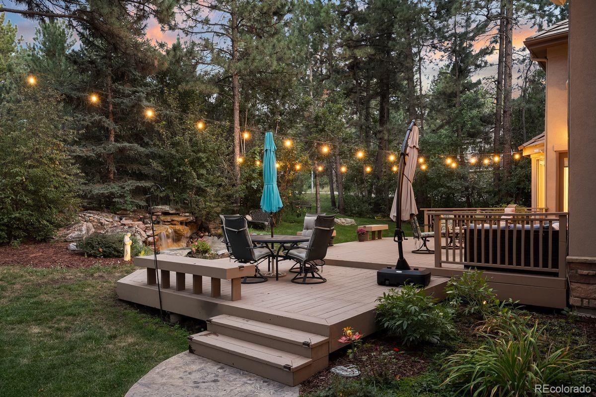 This beautifully updated home in The Village at Castle Pines blends high-end finishes, smart upgrades, and spaces designed for both comfort and connection. The main level is filled with natural light from soaring ceilings and oversized windows. An open layout links the living and dining areas to a stunning kitchen with quartz countertops, hardwood floors, under-cabinet lighting, and new stainless appliances. The family room creates warmth with a floor-to-ceiling stone fireplace, surround sound, walnut built-ins, and motorized shades controlled by remote or app. A main-floor office with French doors and a dual-entry bath offers flexibility for work or guests. Upstairs, the primary suite feels like a retreat with crown molding, a cozy sitting nook, new shutters, and a custom California Closet system. The spa-style bath features dual vanities, a frameless glass shower, and a soaking tub. Secondary bedrooms include walk-in closets and updated baths, while the laundry room adds convenience with storage and a utility sink. The finished basement was designed for entertaining—featuring a sleek bar, game area (pool table included), built-in shelving, a media zone wired for a 75” TV, and a conforming bedroom with its own bath. Wine lovers will appreciate the temperature-controlled cellar with slate flooring and space for 800+ bottles. Outdoors, an expansive deck with bistro lighting overlooks a private three-quarter-acre corner lot with mature trees, a fountain, and a zipline. The oversized garage includes epoxy floors, built-in cabinetry, overhead storage, and an EV charger. With new carpet, updated fixtures, new HVAC, and smart lighting throughout, every detail has been carefully maintained. Enjoy Village amenities including 3 pools (one with a splash pad and zero-entry), pickleball and tennis courts, scenic trails, and frequent wildlife sightings. Explore the 3D tour: copy and paste this link into your browser — https://my.matterport.com/show/?m=DbVwmWKSnWr&mls=1