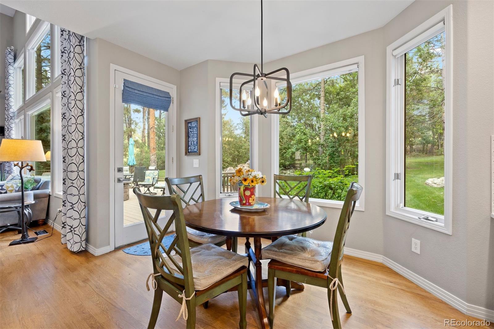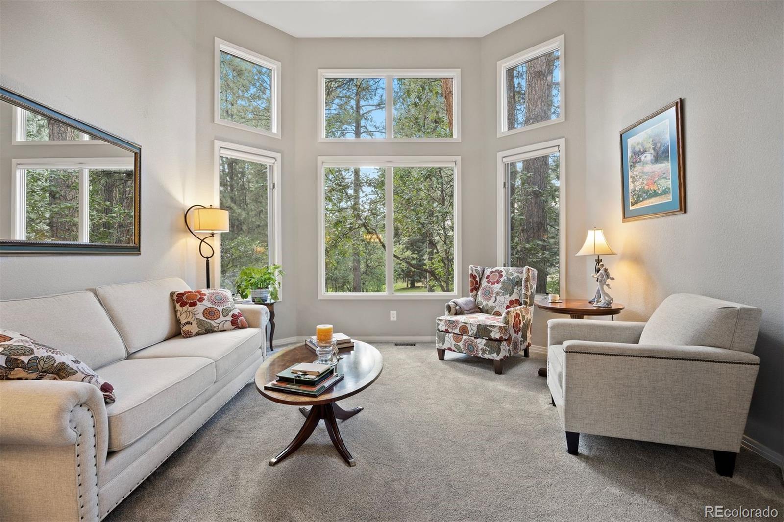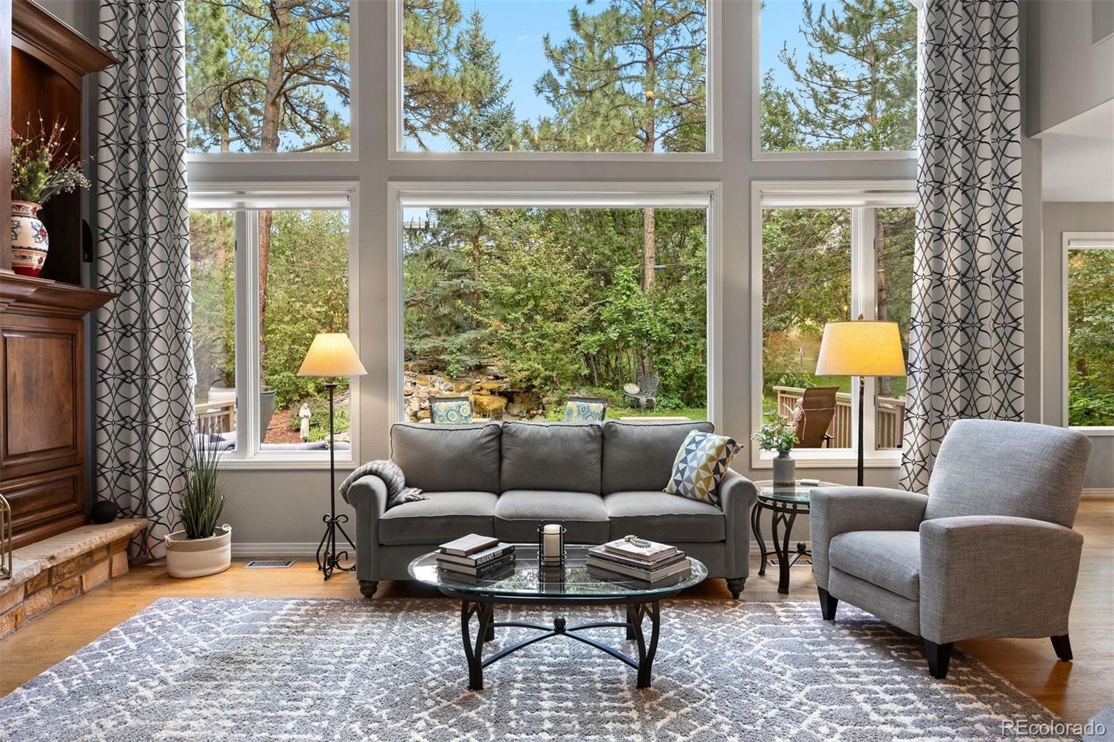 This beautifully updated home in The Village at Castle Pines blends high-end finishes, smart upgrades, and spaces designed for both comfort and connection. The main level is filled with natural light from soaring ceilings and oversized windows. An open layout links the living and dining areas to a stunning kitchen with quartz countertops, hardwood floors, under-cabinet lighting, and new stainless appliances. The family room creates warmth with a floor-to-ceiling stone fireplace, surround sound, walnut built-ins, and motorized shades controlled by remote or app. A main-floor office with French doors and a dual-entry bath offers flexibility for work or guests. Upstairs, the primary suite feels like a retreat with crown molding, a cozy sitting nook, new shutters, and a custom California Closet system. The spa-style bath features dual vanities, a frameless glass shower, and a soaking tub. Secondary bedrooms include walk-in closets and updated baths, while the laundry room adds convenience with storage and a utility sink. The finished basement was designed for entertaining—featuring a sleek bar, game area (pool table included), built-in shelving, a media zone wired for a 75” TV, and a conforming bedroom with its own bath. Wine lovers will appreciate the temperature-controlled cellar with slate flooring and space for 800+ bottles. Outdoors, an expansive deck with bistro lighting overlooks a private three-quarter-acre corner lot with mature trees, a fountain, and a zipline. The oversized garage includes epoxy floors, built-in cabinetry, overhead storage, and an EV charger. With new carpet, updated fixtures, new HVAC, and smart lighting throughout, every detail has been carefully maintained. Enjoy Village amenities including 3 pools (one with a splash pad and zero-entry), pickleball and tennis courts, scenic trails, and frequent wildlife sightings. Explore the 3D tour: copy and paste this link into your browser — https://my.matterport.com/show/?m=DbVwmWKSnWr&mls=1