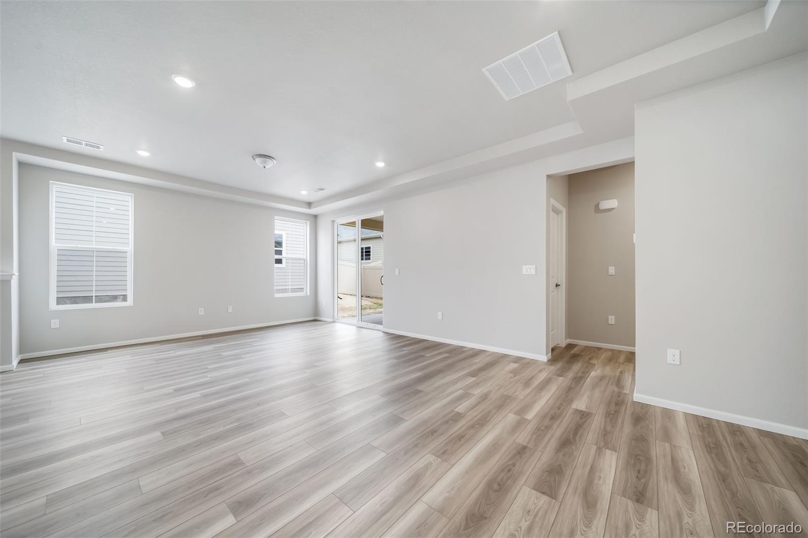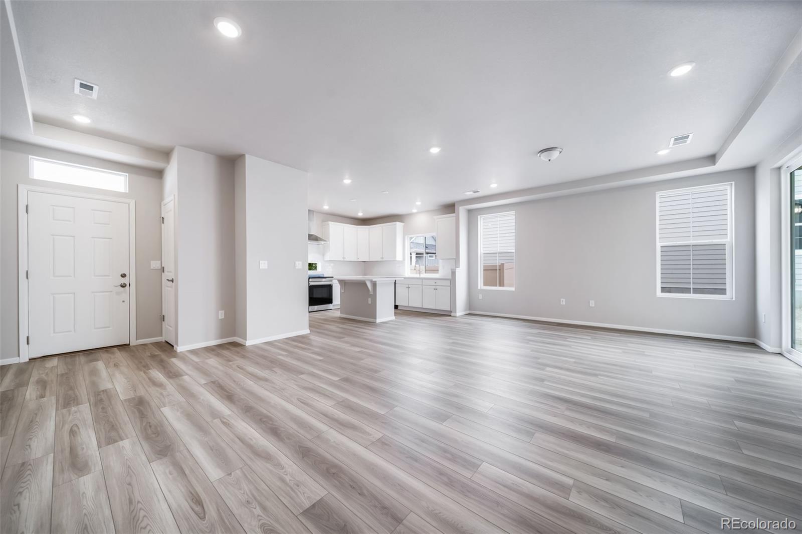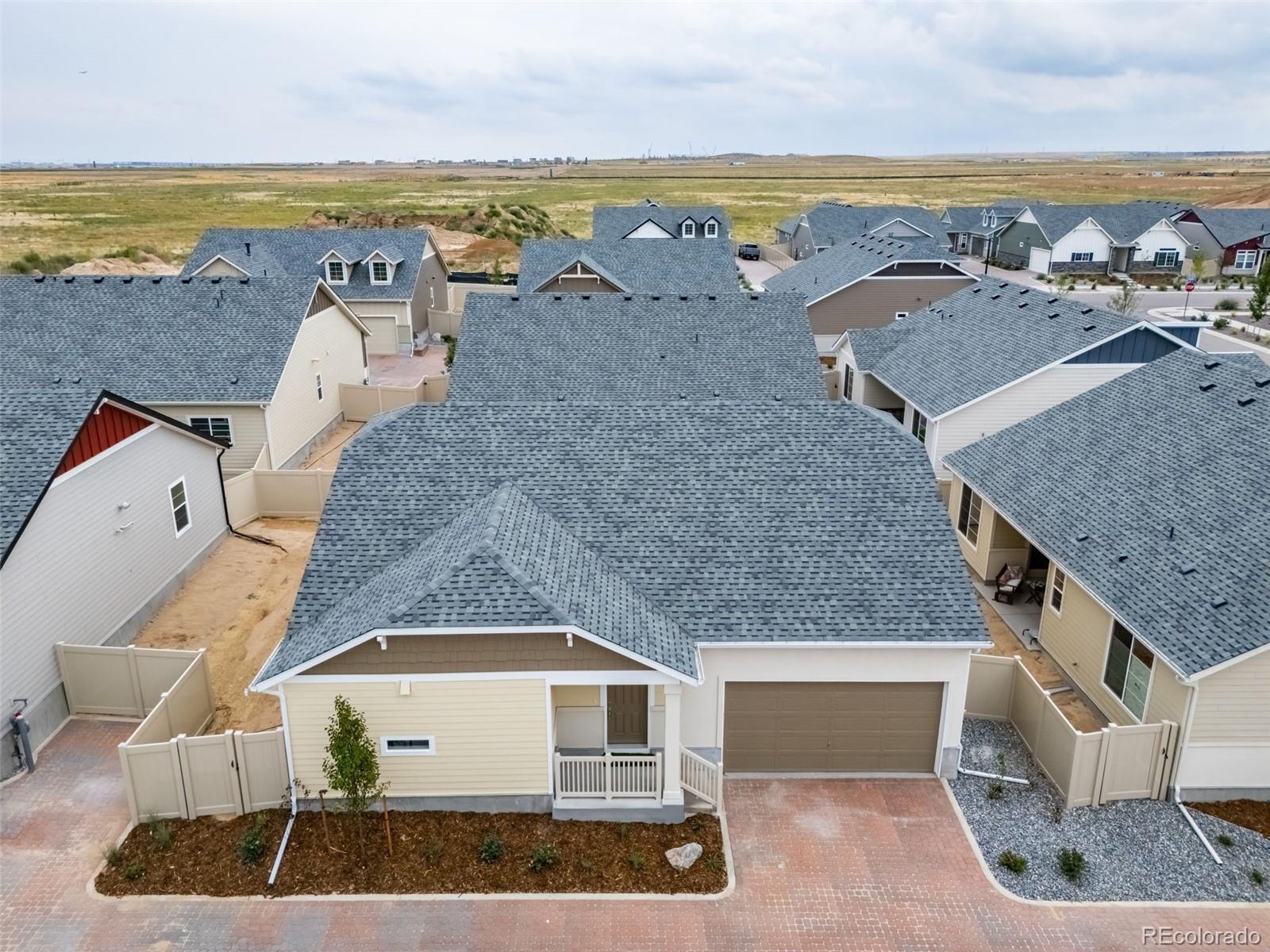The Sojourner- Resort style living at it’s finest located at the Reserve in Green Valley Ranch, Aurora. This charming home with 1409 sq.ft. has 2 bedrooms, 2 bathrooms, open great room living space and a 2-car attached garage. The primary suite offers walk-in closet and a spa shower experience with tile surround and a bench seat. The smartly designed kitchen has an island with quartz countertops and seating. The dining room/great room are perfect for large or small gatherings and the enlarged patio is perfect for your outdoor enjoyment and entertaining. The Farmhouse lifestyle center has a dedicated Lifestyle director who creates engaging events and programs year round. The completed Farmhouse is a 10,000 sq.ft. community center that is the very essence of active living and features a dedicated fitness room, movement studio, special events space and demonstration kitchen plus pickleball and bocce ball courts, a large covered patio and grass event/activity area plus a beach-entry pool and a hot tub with year round access. Residents will have an array of activities to choose from. Home available NOW! *Interior photos are of model home or are artists renderings.*