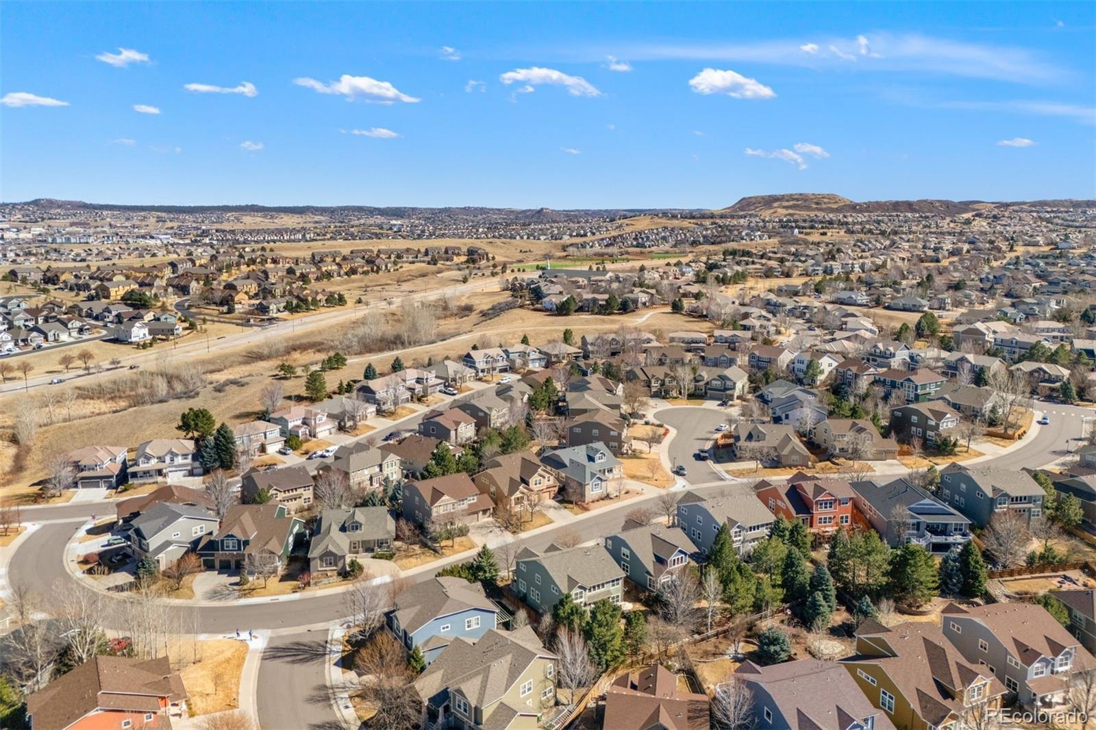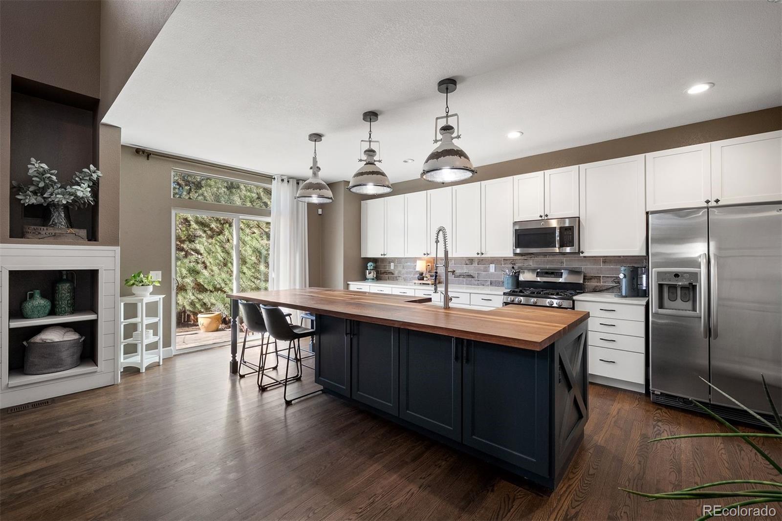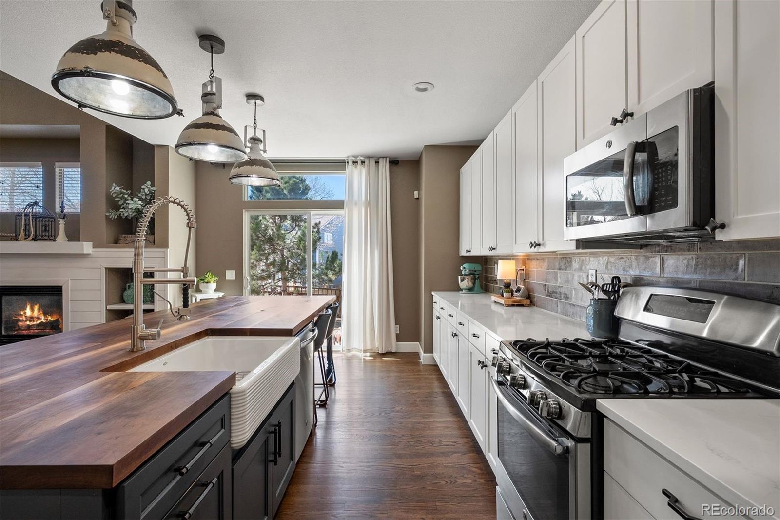 Beautifully remodeled with intention and style, this home in The Meadows blends rustic farmhouse character with modern comfort in one of Castle Rock’s most sought-after neighborhoods. The layout offers space for everyday living and gathering, with four bedrooms on the same level, a dedicated main-level office, a versatile upper loft, and a three-car garage. At the center of the main level, the remodeled kitchen serves as the heart of the home, unfolding just beyond the entry foyer, cozy sitting room, and formal dining area. A large butcher block island anchors the space, extending into breakfast bar seating that connects to the sliding door and deck beyond. Quartz countertops surround the island, complemented by a porcelain farmhouse sink and matching antique farmhouse-style pendant lights. Hardwood floors run throughout the main level and into the dramatic two-story great room, where a gas fireplace and shiplap accent wall add warmth and character beneath soaring 17-foot ceilings. Just off the great room, a dedicated main-level office sits behind French doors, featuring a statement tile accent wall and plenty of space to work from home or manage the day. Upstairs, the primary suite offers vaulted ceilings and views toward the foothills. The ensuite bath provides a quiet place to unwind with a soaking tub, tiled walk-in shower, dual vanities, and a walk-in closet. Three additional bedrooms, each with ceiling fans, share a dual-sink full bath on the same level. Outside, the backyard feels private and serene among mature pine trees. A two-tier extended stamped concrete patio creates space for both outdoor living and dining, surrounded by landscaping. Located in the coveted Meadows community, the home offers easy access to trails, parks, top-rated schools, shopping, and neighborhood pools. This Castle Rock home is ready for its next chapter. Come see it for yourself.