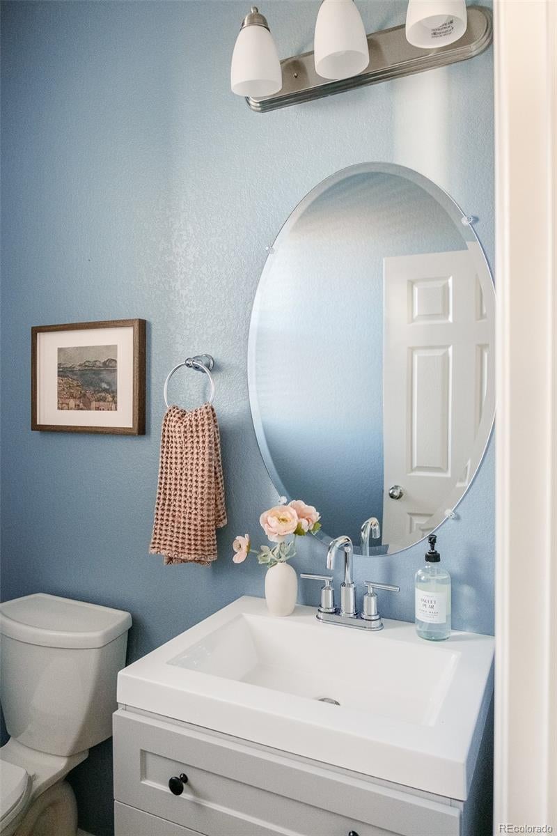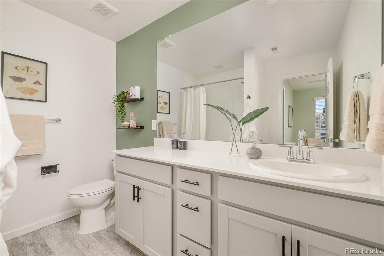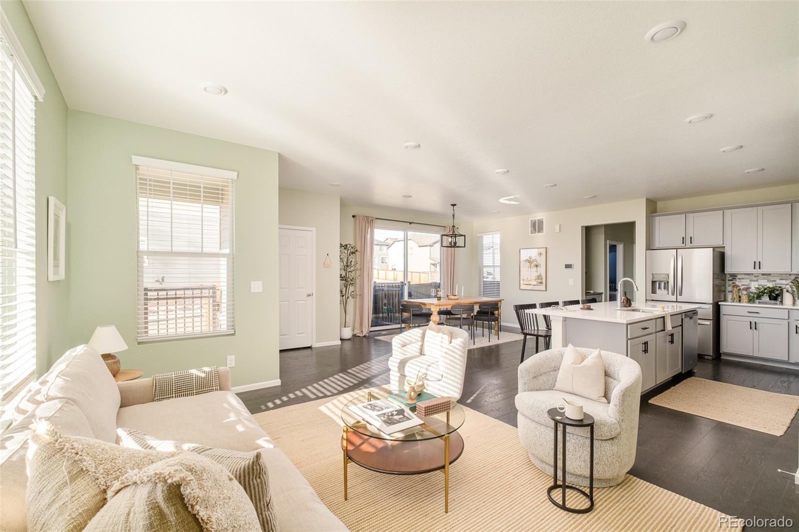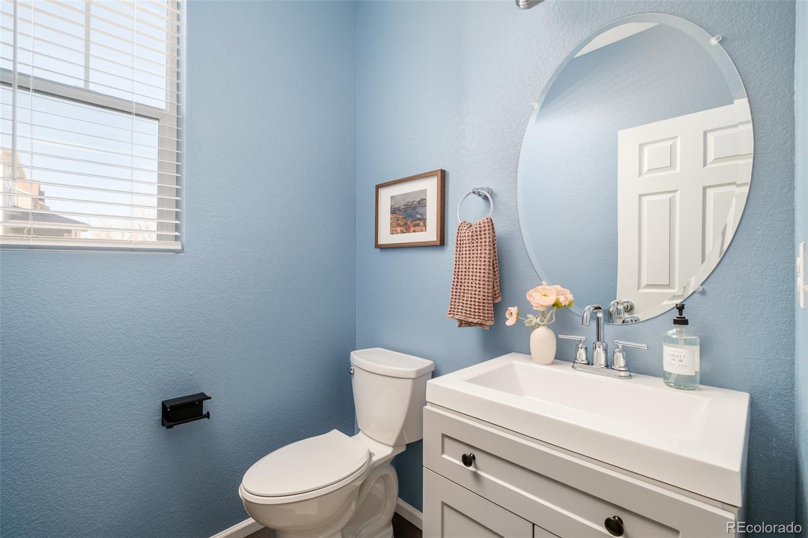 Welcome to 17466 Bluetrail Avenue — a light-filled and stylish paired home in the heart of Parker. With nearly 2,000 square feet of above ground living space, this home offers thoughtful updates, playful finishes, and a layout that lives effortlessly. The main floor features LVP flooring, an open-concept kitchen with quartz countertops, stainless steel appliances, coffee/organization station, plus a spacious living and dining area perfect for entertaining. Upstairs, enjoy freshly cleaned carpet, a spacious loft/flex space (perfect as a sitting area or work area), and a full-size convenient laundry room with open shelving. The expansive primary suite is a serene retreat, with a spa-like bath featuring a double vanity and large shower, and a sunny walk-in closet. The 2 spacious secondary bedrooms and the shared full bathroom are perfect for guests or kids alike. There's a large unfinished basement that is ready for the next homeowner's personal touch. A welcoming side yard and covered front porch offers the perfect spots to enjoy your morning coffee or evening wind-down. Ideally located across from open space and trails and just minutes from the community pool, playground and downtown Parker — this home blends modern comfort with tasteful finishes in one of Parker’s most desirable communities.
