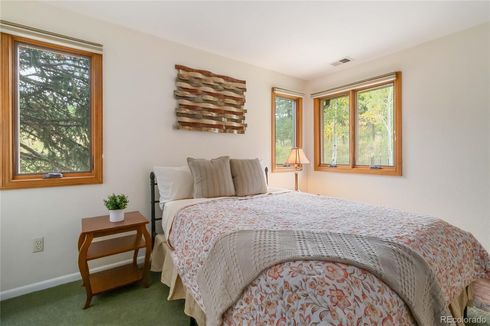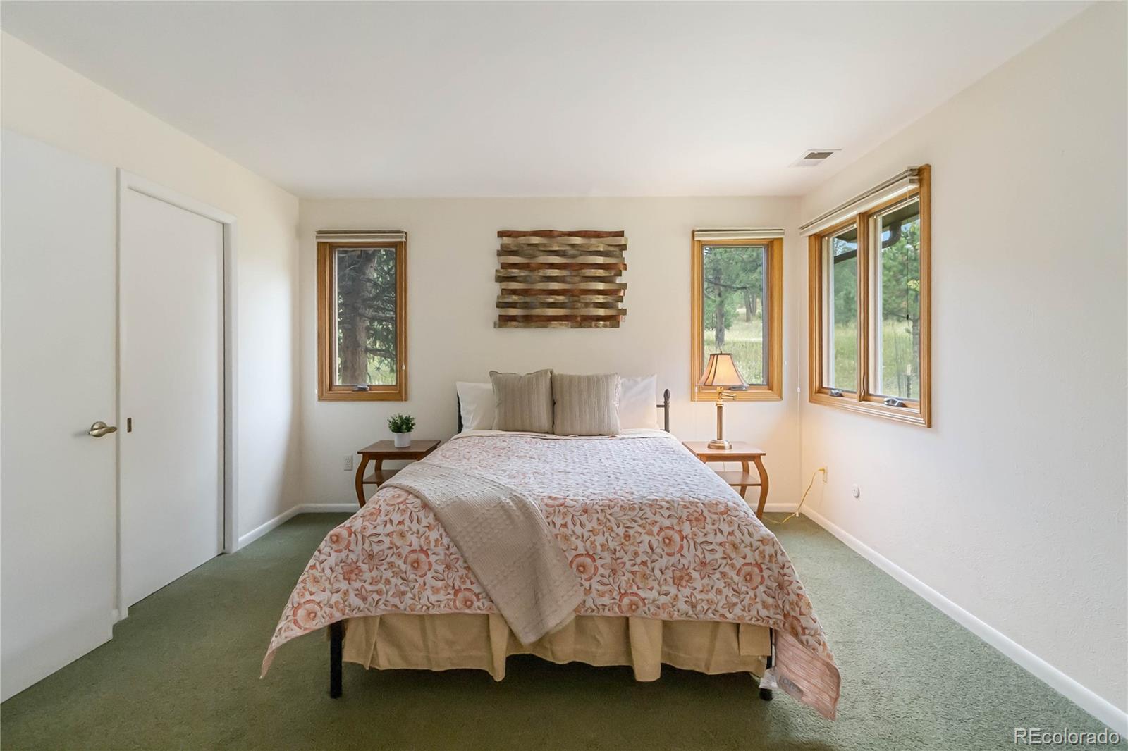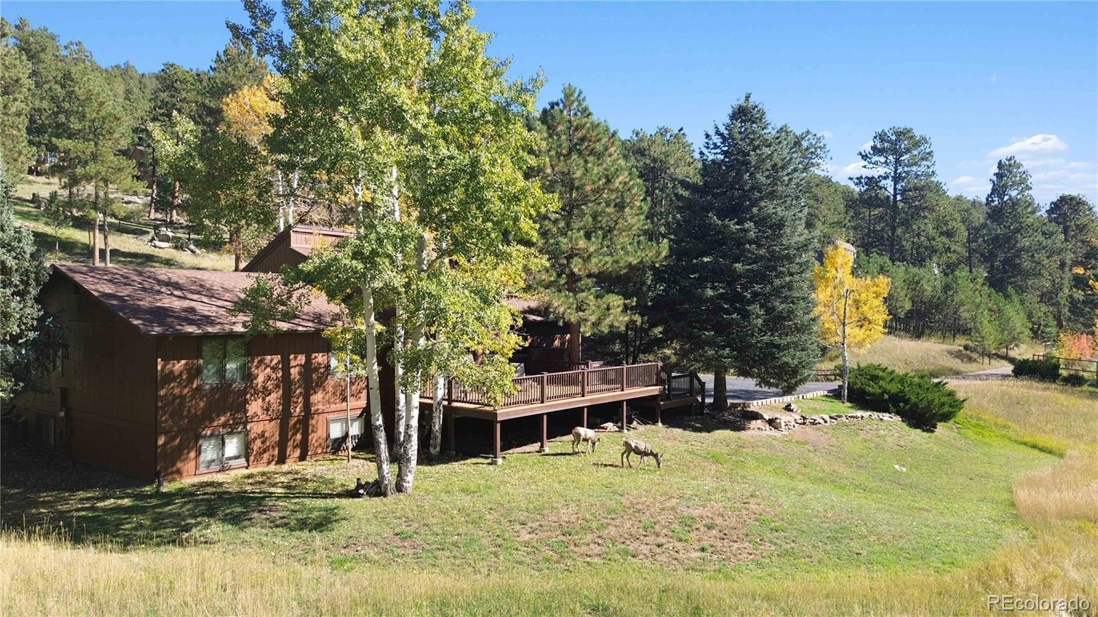 Perched on one of Hiwan Hills’ most desirable corner lots, 28964 Western Drive offers a rare opportunity to own a sought after raised ranch in the heart of North Evergreen—where peaceful mountain living meets everyday convenience. This solid, move-in-ready 5-bedroom, 3-bath home sits just minutes from Evergreen Town Center, lake access, and I-70, providing quick access to Denver, ski country, and all that the foothills have to offer. Expansive decks take full advantage of the natural surroundings and serene views, creating ideal spaces for relaxing or entertaining. Inside, you’ll find an open-concept kitchen with newer appliances, a bright dining area with patio access and hardwood floors, and a vaulted living room with a cozy fireplace and built-ins. The oversized primary suite features a full en-suite bath, walk-in closet, and abundant natural light, while two additional bedrooms share a hallway bath. The fully finished lower level includes a spacious family room with fireplace, two bedrooms, an updated 3/4 bath, and laundry area with stackable washer/dryer. Recent upgrades include a 40-year Class 4 roof (2024) with leaf screen gutters, brand-new exterior paint, fire mitigation, a fully encapsulated crawlspace, and a new water heater (2025). An oversized garage provides ample storage. With its ideal North Evergreen location, community feel, and thoughtful updates, this home delivers both comfort and long-term value in one of the area’s most desirable settings.