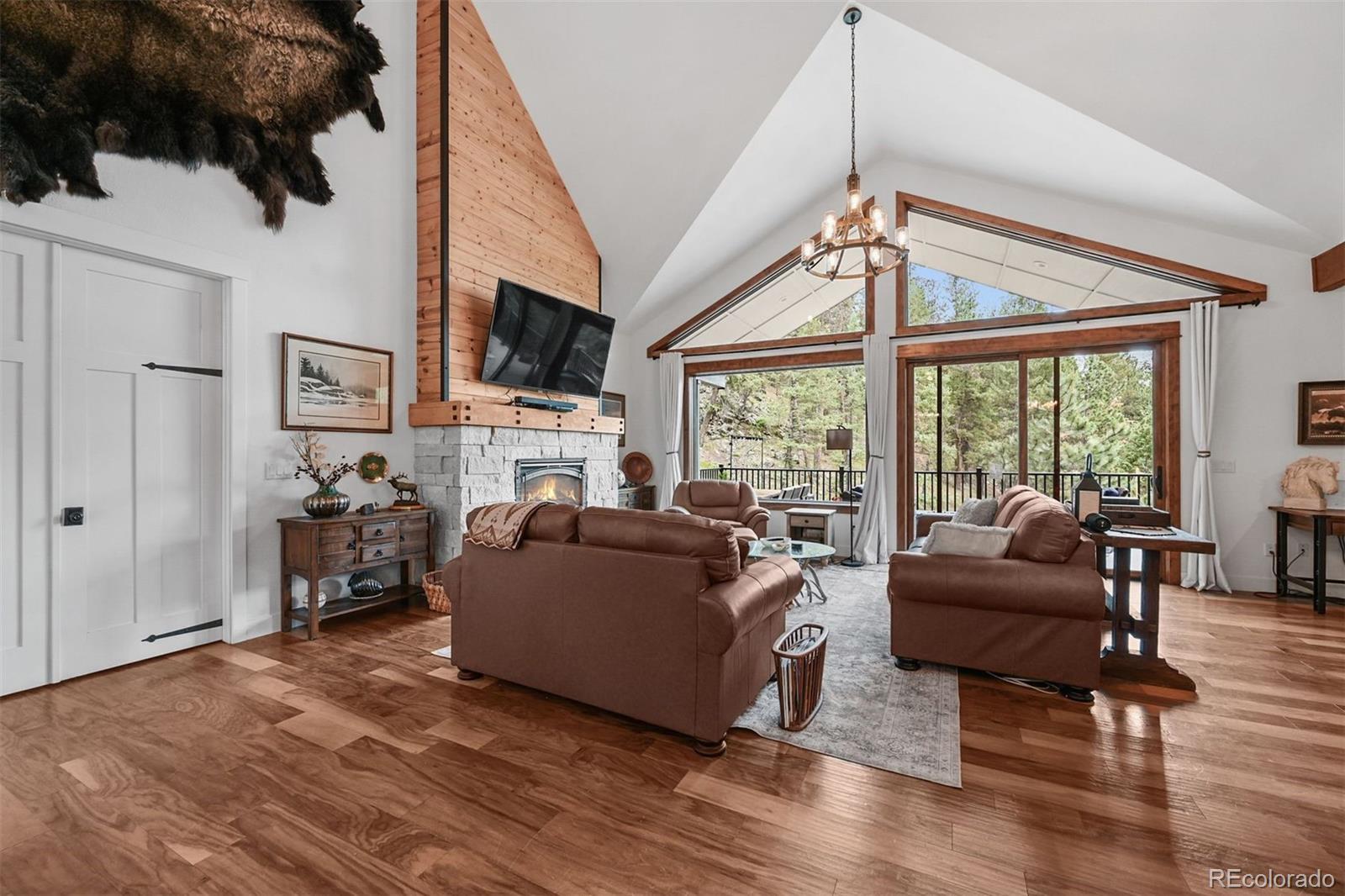Tucked away in the heart of Roland Valley, this custom mountain home feels like a private retreat where nature and modern comfort come together seamlessly. Surrounded by towering pines and set on 18 acres of land, it offers a rare balance of serenity, luxury, and adventure—right outside your back door. From the moment you step inside, the home welcomes you with soaring vaulted ceilings, exposed timber beams, and walls of windows that invite the forest indoors. Sunlight pours across rich hardwood floors, while a stone fireplace anchors the open living space with warmth and character. Every detail is crafted to blend mountain charm with refined elegance. At the heart of the home, the gourmet kitchen is both beautiful and functional, featuring high-end appliances, quartz countertops, custom cabinetry, and a spacious island designed for gathering. Flowing seamlessly into the family room and dining area, it opens to a partially covered deck where morning coffee, evening sunsets, and year-round entertaining all feel effortless. The primary suite is a private sanctuary, complete with vaulted ceilings, a gas fireplace, and access to its own deck. Its spa-like bathroom invites you to unwind with a soaking tub, walk-in shower, and dual vanities. Two additional bedrooms, including a secondary suite, continue the home’s thoughtful design, while the finished lower level adds flexibility with bonus rooms and a fourth bedroom that can serve as a guest suite, studio, or home office. Outdoor living is just as exceptional as the indoors, featuring a fenced yard, a screened-in gazebo, and a spacious deck designed for entertaining—whether it’s a cozy family barbecue or a lively gathering of friends. A dedicated RV camper parking area adds even more value, providing the perfect setup for visiting guests or your own adventure-ready rig. This isn’t just a home—it’s a mountain lifestyle! Motivated Sellers! All offers will be presented and considered!