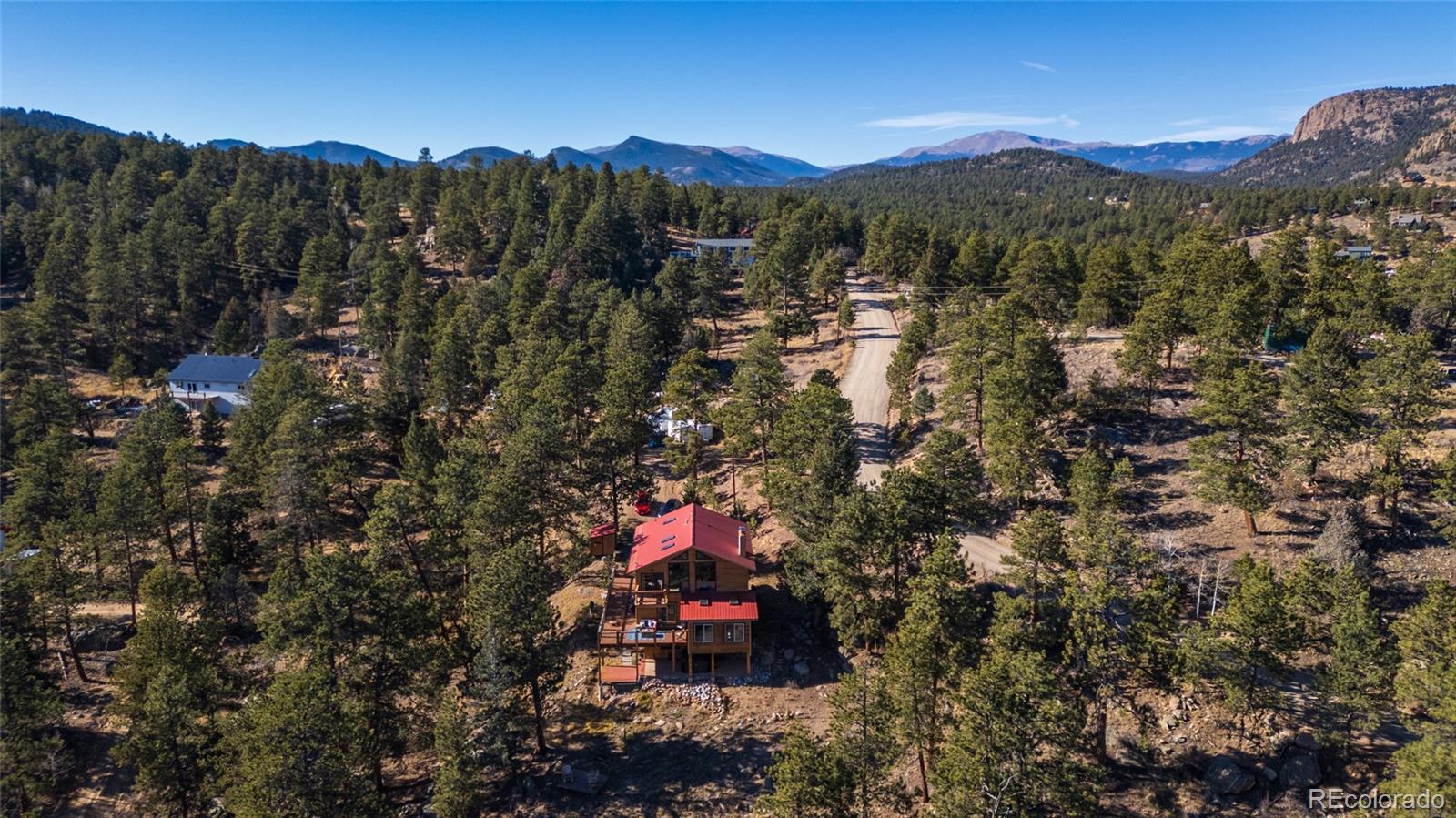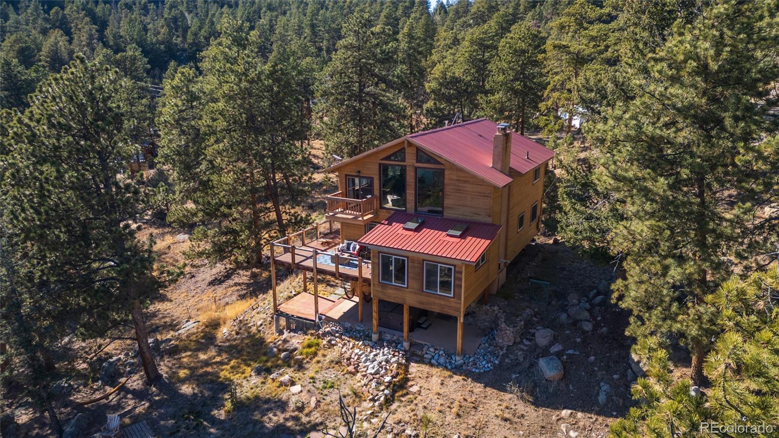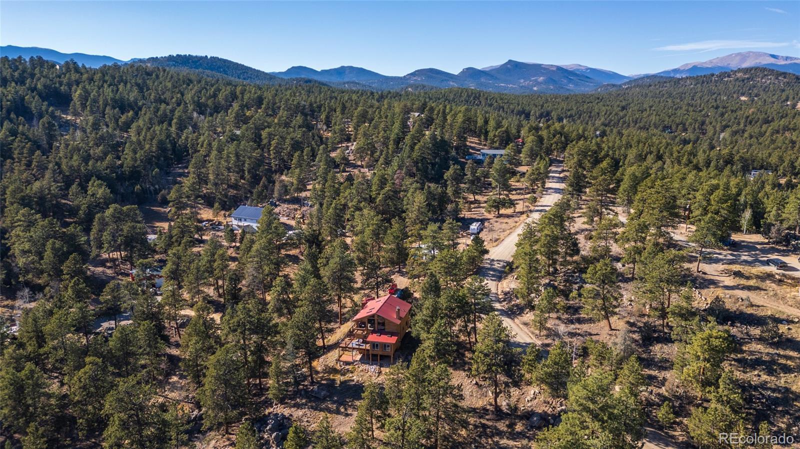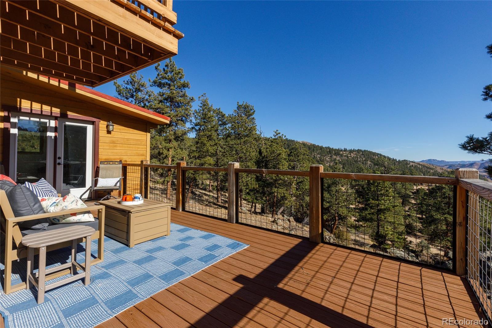 Escape to your own slice of mountain paradise! This tri-level, stunning home sits on 2 private acres surrounded by towering pines, dramatic moss-rock outcroppings & breathtaking panoramic views. Enjoy the sunrise from your upper level, private viewing platform or relax in the sunshine on the elevated expansive wrap-around Trex deck! Inside, you’ll find an open-concept floor plan w soaring ceilings & walls of windows that flood the home w natural light. The main living area features a striking moss-rock wood burning fireplace, cozy cedar-finished sunroom w skylights & double french doors that open onto the deck. The walk-out lower level offers its own living space w a pellet stove ez hot tub access & a private bedroom w sink and vanity—perfect for guests. Upstairs, the sunny loft w movie screen that overlooks the main living area & leads to the primary suite, complete w a luxurious 5 piece bath & stunning views from every window & a beautiful stained glass feature. Additional highlights include a mudroom with built-in storage spacious laundry room, low-maintenance metal roof & an attached two-car garage. This 3-bedroom, 2-bath retreat is move-in ready & fully furnished—most everything can stay! That includes quality furniture, appliances, a newer large hot tub, Starlink dish, snow blower, log splitter, tree trimmer/chainsaw/gas storage/misc yard equipment & more! voluntary hoa includes access to a private fishing pond & hiking trail to Mt Bailey! (www.burlandhomeowners.org/park) Move right in and relax—all the work has been done for you! Brand-new furnace, dishwasher & light fixtures throughout! Plus, enjoy peace of mind with major updates from the past decade, including a low-maintenance metal roof, cedar siding, Trex decking, water softener & pump, windows, septic system, water heater & stainless steel appliances! Located just a few miles off Hwy 285 & less than an hour from Denver, you’ll enjoy total tranquility with easy access to the city!