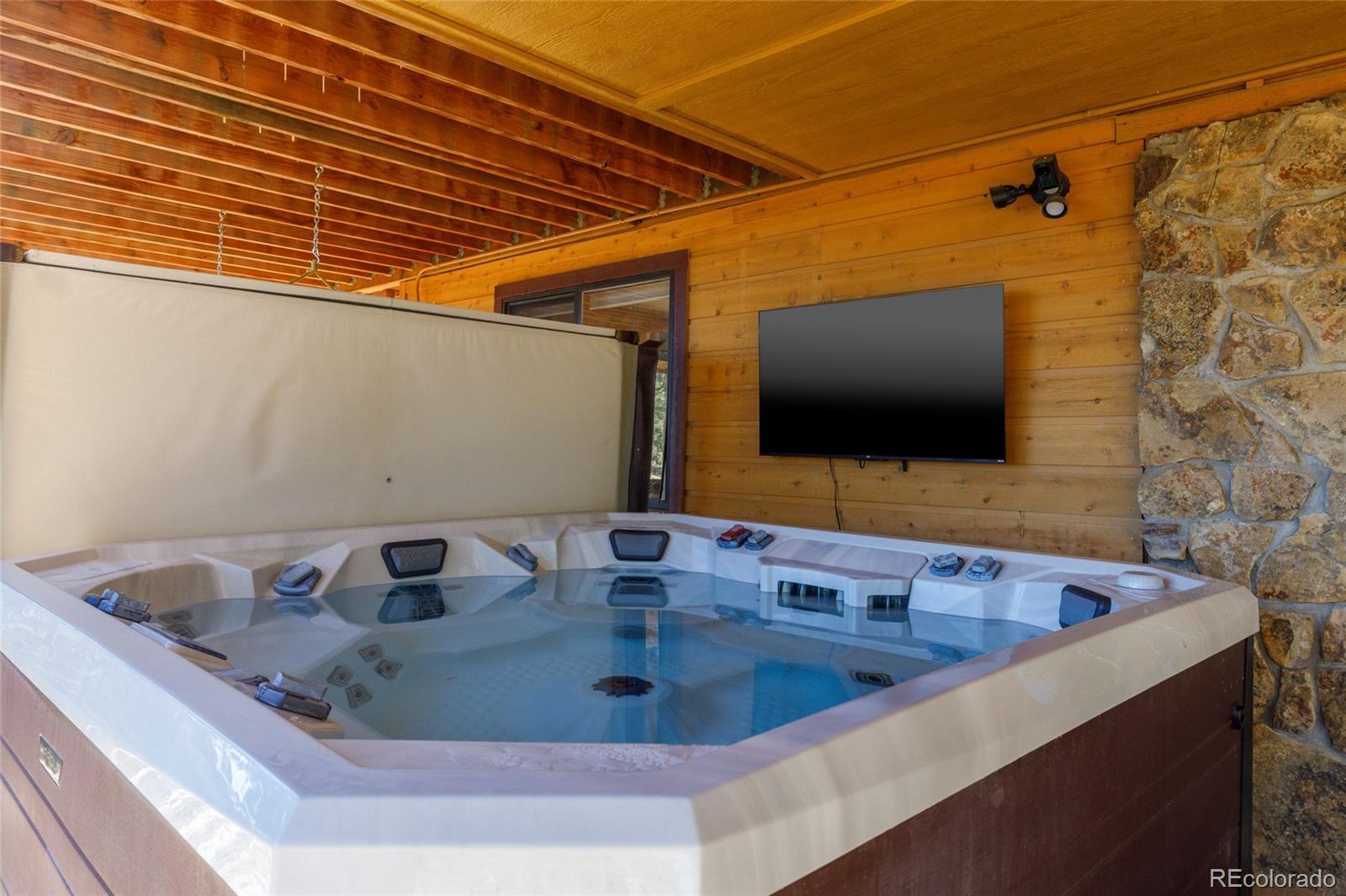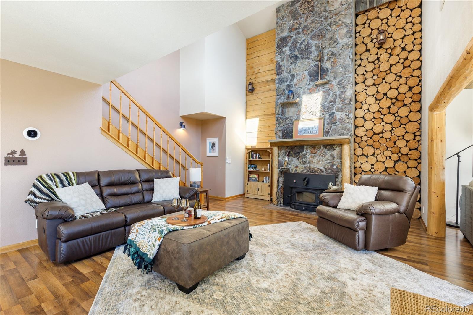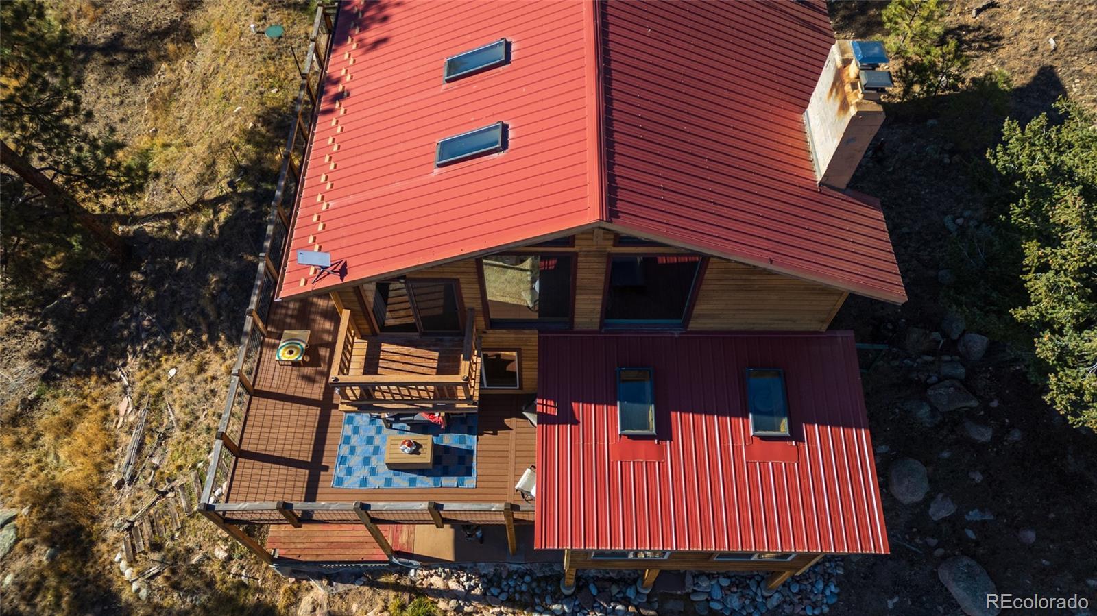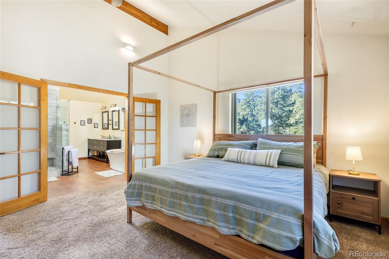 Escape to your own slice of mountain paradise! This tri-level, stunning home sits on 2 private acres surrounded by towering pines, dramatic moss-rock outcroppings & breathtaking panoramic views. Enjoy the sunrise from your upper level, private viewing platform or relax in the sunshine on the elevated expansive wrap-around Trex deck! Inside, you’ll find an open-concept floor plan w soaring ceilings & walls of windows that flood the home w natural light. The main living area features a striking moss-rock wood burning fireplace, cozy cedar-finished sunroom w skylights & double french doors that open onto the deck. The walk-out lower level offers its own living space w a pellet stove ez hot tub access & a private bedroom w sink and vanity—perfect for guests. Upstairs, the sunny loft w movie screen that overlooks the main living area & leads to the primary suite, complete w a luxurious 5 piece bath & stunning views from every window & a beautiful stained glass feature. Additional highlights include a mudroom with built-in storage spacious laundry room, low-maintenance metal roof & an attached two-car garage. This 3-bedroom, 2-bath retreat is move-in ready & fully furnished—most everything can stay! That includes quality furniture, appliances, a newer large hot tub, Starlink dish, snow blower, log splitter, tree trimmer/chainsaw/gas storage/misc yard equipment & more! voluntary hoa includes access to a private fishing pond & hiking trail to Mt Bailey! (www.burlandhomeowners.org/park) Move right in and relax—all the work has been done for you! Brand-new furnace, dishwasher & light fixtures throughout! Plus, enjoy peace of mind with major updates from the past decade, including a low-maintenance metal roof, cedar siding, Trex decking, water softener & pump, windows, septic system, water heater & stainless steel appliances! Located just a few miles off Hwy 285 & less than an hour from Denver, you’ll enjoy total tranquility with easy access to the city!