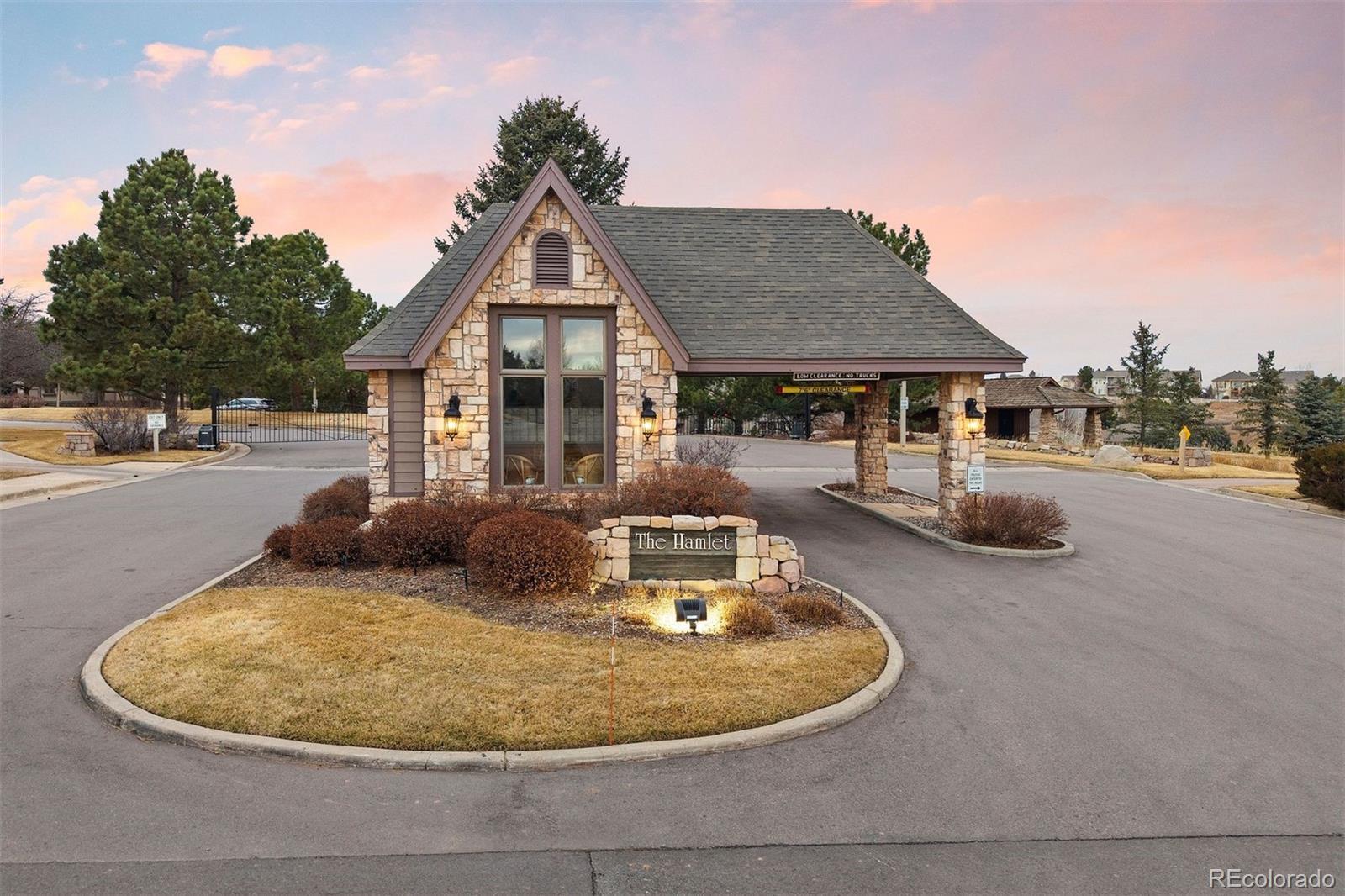 Instead of escaping to the mountains, imagine stepping onto your tranquil deck as a pond reflects the afternoon sky and rolling greens stretch beyond the trees along the fairway. Tucked within the gated community of The Hamlet in Castle Pines, this serene ranch offers the ease of main-floor living with space to entertain. Tall, vaulted ceilings and Andersen windows on the main level invite natural light and frame views of towering pines, the fairway, and the pond beyond, often dotted with ducks and geese. Embracing classic Colorado charm with beautiful wood floors, the great room’s fireplace anchors a warm gathering space, while the kitchen opens seamlessly to a redwood deck with electric awning, ideal for morning coffee, summer dinners, or quiet wildlife sightings at dusk. The main-floor primary suite enjoys tranquil views, offering a peaceful retreat at the end of the day. Downstairs, the walkout basement expands the home’s versatility with a generous living area, theater room, wet bar, guest bedroom, and a flexible fourth bedroom or game room, office, or den. A lower covered patio and extended flagstone terrace continue the indoor-outdoor connection. Recent improvements include a newer roof, new garage door, radon mitigation system, and a 50-gallon boiler. A two-car garage and abundant storage add practicality to the setting. Backing to the 5th fairway of The Ridge Golf Course and just moments from its clubhouse amenities, and surrounded by mature pines and abundant wildlife, this home offers private, low-maintenance Colorado living within one of Castle Pines’ most desirable gated communities.