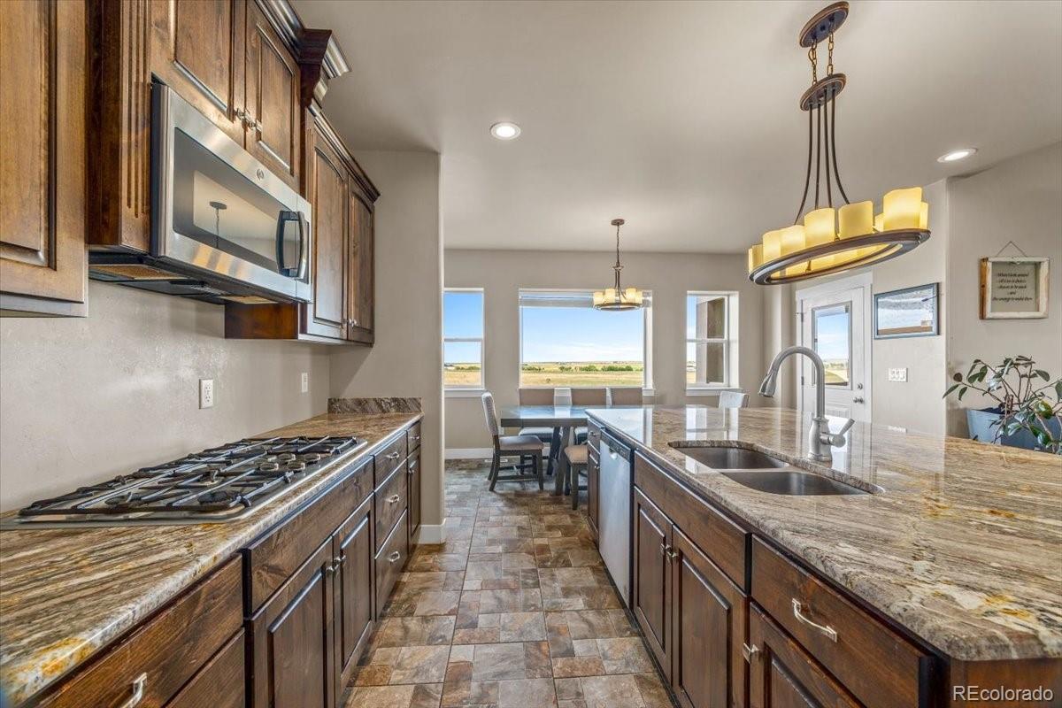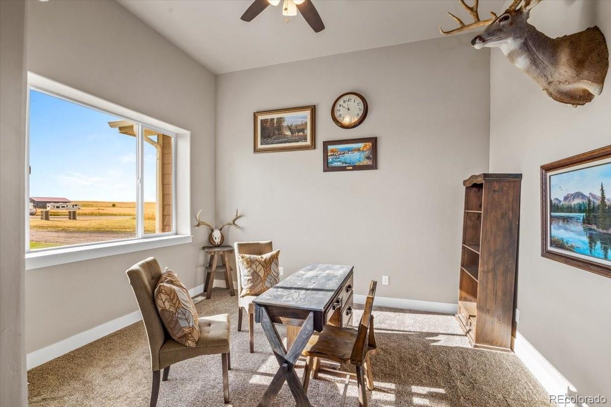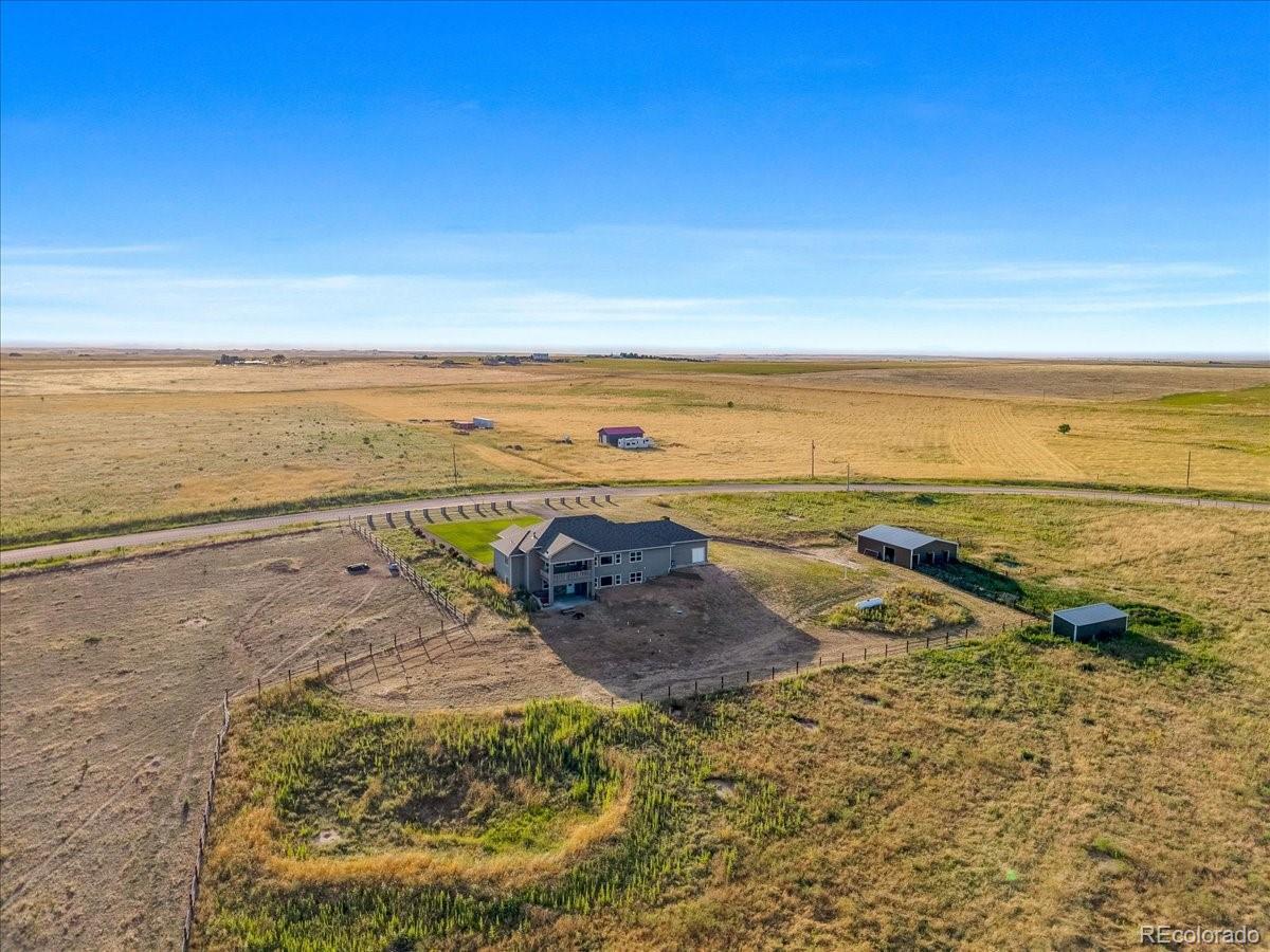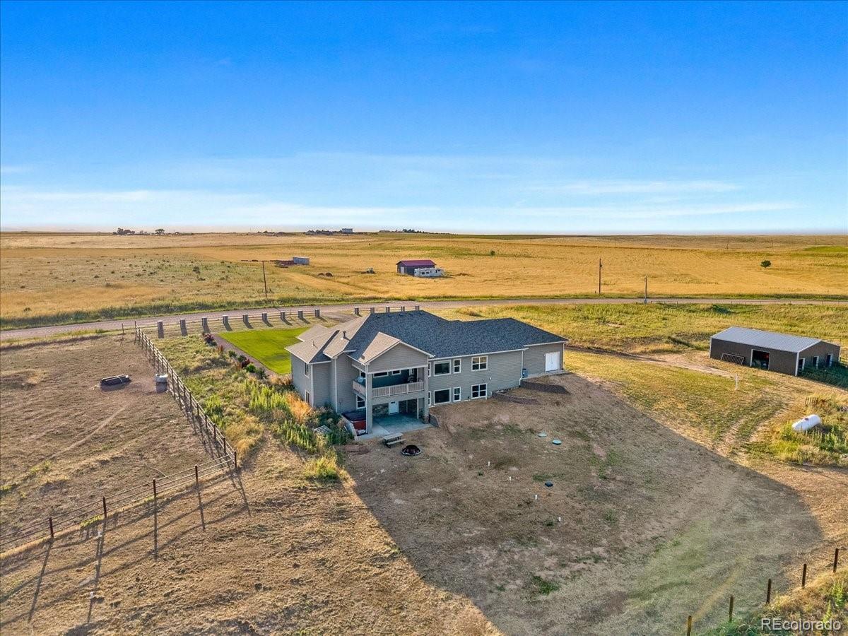 Exquisite Custom Estate on 35 Acres | Multi-Generational Design | Panoramic Views Situated in an unparalleled location, this one-of-a-kind custom estate offers the rare convenience of being within 20 minutes of Kiowa, Bennett, and Southlands, providing easy access to schools, dining, shopping, and commuter routes—all while enjoying complete privacy and serenity across 35 pristine acres. This beautifully crafted residence features 4,742 square feet of exceptional living space, designed with both comfort and function in mind. With 6 spacious bedrooms and 5 well-appointed bathrooms, this home is ideal for multi-generational living or extended guests. Enjoy full kitchens, laundry rooms, and family rooms on both the main and lower levels, allowing for truly independent living quarters while maintaining a cohesive layout. The main chef’s kitchen showcases a massive one-slab island, high-end finishes, and abundant custom cabinetry—perfect for entertaining or everyday living. Step outside to lush, irrigated lawn with real sod in the front yard, and take in unmatched 360° views of Colorado’s breathtaking countryside. A standout feature is the oversized garage with 6 total parking spaces, along with ample room for your RV, recreational vehicles, tools, or private collection. The estate also includes a 1,200 sq ft barn, fully equipped with electric and water, offering space for up to 5 stalls. Additional features include multiple paddocks, and the land is fully fenced and cross-fenced, with water access in all pastures—ideal for horses, livestock, or any agricultural vision or hobby farm lifestyle. Whether you're looking to raise animals or simply enjoy the peace and productivity of rural living, this property offers endless possibilities. This estate is a rare opportunity to own luxury, acreage, and versatility—all in one.