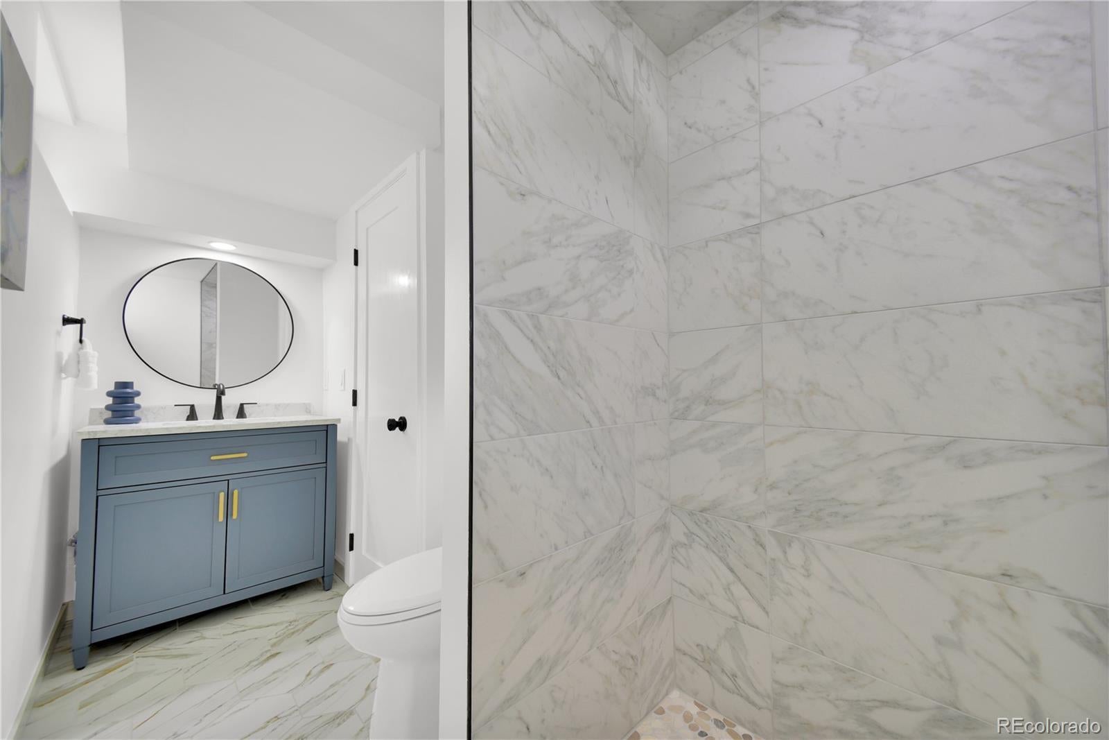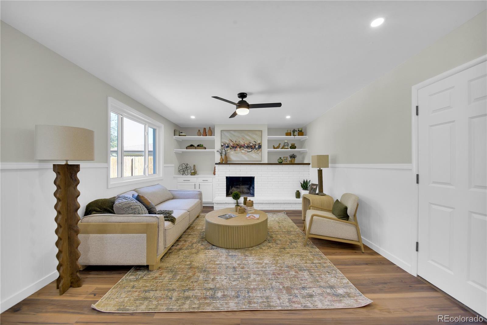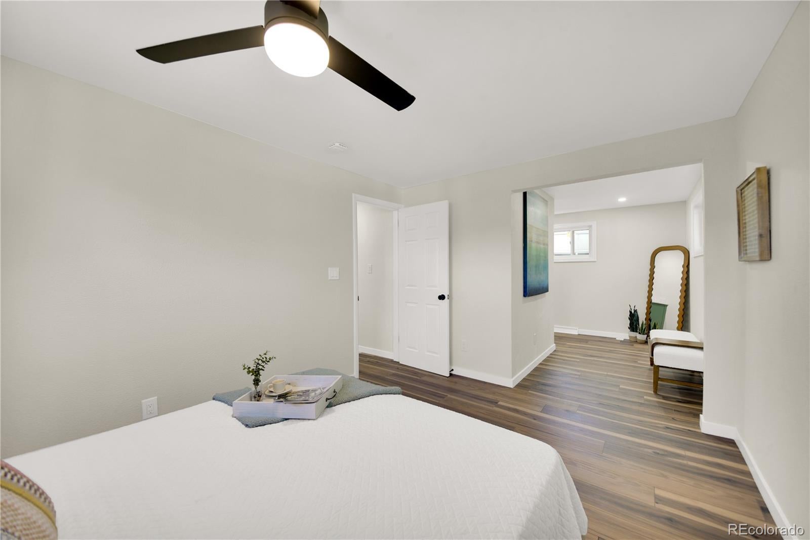 Welcome to this newly remodeled turn-key home in the heart of Broomfield, close to so many amenities and transportation hubs. The bones of this home have been completely updated with new and permitted electrical, plumbing, central air conditioning, furnace, water heater, concrete, energy efficient windows, and roof (2024). Pulling in to the new concrete driveway, you are greeted by new exterior paint and professional landscaping, including a sprinkling system controlled with an app on your phone. The new concrete and landscaping extends with a pathway to the front porch and a pathway leading to the backyard with mature trees, including a very productive apple tree! Inside, you will find new energy efficient windows highlighted by the large picture window in the living room allowing abundant natural light into the property. The main floor primary suite features a sitting area, large walk-in closet and bathroom with a walk-in shower with bench. The smaller bedroom makes for an ideal office or nursery with a full bathroom with double vanity across the hallway. The kitchen has been opened up for a natural flow between the living and family rooms and features all new custom cabinetry and backsplash, stainless steel appliances, and quartz counters with breakfast bar. The family room's highlight is the brick, wood-burning fireplace, with an easily accessible gas tap to convert to gas burning if desired. There is also access to the newly poured concrete patio and to the finished basement with two large permitted bedrooms with new egress windows, new carpeting, a new 3/4 bathroom, laundry room (washer and dryer included), and ample storage. The largest bedroom has the option to separate a space as a bonus/game room. Schedule a showing today!