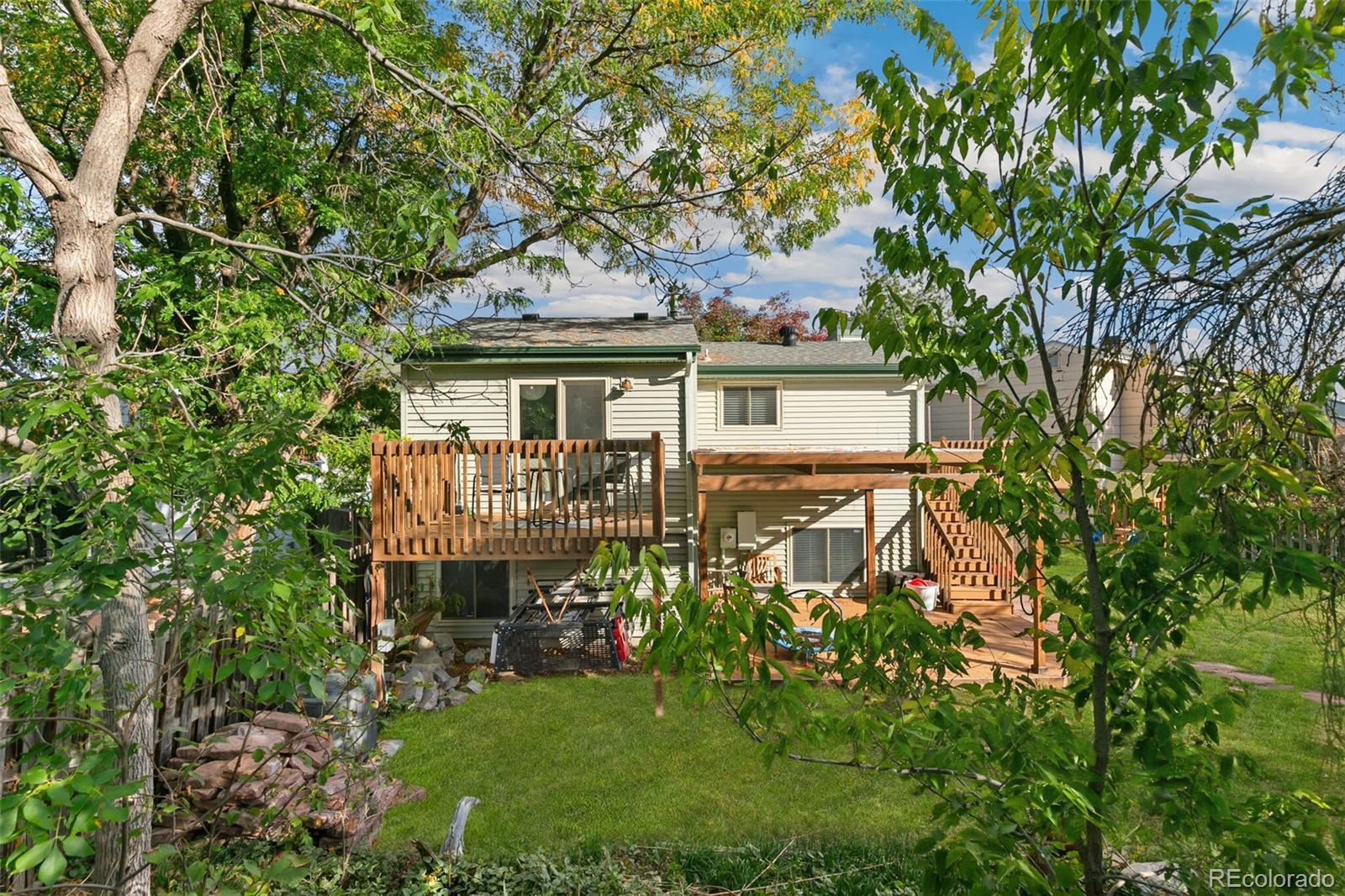 Welcome to your charming retreat tucked away in the Briarwood community of Aurora. This move-in-ready tri-level home combines comfort, versatility, and an enviable cul-de-sac location, adding both value and privacy. Offering 1,169 sq. ft. of modern living space, two bedrooms, two bathrooms, and a lower-level flex space that could serve as a 3rd bedroom or home office. The functional floor plan features separate bedrooms and bathrooms on each level, complemented by fresh paint throughout the interior and kitchen cabinets, which brighten and modernize the space. The main level features a spacious living room with vaulted ceilings and newer laminate flooring. Cozy up by the wood-burning fireplace on chilly evenings, adding warmth and character to your living experience. The kitchen flows into the dining area, which opens to a balcony overlooking the private backyard. The primary bedroom includes an ensuite bath and access to a private deck through sliding glass doors. Imagine enjoying your morning coffee or dining al fresco in this serene outdoor space. In the lower level, the flex space, bedroom, full bath, and laundry add function and flexibility. An attached one-car garage adds convenience and security. Outside, the expansive 6,970-square-foot lot offers a private backyard with ample space for gardening, play, or future customization—perfect for transforming into your ideal outdoor retreat. With easy access to local parks, shopping, dining, and major roadways, including I-225, C-470, and Hampden, you'll find everything you need just a stone's throw away. Schedule your private tour today!