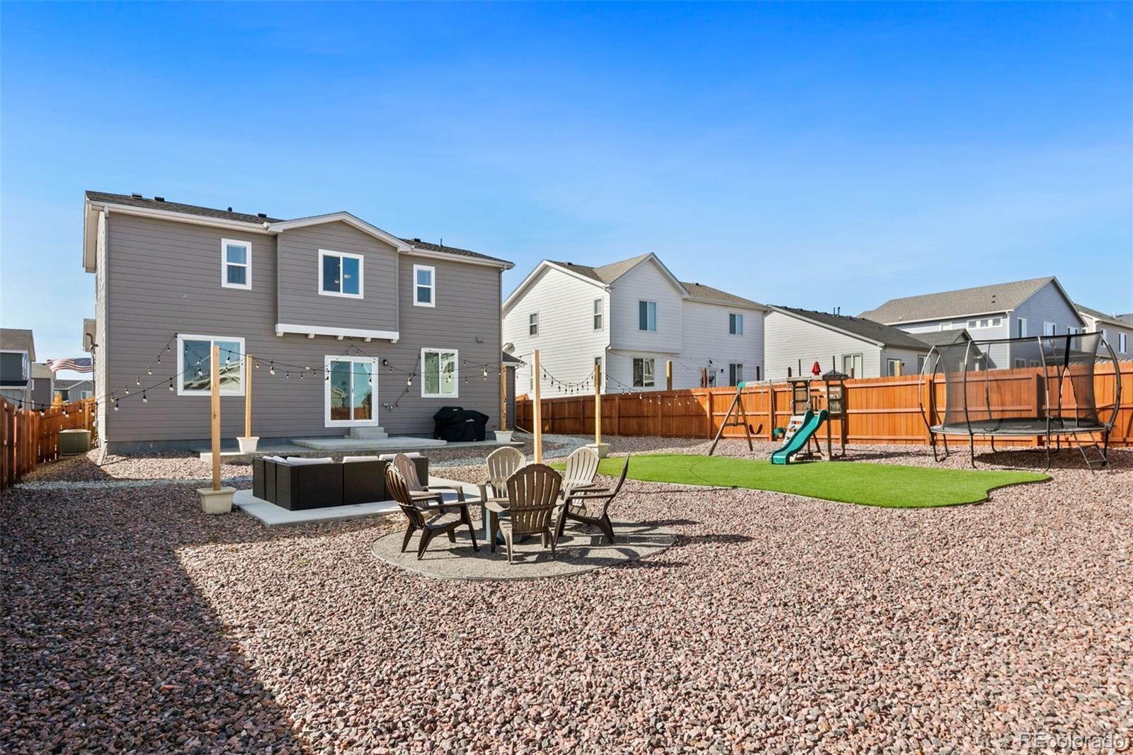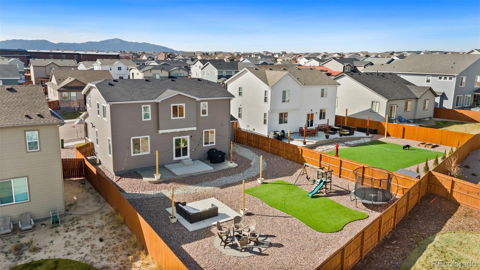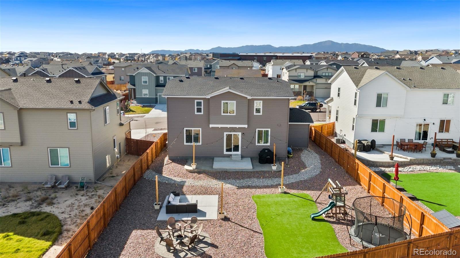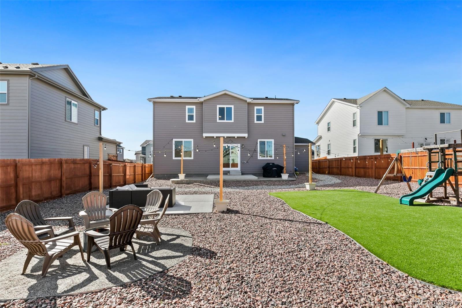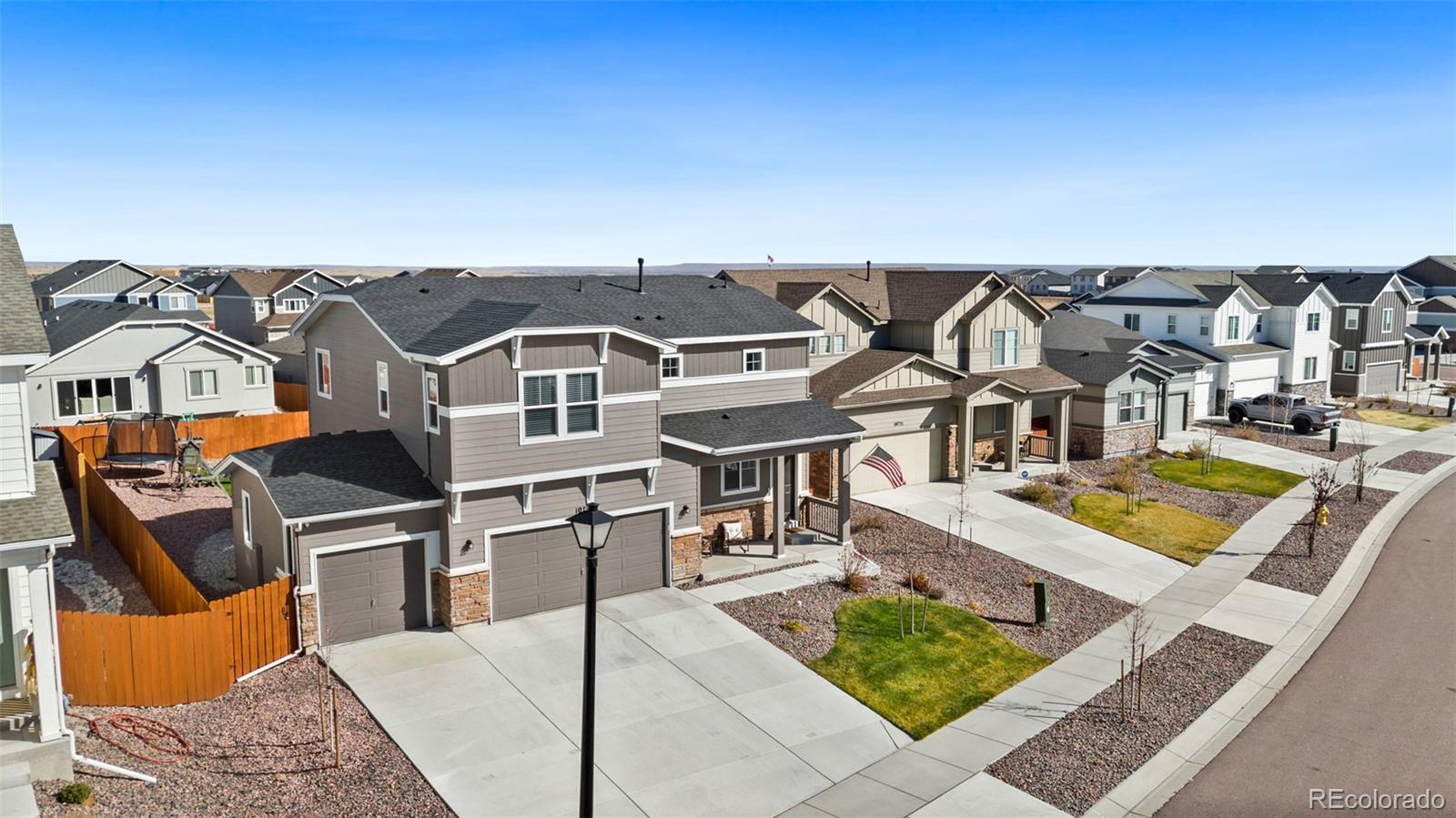 BETTER THAN NEW! FULLY LANDSCAPED-No Waiting to Build! Stunning Frisco Floor Plan in Rolling Hills Ranch at Meridian Ranch with a THREE car garage! Move right in and enjoy this beautiful, open-concept home designed for both relaxation and entertaining. The expansive great room flows seamlessly into the stylish kitchen with tons of white cabinets, quartz countertops, pantry, island and dining area, with direct access to the fenced, low-maintenance xeriscape backyard featuring turf and an extended patio—perfect for indoor-outdoor living and gatherings! Upstairs, retreat to the luxurious primary suite complete with a spacious ensuite bathroom and large walk-in closet! Two additional bedrooms and a versatile loft provide plenty of space for an office, playroom, or media area! Located in the highly sought-after Rolling Hills Ranch community of Meridian Ranch, you’ll enjoy resort-style amenities including an outdoor pool with beach entry, the award-winning Antler Creek Golf Course, and a 42,000 sq. ft. recreation center with an indoor pool and water slide, fitness center, and sports courts for basketball, pickleball, and volleyball. Part of the toprated Falcon School District 49, this home also offers quick access to Highway 24—just 20 minutes from Colorado Springs and close to Pikes Peak, Garden of the Gods, Homestead Ranch Park, and Falcon Regional Park. Nearby shopping, dining, and easy commutes to military bases and I-25 make this location unbeatable! Why wait to build? This move-in-ready home offers comfort, style, and convenience all in one! Schedule your showing today—WELCOME HOME!