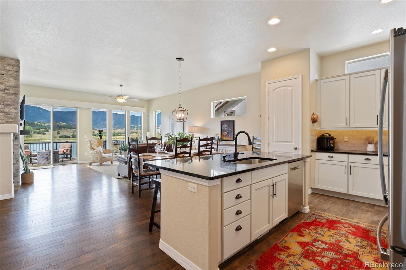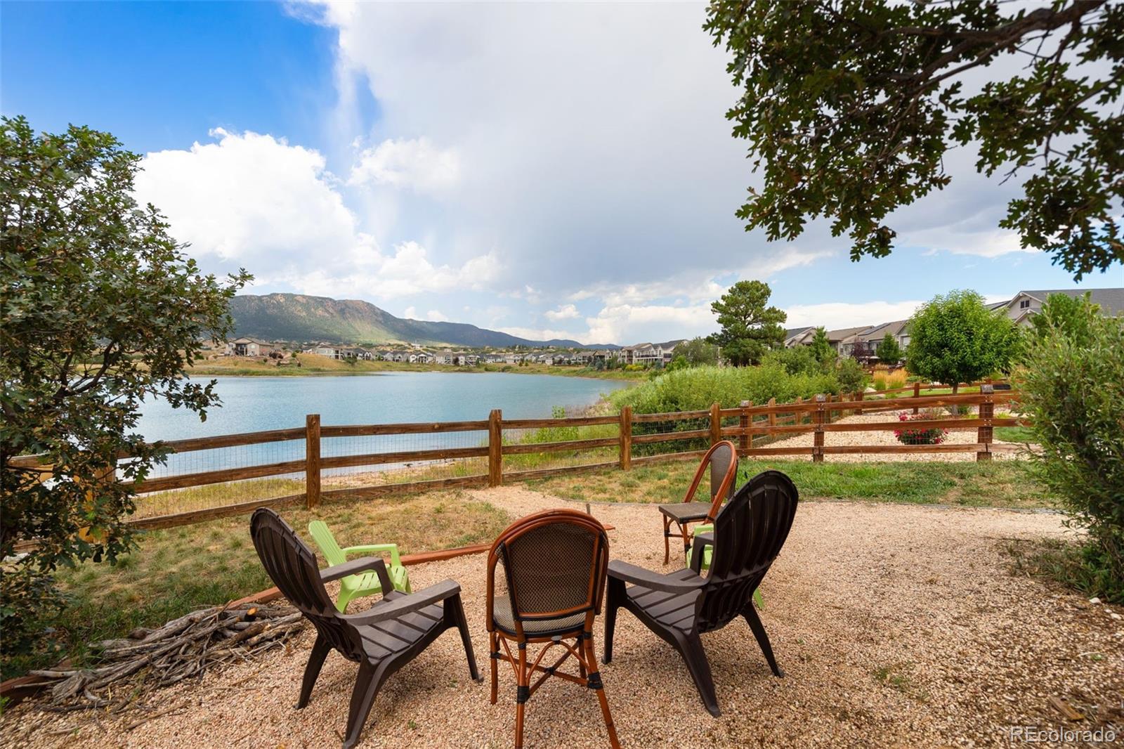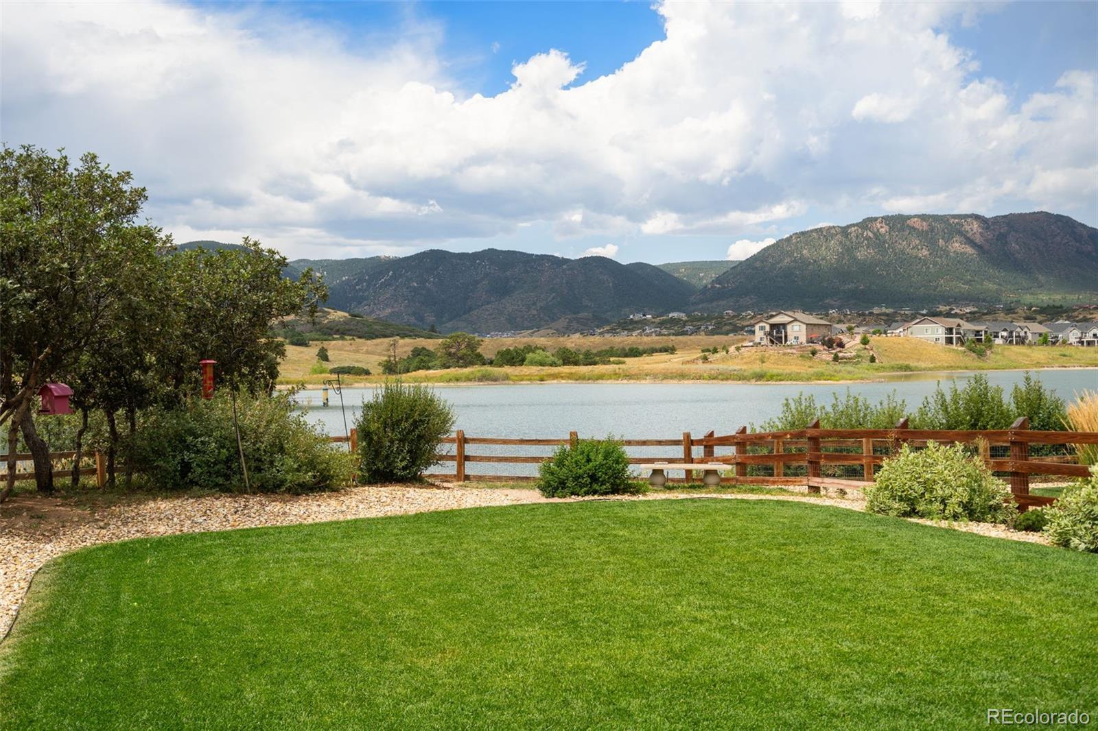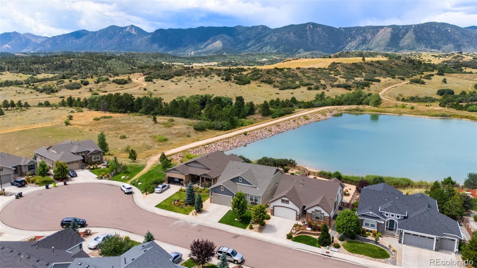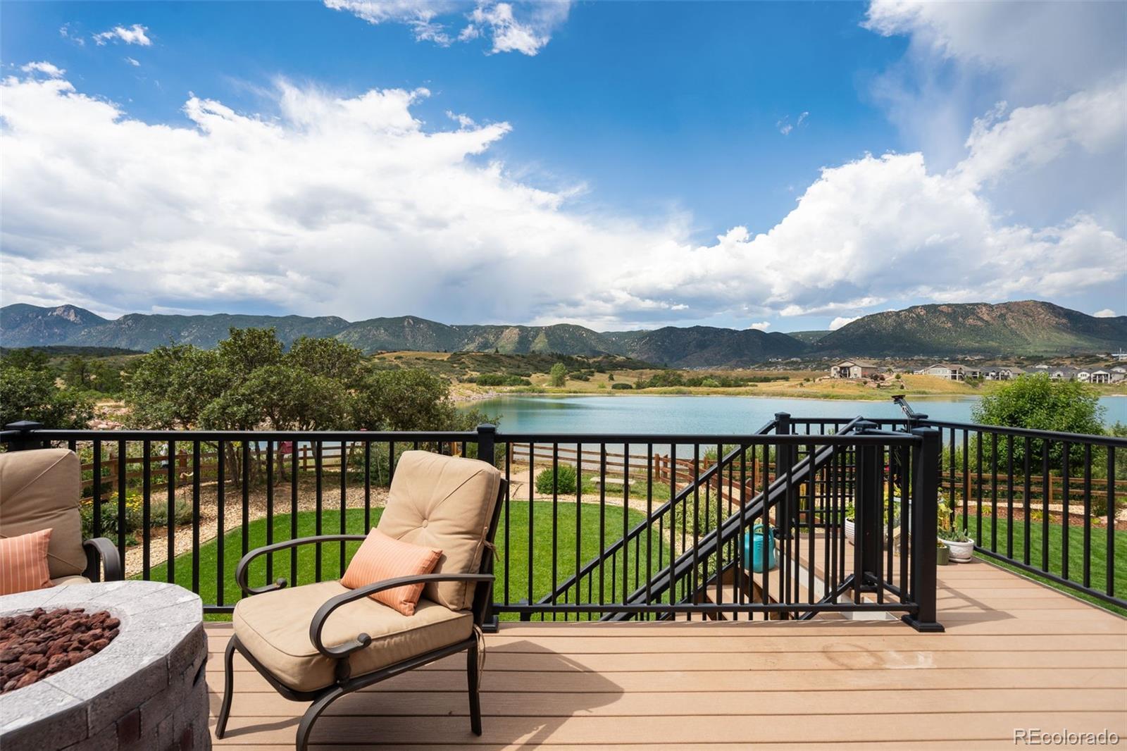 Experience Colorado living at its finest in this beautiful ranch-style home on the shores of Pinon Lake in the sought-after Forest Lakes community. The spacious great room features a dramatic stacked stone fireplace and a wall of windows framing breathtaking lake views. Step out to the maintenance-free deck or enjoy easy access to the backyard and waterfront. The gourmet kitchen shines with granite countertops, stainless steel appliances, a gas stove with hood vent, and a large center island with seating. The primary suite offers more lake and mountain views, a walk-in closet, and a luxurious oversized walk-in shower. A second bedroom/office, full bath, and laundry complete the main level. Downstairs, the finished garden-level basement boasts a large family room, custom wet bar, two additional bedrooms, and a full bath—perfect for entertaining. Beyond Pinon Lake, Forest Lakes also offers Bristlecone Lake, where you can paddle boat, kayak, and enjoy catch-and-release fishing. All this, just minutes from I-25, downtown Monument, and the new Ford Amphitheater in North Colorado Springs.