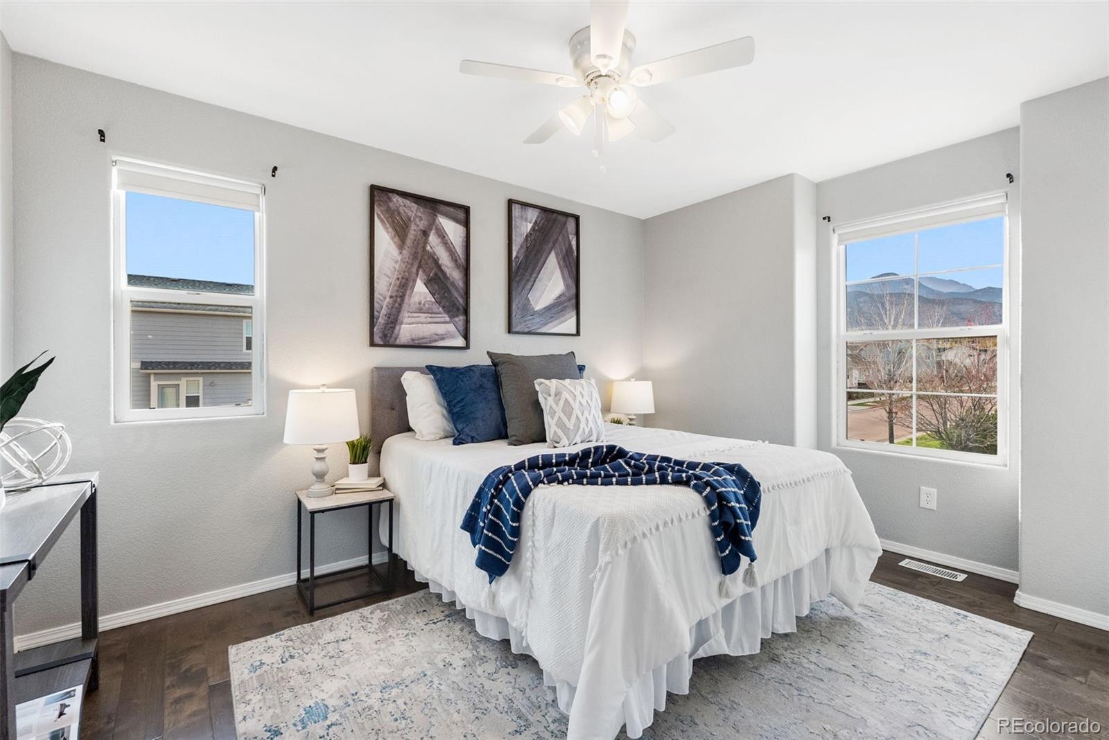 Tucked within the picturesque community of Gold Hill Mesa, this beautifully designed 4 Bed/3.5 Bath home blends timeless character with modern comfort — offering a lifestyle that feels both elevated and effortlessly welcoming. Every space reflects a sense of calm connection, where sunlight pours through tall windows & 9’ ceilings enhance the home’s open, airy flow. Wood floors, custom built-ins, & a cozy fireplace set the tone for gatherings that linger and mornings that start a little slower. The main level moves with intention — perfect for both entertaining & everyday living. The kitchen impresses with granite countertops, expansive cabinetry, & a generous island that naturally draws everyone together. Nearby, the dining room invites special moments shared while the private main-level office offers a quiet place to focus or dream. Upstairs, the primary suite is a serene escape with mountain views, a spa-like bath, dual walk-in closets, & a private walkout balcony ideal for morning coffee or sunsets. Two additional bedrooms (each w/mountain views) share a full bath, while the loft and nearby laundry add convenience. The finished basement expands your living space with a large Rec Area, wet bar, fourth bedroom, full bath, & a whimsical “Harry Potter” closet beneath the stairs. Situated on a corner lot, this home offers a private fenced courtyard off the covered 23’ patio — perfect for relaxing or entertaining. What truly sets this home apart is its connection to Gold Hill Mesa’s spirit — where front porches spark conversation, kids ride bikes to the park, and sunsets over Pikes Peak remind you to slow down and savor the moment. With community events, walking trails, & sweeping views, life here blends small-town warmth with modern Colorado living. A 3-car garage, low-maintenance yard, NEW ROOF, NEW WATER HEATER, and WATER FILTRATION w/Reverse Osmosis System complete this exceptional home — one that offers more than comfort and style; it offers belonging.