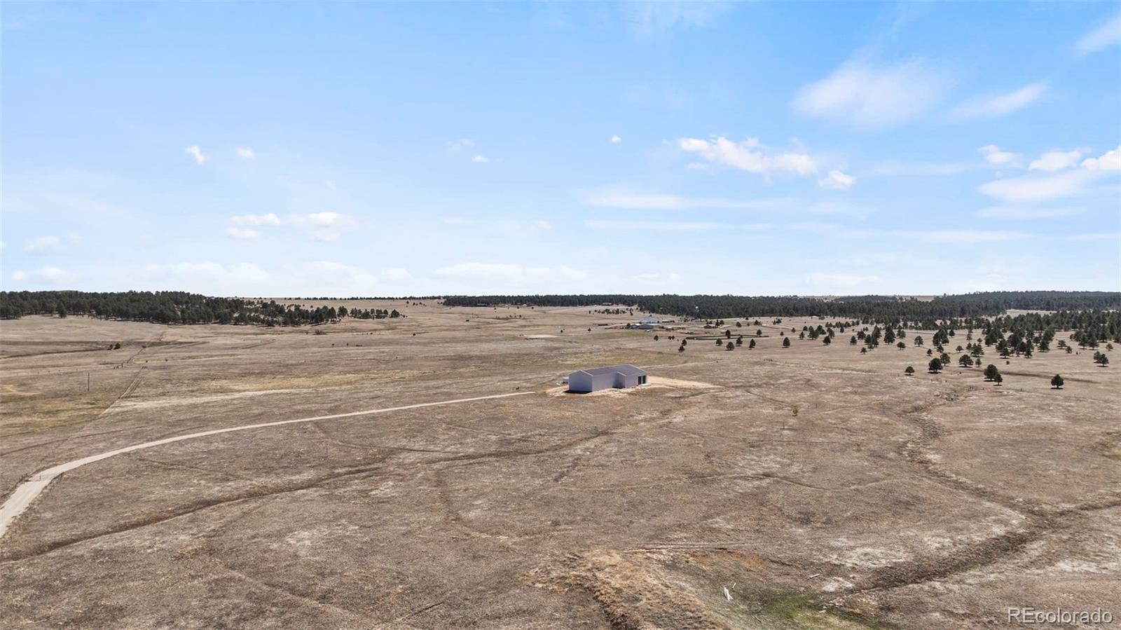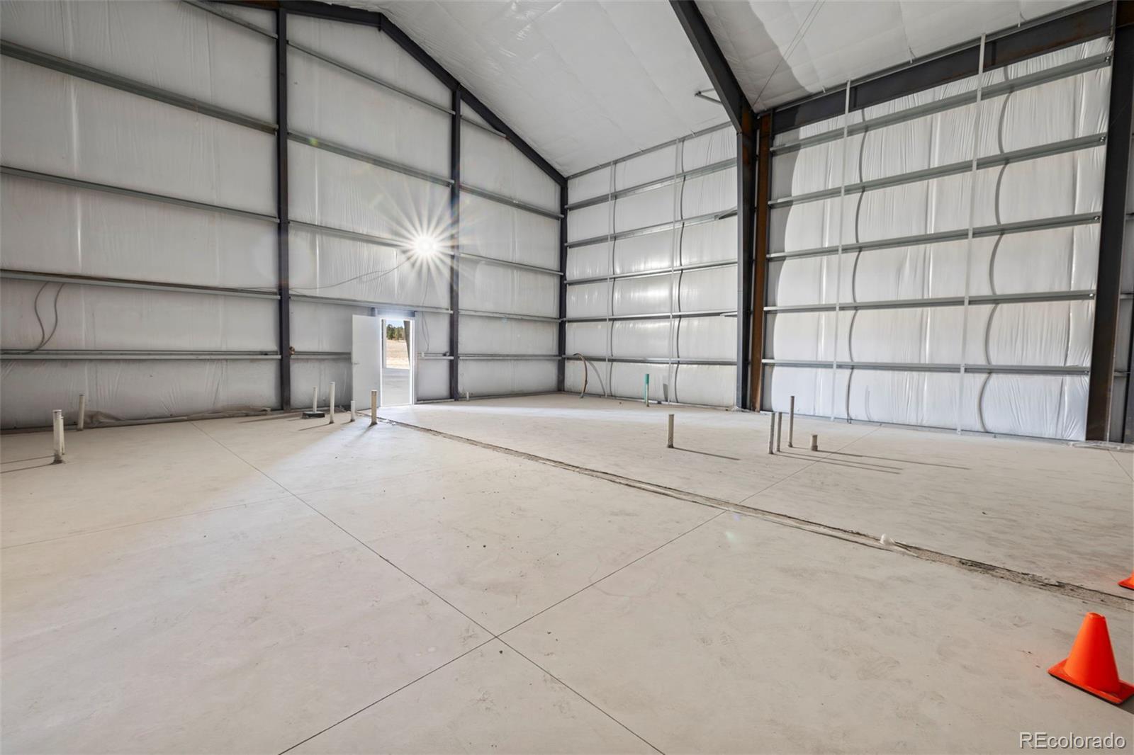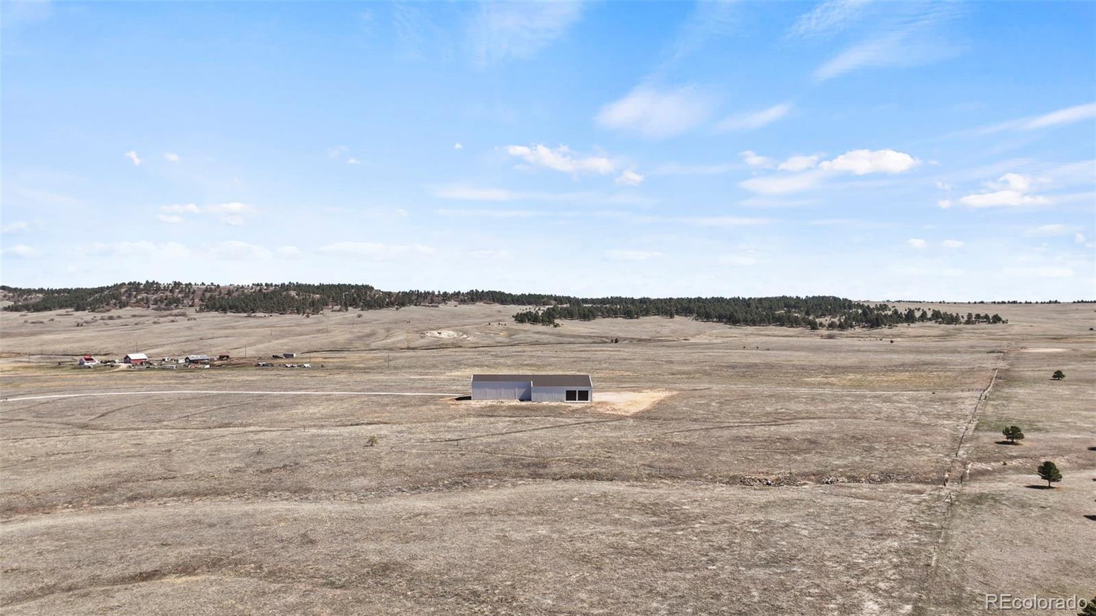 Your dream home begins here—on nearly 38 acres of stunning land in Larkspur, Colorado. This is a rare opportunity to take over a project that’s been thoughtfully planned and is ready for the next step. The seller is including a full set of architectural plans for a beautiful 5,775 SF 5-bedroom, 5 bathroom luxury barndominium designed to capture the essence of Colorado living. The layout features an open-concept great room, a spacious kitchen with ample pantry space, a main-level office, a theater room, and a second-floor balcony with breathtaking mountain views. The primary suite includes luxurious his and hers walk-in closets, and the wrap-around porch is perfect for relaxing and soaking in the natural beauty that surrounds you. The property already includes a fully built-out 5,687 SF attached RV garage with 4 garage doors for drive-through access, an RV drain, and R-49 insulation—perfect for storing your toys, tools, or creating the ultimate workshop. An added plus is School of Choice. With panoramic views and endless potential, this land offers a unique chance to finish your own private retreat in one of Colorado’s most scenic areas. Don’t miss out on this exceptional investment and lifestyle opportunity. Approximately 20 Minutes to Colorado Springs and approximately 30 minutes to Castle Rock for convenient shopping and near schools. Buyer is responsible for completing project to include well and septic. Currently electrical is connected to the building and all rough-in plumbing is already built out included in the foundation and slab.