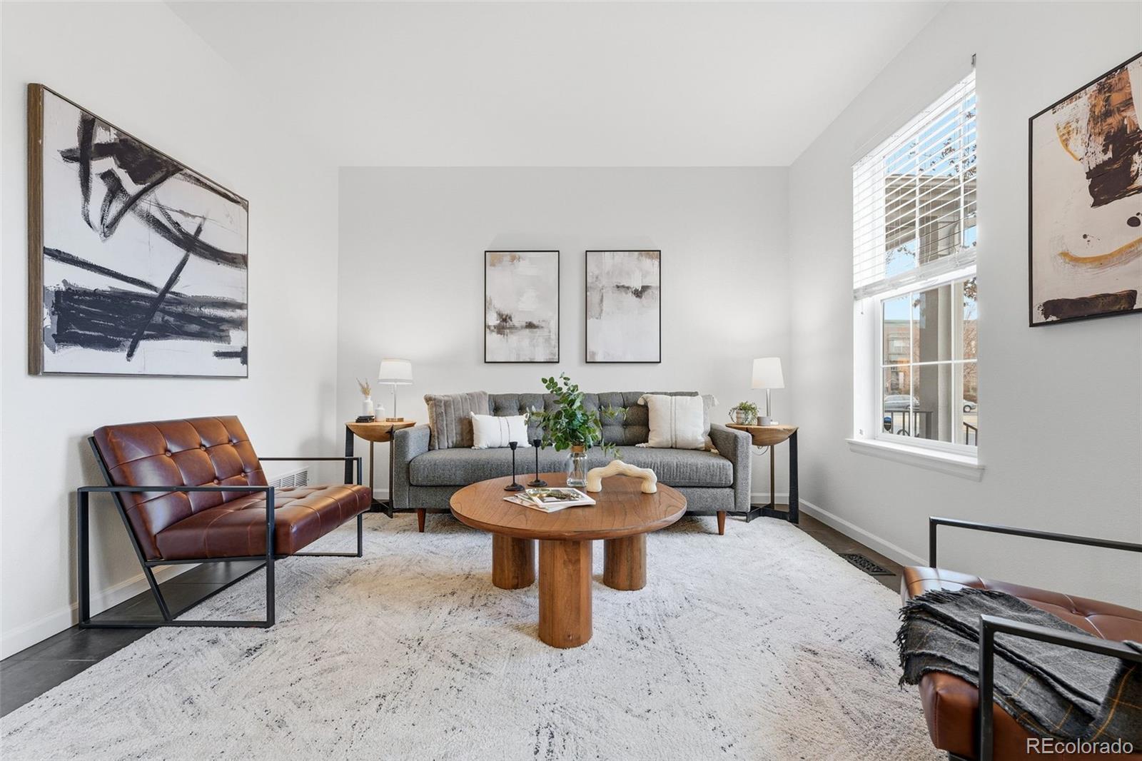 Perfectly positioned on Puddle Jumper Park, this beautifully maintained townhome offers an elevated living experience in the heart of Denver. The residence is bathed in natural light, featuring an open floor plan that creates an inviting setting for both comfortable daily living and seamless entertaining. At the heart of the home, the redesigned kitchen impresses with sleek quartz countertops, abundant cabinetry, and generous storage space for the home chef. The adjoining family room, centered around a classic fireplace, provides a cozy focal point, while the private backyard patio offers a tranquil outdoor escape for warm summer evenings. The upper level is designed for rest and rejuvenation, highlighted by a serene primary suite that serves as a private oasis with its spa-like bath and ample closet space. Adding to the home's exceptional versatility is a newly finished basement, which provides a secluded retreat featuring an additional guest suite with a private bath. Modern convenience is integrated throughout, including a spacious two-car garage equipped with an EV charger. Major home systems have been meticulously cared for and thoughtfully upgraded, offering the next owner lasting peace of mind. Located within the vibrant Central Park community, this home puts you at the center of a dynamic lifestyle. Residents enjoy access to numerous neighborhood pools and expansive open spaces, while being just moments away from the eclectic shopping and dining destinations at Stanley Marketplace and the 29th Avenue Town Center. This is a rare opportunity to own a move-in-ready gem in one of the city's most desirable locations, blending sophisticated interior design with an unbeatable connection to local amenities and recreation.