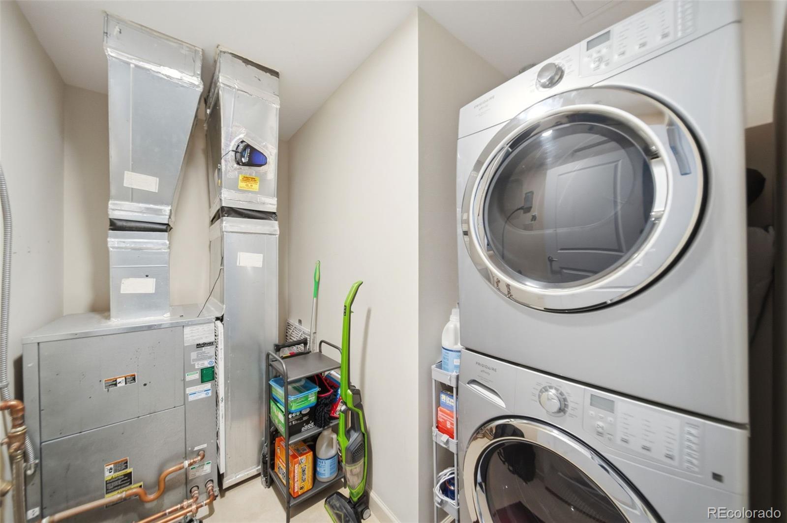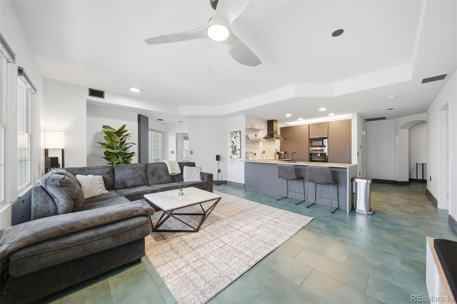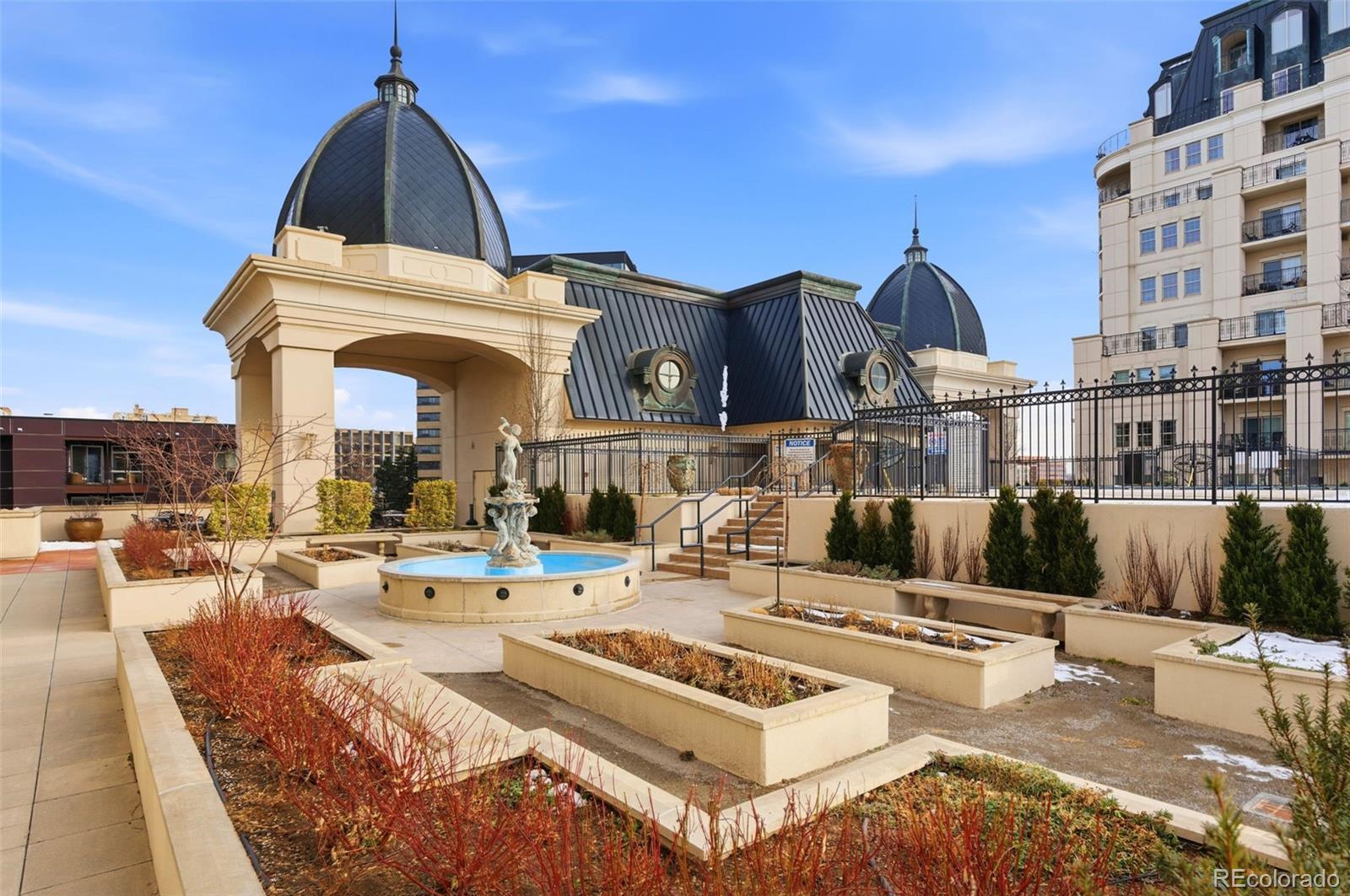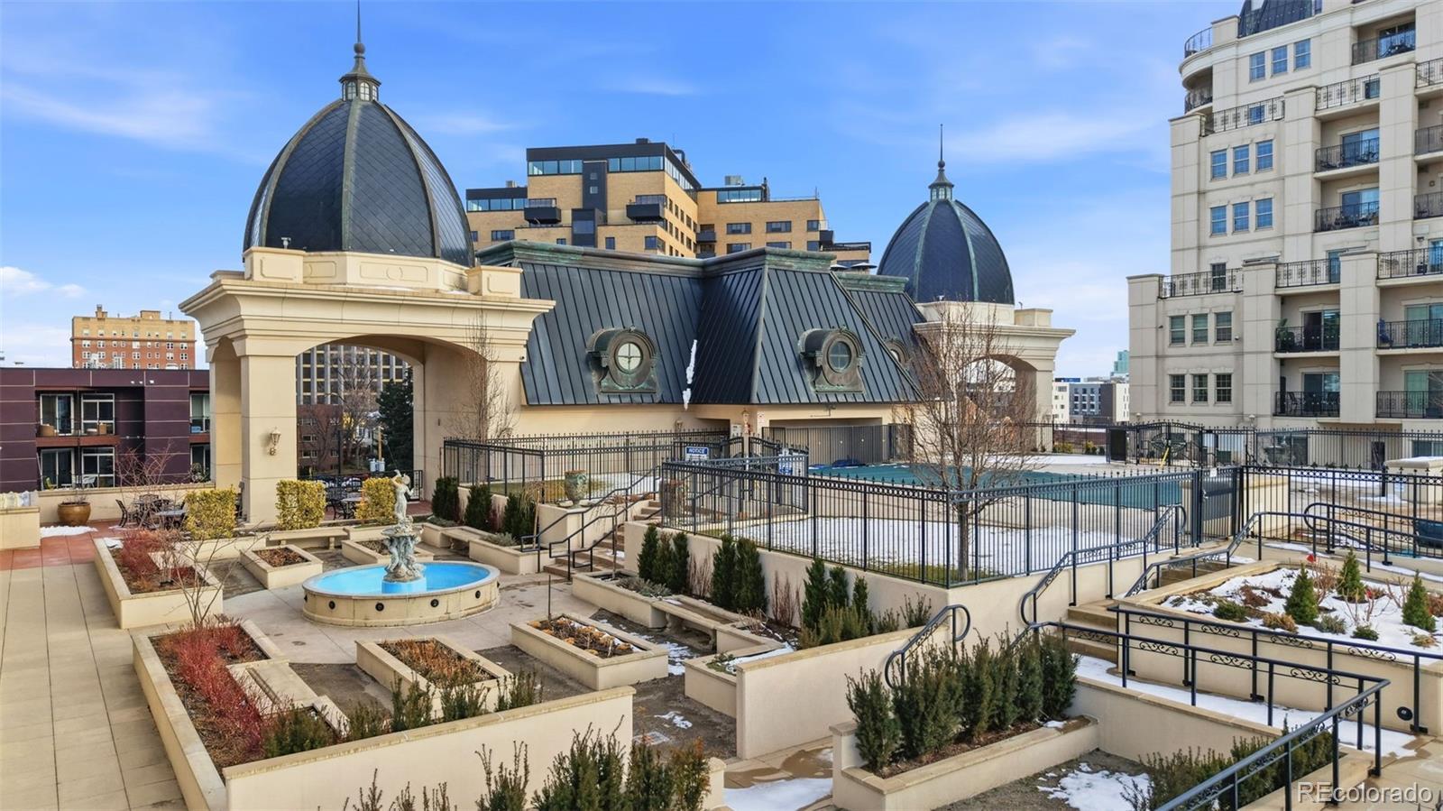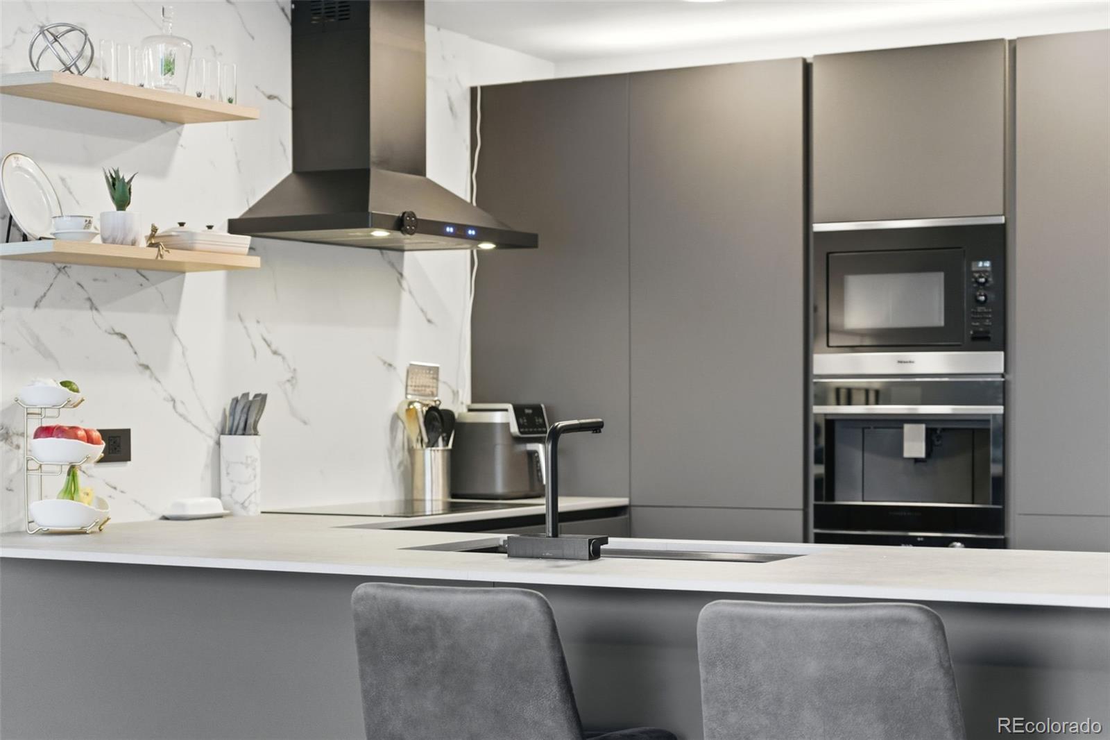 Perfectly positioned between Denver’s Golden Triangle and Capitol Hill, this beautifully updated 2-bedroom, 2-bath luxury condo at The Beauvallon offers upscale high-rise living with exceptional urban convenience. Walls of windows showcase stunning Denver skyline and mountain views and desirable northeast exposure. The open-concept floor plan features 10ft high ceilings, elegant tile flooring and a fully remodeled gourmet kitchen with soft-close cherry cabinetry, slab granite countertops and backsplash, pull-out Lazy Suzans, Fisher & Paykel stainless steel appliances and induction cooktop, Miele microwave, and don't miss the built-in Fisher & Paykel espresso maker! The living and dining areas open to a northeast-facing balcony off the kitchen and living room, ideal for morning coffee, entertaining, and city views. Over $125,000 in upgrades completed in 2022 include updated lighting, switches, outlets, and thoughtful modern finishes throughout. The primary suite is a private retreat with a covered balcony, professionally organized walk-in closet, and updated en-suite bathroom with walk-in shower. The second bedroom offers east-facing views, two closets, floating shelves, and a built-in Murphy bed, perfect for guests or a home office. Additional features include a smart thermostat, newer heat-pump HVAC system, and Frigidaire washer and dryer. One reserved garage parking space and secure storage unit are included. The Beauvallon is a full-service, secure building offering 24/7 security, concierge services, professional on-site management, rooftop pool and hot tub with panoramic city and mountain views, European-style gardens with fountains, BBQ and fire pit areas, bike storage, EV charging stations, and a pet-friendly environment. Walk to restaurants, museums, parks, and the Golden Triangle Creative District. Buyer to verify all information. Furnishings are negotiable.