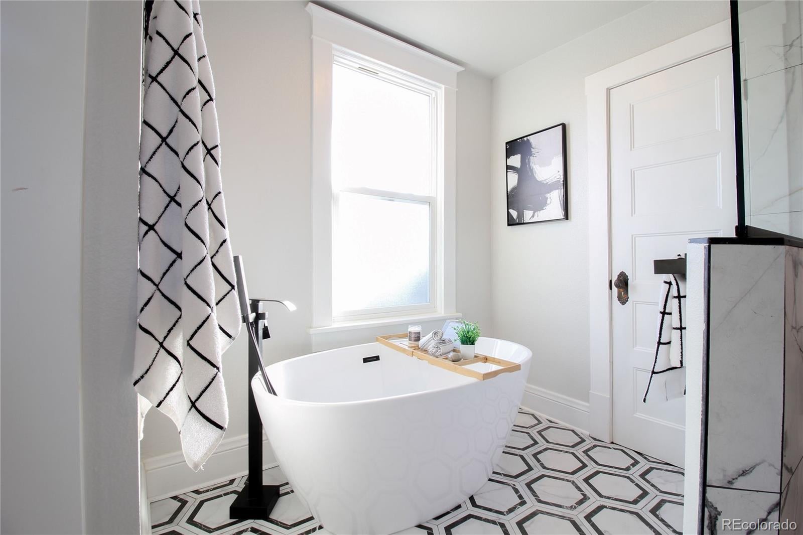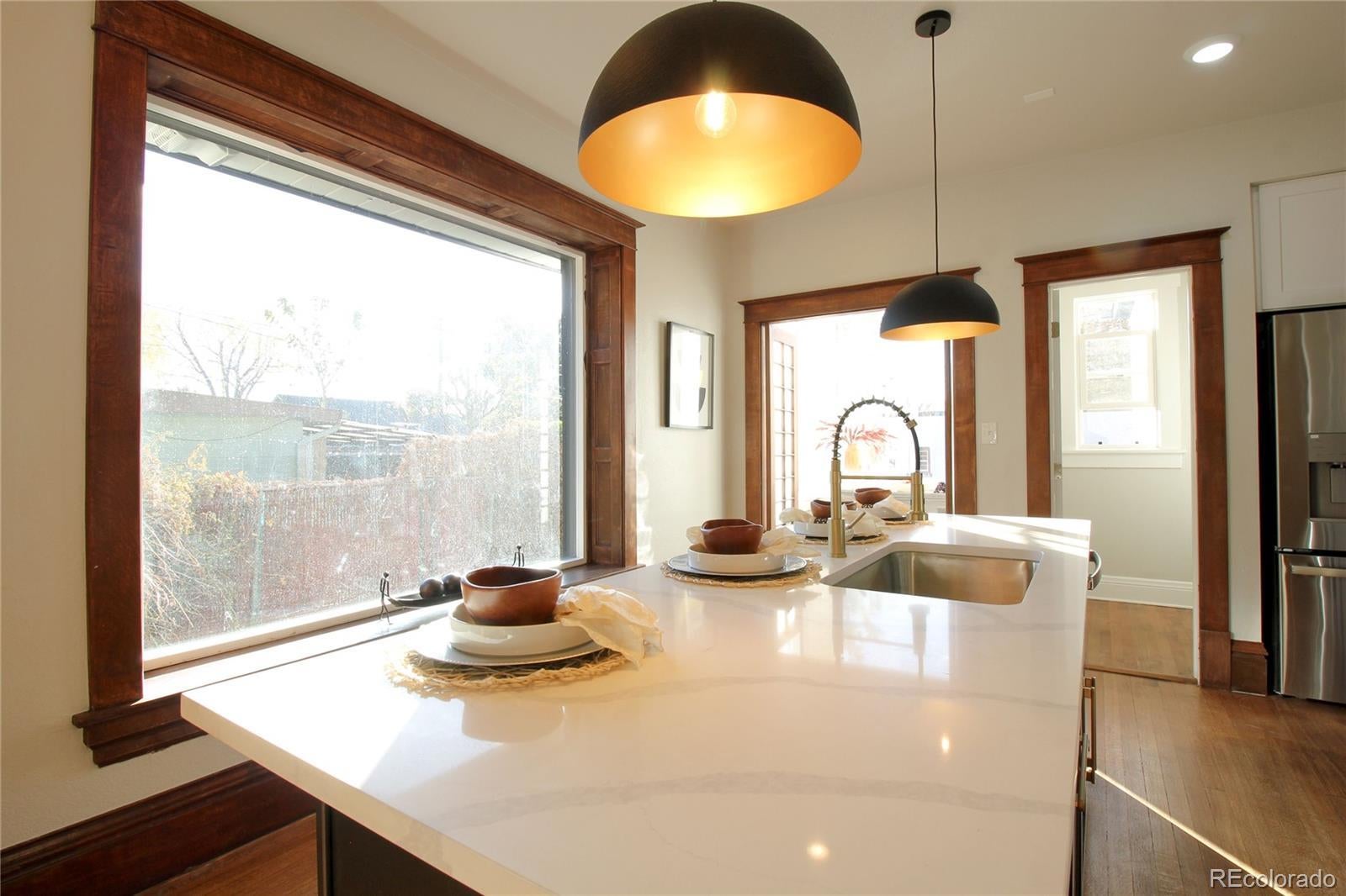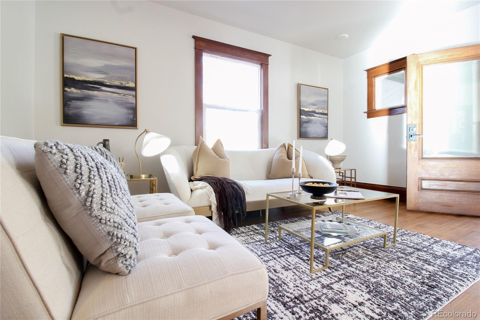 Nestled in one of Denver’s great neighborhoods, this fully remodeled, fully permitted 4-bedroom, 3.5-bath modern home with main floor office offers the perfect blend of timeless charm and contemporary design—Located on a quiet street just blocks from parks, RiNo’s best dining, breweries, and boutiques, this home offers the perfect mix of city living and neighborhood charm. Step inside to a light-filled, open floor plan featuring newly finished original hardwood floors, a spacious living room with high ceilings, a classic woodburning fireplace, and original architectural details that showcase the home’s character. The kitchen combines style and function with large window, modern appliances, and a sunlit eat-in dining area. The second floor hosts a serene primary suite with an elegant en-suite 5 piece bathroom with 3 closets, plus a second bedroom and full guest bath. Downstairs, the finished basement offers exceptional flexibility: a large multi-purpose room perfect for a media space, gym, or playroom; two additional conforming bedrooms; a third full bath; and a cozy secondary lounge area with fireplace. Additional highlights include New custom windows, New roof, HVAC systems, plumbing, electrical, and new sewer, beautifully maintained landscaping, paver patio and Detached 3-car garage.