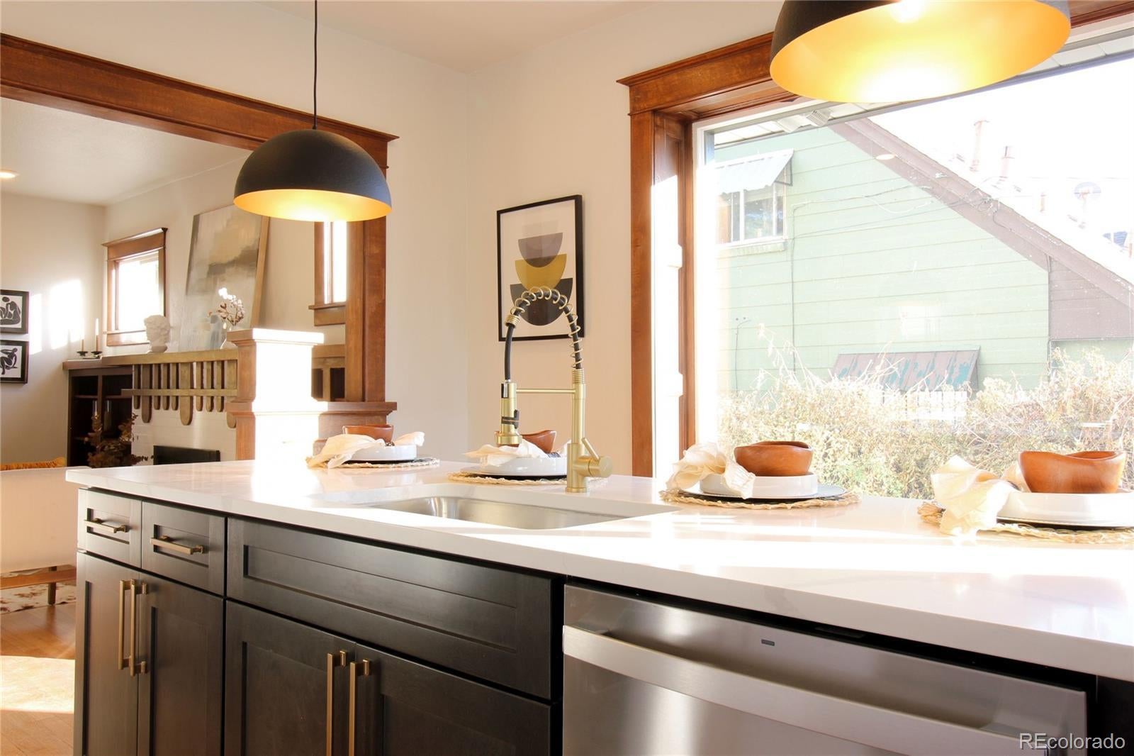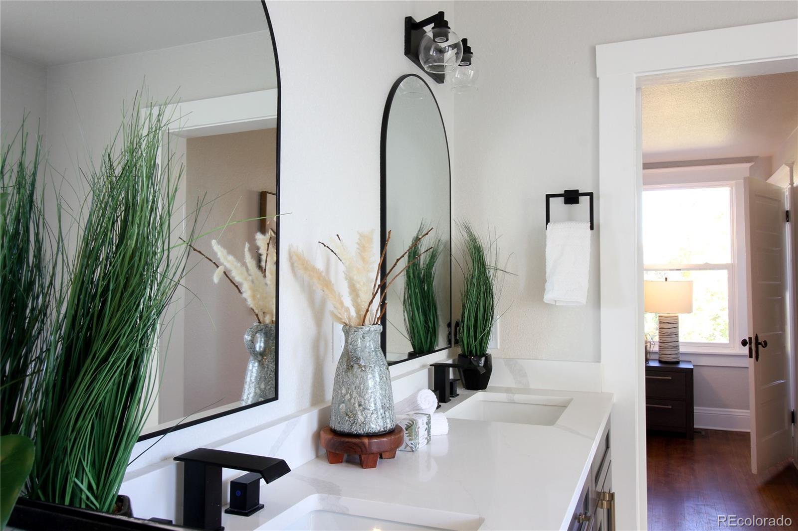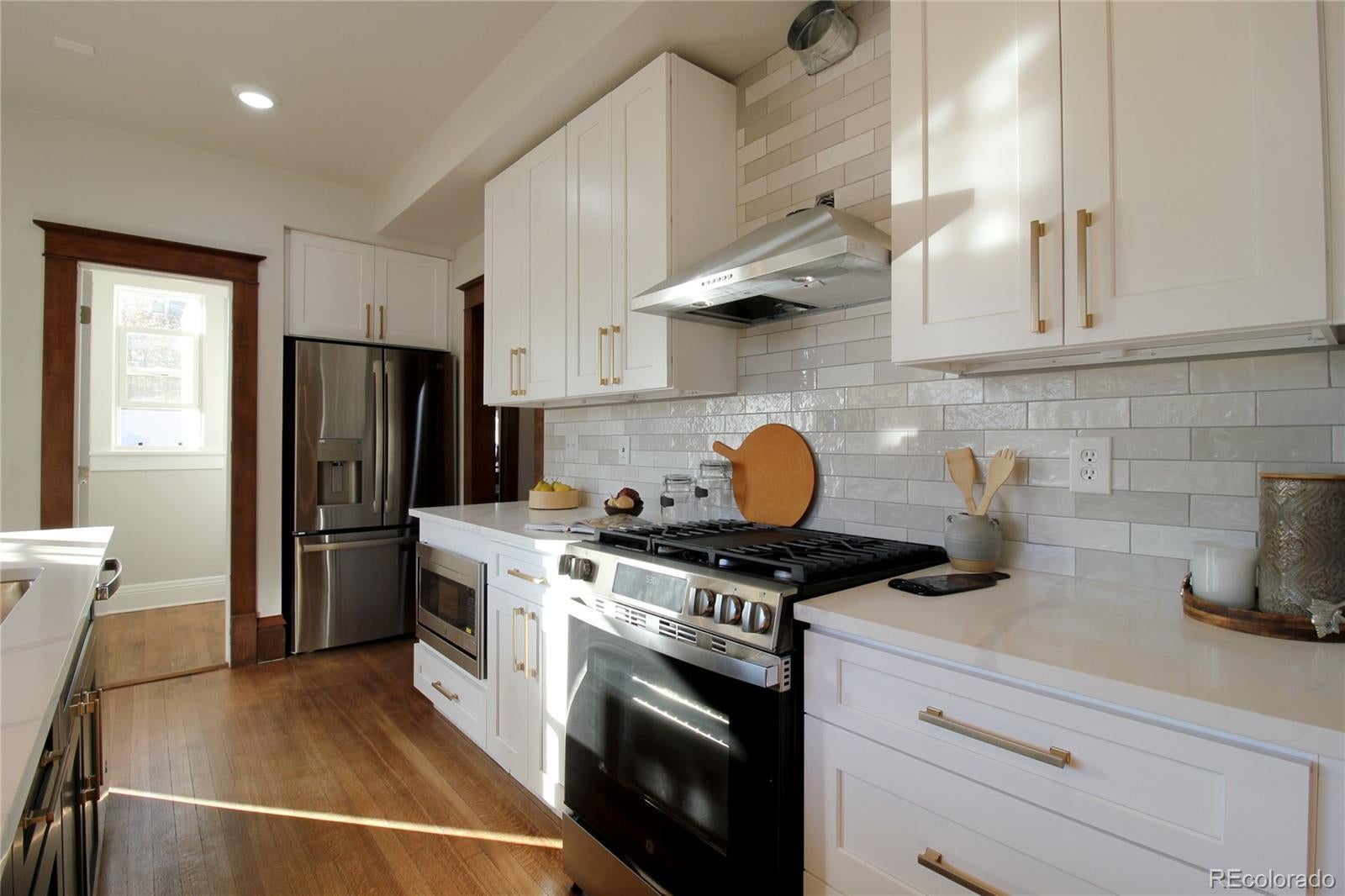 Nestled in one of Denver’s great neighborhoods, this fully remodeled, fully permitted 4-bedroom, 3.5-bath modern home with main floor office offers the perfect blend of timeless charm and contemporary design—Located on a quiet street just blocks from parks, RiNo’s best dining, breweries, and boutiques, this home offers the perfect mix of city living and neighborhood charm. Step inside to a light-filled, open floor plan featuring newly finished original hardwood floors, a spacious living room with high ceilings, a classic woodburning fireplace, and original architectural details that showcase the home’s character. The kitchen combines style and function with large window, modern appliances, and a sunlit eat-in dining area. The second floor hosts a serene primary suite with an elegant en-suite 5 piece bathroom with 3 closets, plus a second bedroom and full guest bath. Downstairs, the finished basement offers exceptional flexibility: a large multi-purpose room perfect for a media space, gym, or playroom; two additional conforming bedrooms; a third full bath; and a cozy secondary lounge area with fireplace. Additional highlights include New custom windows, New roof, HVAC systems, plumbing, electrical, and new sewer, beautifully maintained landscaping, paver patio and Detached 3-car garage.
