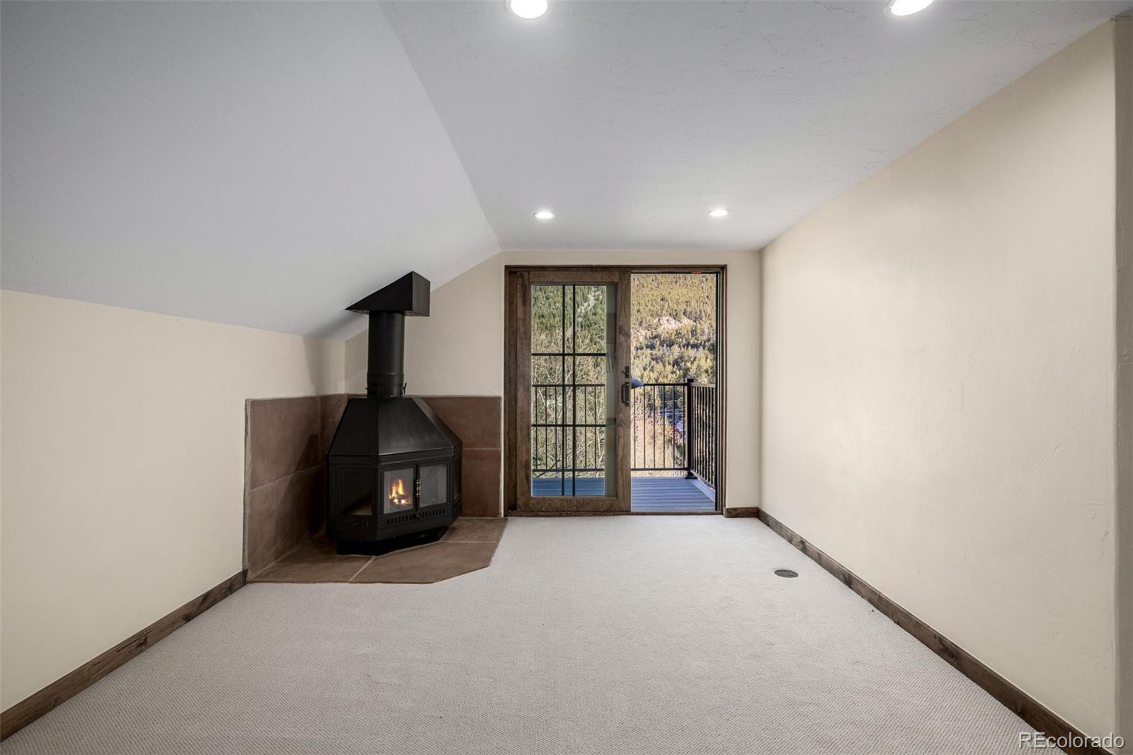 Check out this incredible 6 bedroom, 5 bathroom home now available in Georgetown. Situated on an oversized lot surrounded by mature pine trees and offering beautiful mountain views, this property captures the essence of Colorado mountain living. Inside, a spacious foyer and mudroom flows into a large game room featuring flagstone flooring, recessed lighting, a neutral color palette, and a wet bar, creating a perfect space for entertaining or relaxing after a day outdoors. Upstairs, a bright semi open concept living area is filled with natural light and highlighted by elegant wood look flooring and a striking two way fireplace that adds warmth and character. The gourmet kitchen features painted cabinetry, quartz countertops and backsplash, a pantry, stainless steel appliances, pendant lighting, and a large center island with a breakfast bar ideal for casual dining or gathering with guests. The spacious primary suite offers plush carpeting, a second fireplace, direct access to a private deck, and a luxurious bathroom with dual sinks and a walk in closet. Additional spaces include a charming loft with a wood burning stove and a quaint den that is perfect for a home office or reading nook. This home offers space, comfort, and stunning mountain surroundings all in one exceptional Georgetown property.