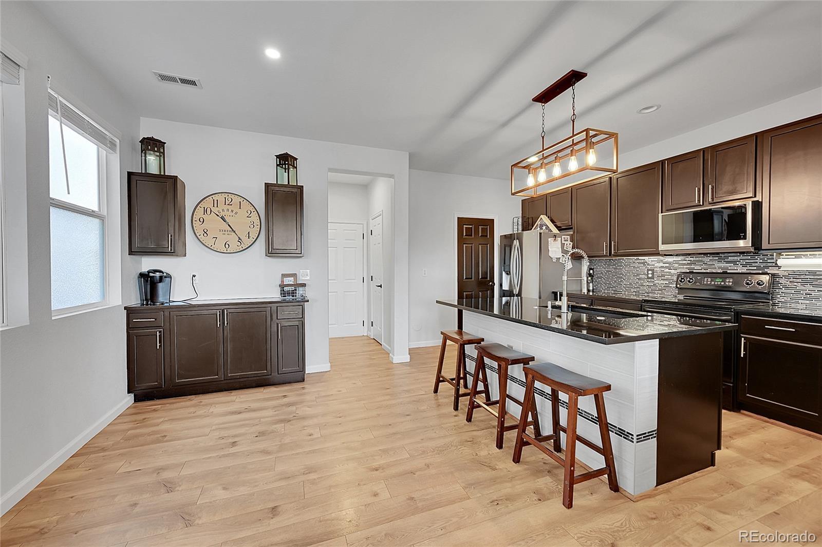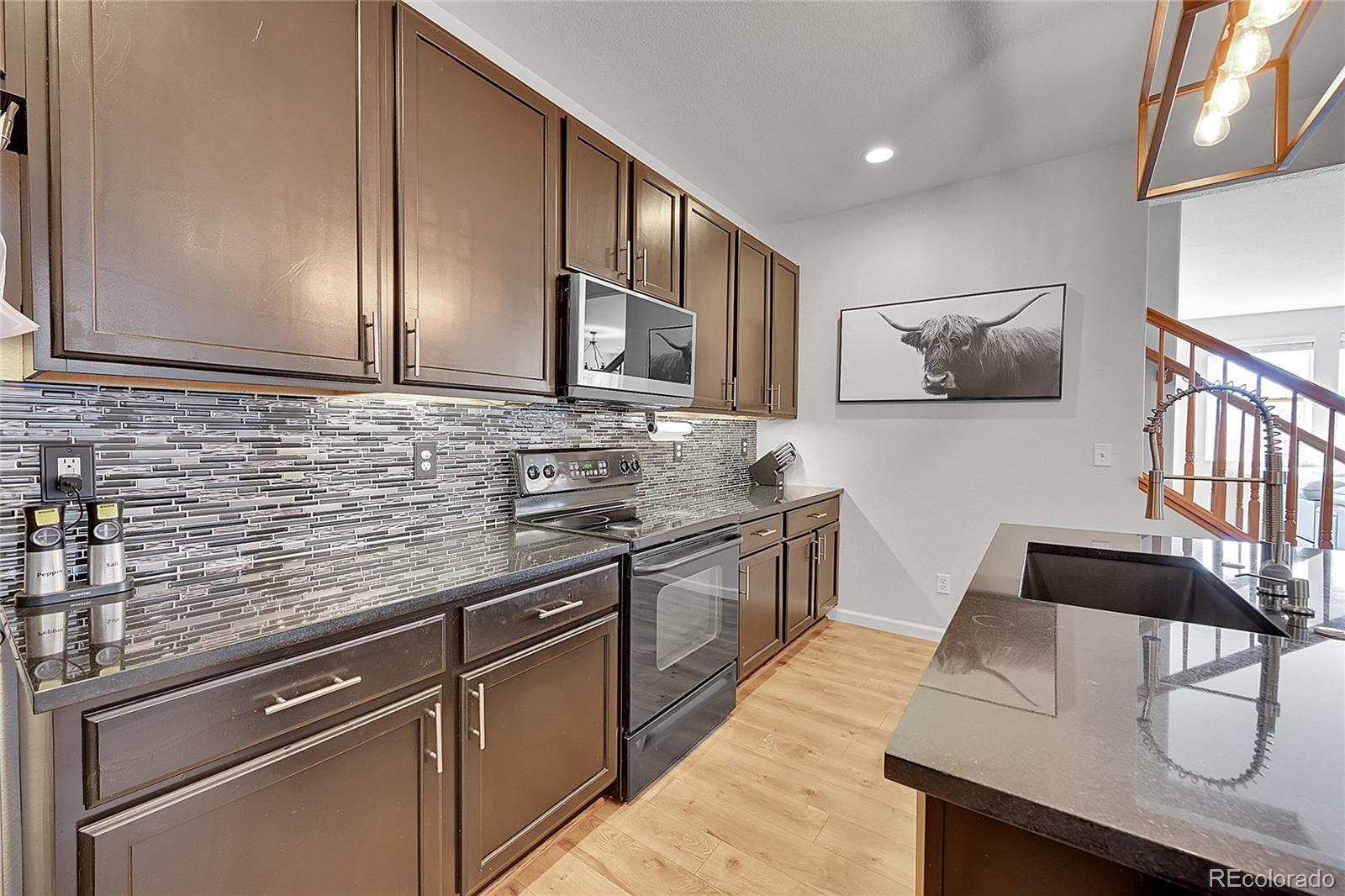 LOCATION! LOCATION! LOCATION! Out of the many buildings in this complex, only a very few back to the Cherry Creek Trail and this is one of them! Gorgeous views and lots of privacy! This unit has had beautiful updating and remodeling done to it! Enter the main floor to see Newer vinyl plank flooring throughout the main level! 9 foot ceilings and lots of windows! The great and dining rooms are open to one another and to the kitchen and breakfast area for wonderful flow when entertaining! A sliding door leads out to your own patio! The kitchen has been remodeled! A new coffee bar, with its own dedicated space, an island with seating on it, topped in gorgeous granite! A large undermount sink and newer professional faucet grace the top of the island! There is a large walk in pantry for tons of storage! A small hallway leads to the updated powder room and the attached garage! Upstairs is a large primary bedroom w: large windows that highlight the views of the open space and trails! The ensuite primary bathroom has been redone with granite countertops, new faucets, new tiled walk in shower with euro style glass door! A walk in closet is currently used as an office! There are two secondary bedrooms on the upper level. The smaller one would make a great office or kid's room and the second is large with a walk in closet! The hall bath has beautiful tile work and granite countertop with newer faucet. Double doors open to reveal the laundry area. The location is everything. Walk out to the trail to hike, bike or stroll. The community has a large playground and community BBQ grills! You can walk less than a mile and be at restaurants, grocery stores and shopping! Minutes to E-470 for fast commutes, Trader Joes, Advent Health Parker. Close to the light rail and to DTC! 30 minutes to DIA. Downtown Parker is close by and has a weekly, seasonal farmers market and lots of activities to enjoy! Don't miss this one!!!!! Hurry!!