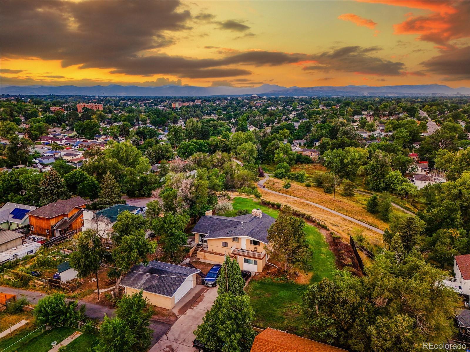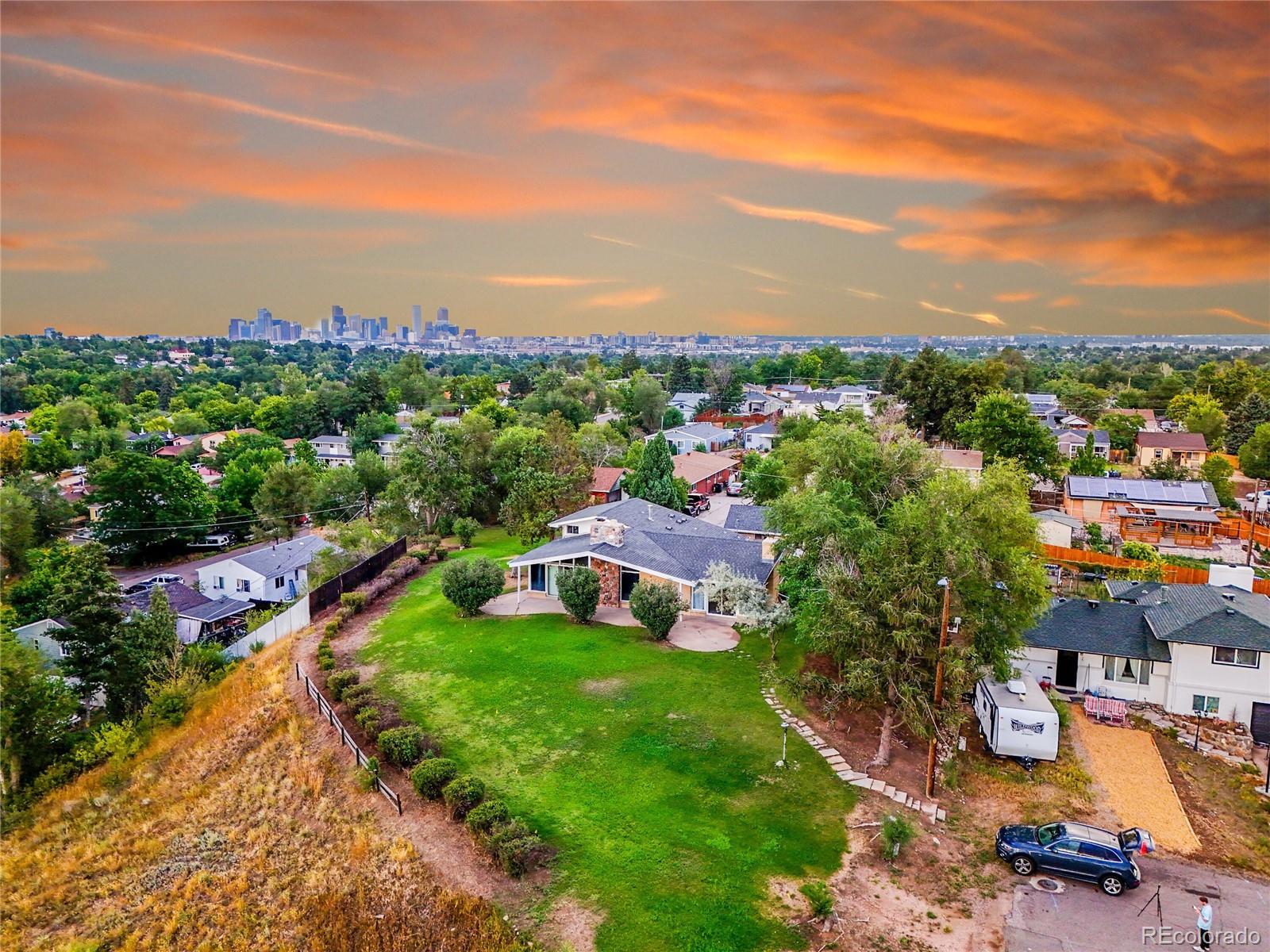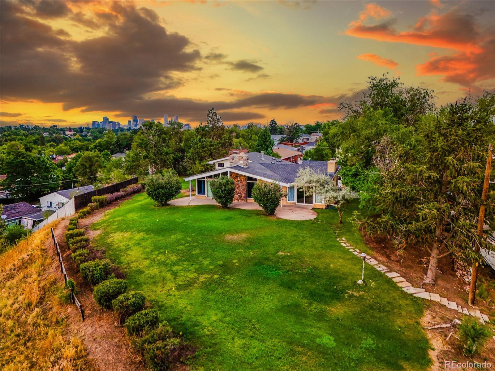 The pool has been virtually added. Breathtaking front range mountain views you simply can’t buy set the stage for this rare ½-acre Denver property. Just the second owner, this home offers both timeless character and modern potential. Inside, you’ll find a Colorado rock fireplace anchoring the great room and a second fireplace warming the family room. The home’s open floor plan and abundant windows bring natural light inside and frame the surrounding beauty. The primary suite is tucked away for privacy, complete with an ensuite bath and its own private balcony—perfect for morning coffee. Recessed lighting adds a modern touch throughout. The property features sprinkler systems, newer sewer line, newer water line, oversized two-car garage - tons of parking and easily room for an RV, zoning is (E-SU-DX) that allows for a future ADU and tons of potential. Backing directly to the Weir Gulch trail and minutes from 6th Avenue, this location makes downtown and the Rockies equally accessible in a car, on a bike or walking. This is a front-row seat to Colorado’s best views with access to the best of both the city and the mountains, with space and zoning to make it truly your own.