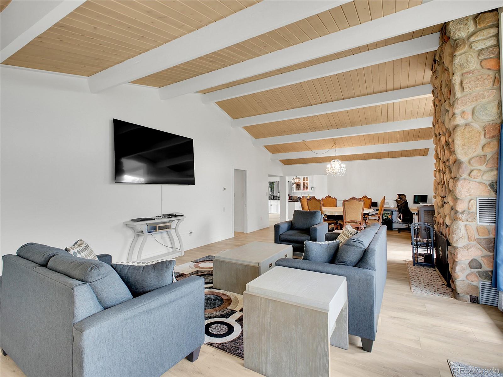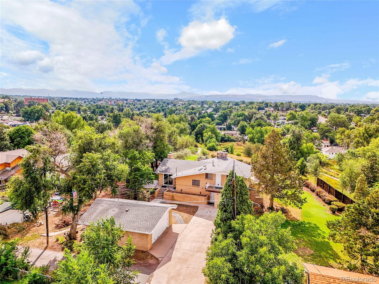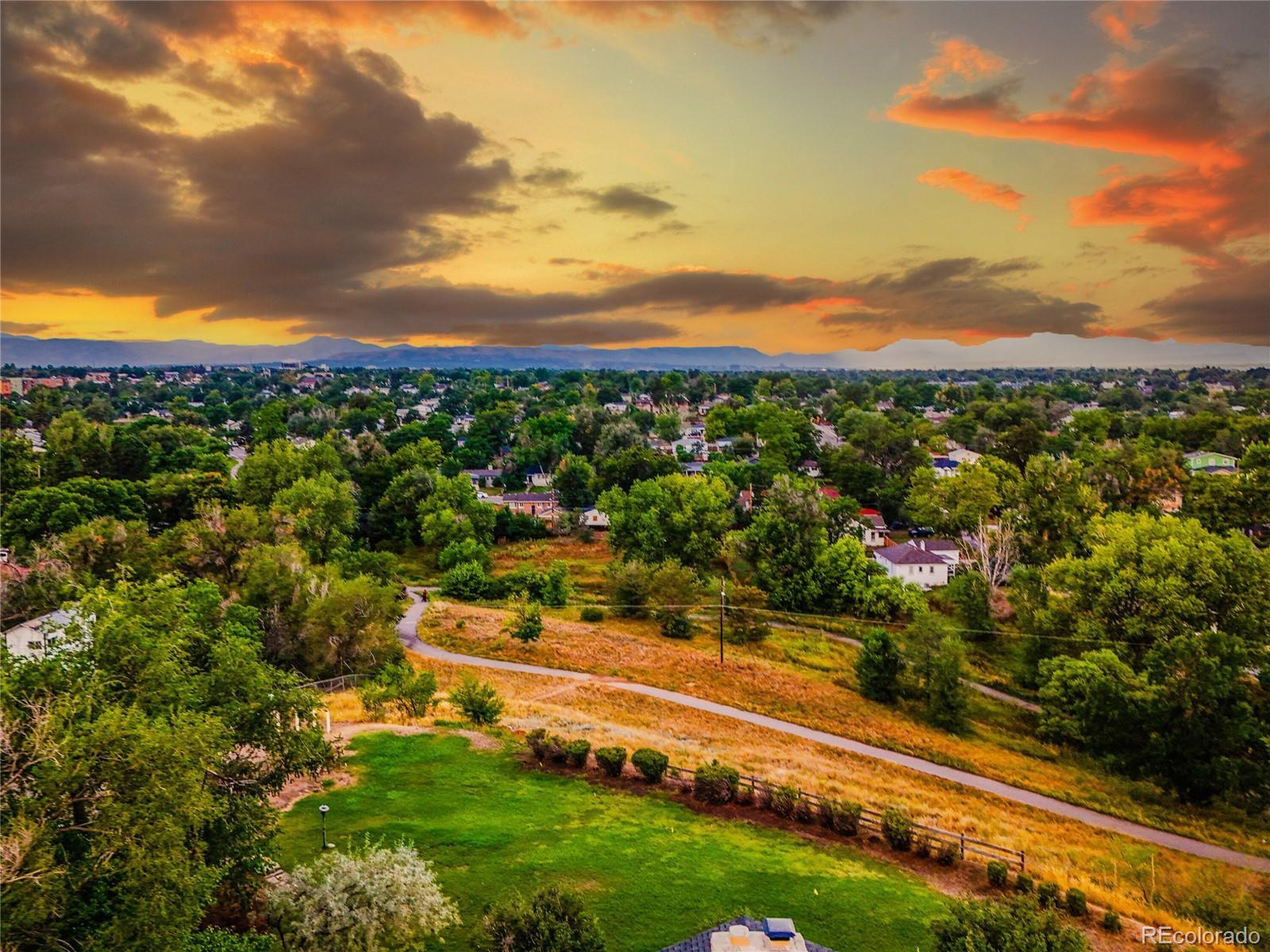 The pool has been virtually added. Breathtaking front range mountain views you simply can’t buy set the stage for this rare ½-acre Denver property. Just the second owner, this home offers both timeless character and modern potential. Inside, you’ll find a Colorado rock fireplace anchoring the great room and a second fireplace warming the family room. The home’s open floor plan and abundant windows bring natural light inside and frame the surrounding beauty. The primary suite is tucked away for privacy, complete with an ensuite bath and its own private balcony—perfect for morning coffee. Recessed lighting adds a modern touch throughout. The property features sprinkler systems, newer sewer line, newer water line, oversized two-car garage - tons of parking and easily room for an RV, zoning is (E-SU-DX) that allows for a future ADU and tons of potential. Backing directly to the Weir Gulch trail and minutes from 6th Avenue, this location makes downtown and the Rockies equally accessible in a car, on a bike or walking. This is a front-row seat to Colorado’s best views with access to the best of both the city and the mountains, with space and zoning to make it truly your own.