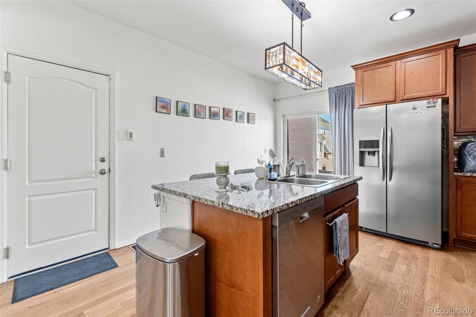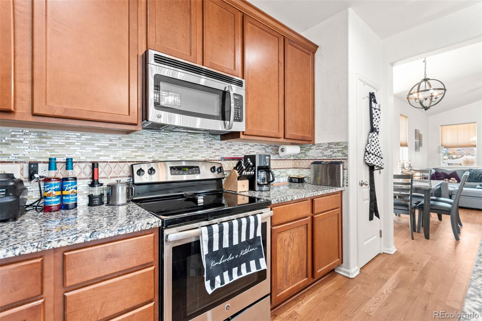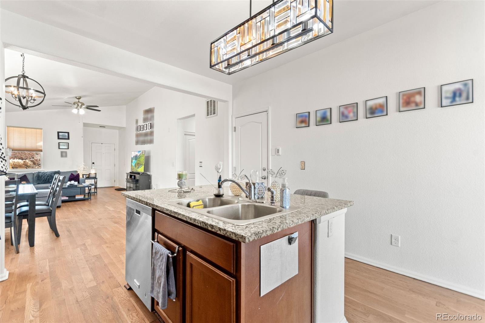 Open House ~ Saturday, December 6th ~ 11:00 am - 2:00 pm! This charming 3 bedroom, 2 bathroom home is perfectly situated in the highly desirable Meadows neighborhood that is ready for you to call home! This quaint home features an open floor concept with solid wood floors and lots of windows to let in the beautiful natural light. The large family room features 12 foot vaulted ceilings, solid wood floors and lots of window. The bright and airy kitchen showcases stainless steel appliances, slab granite countertops with access to the dining room and spacious backyard. Relax your day away in the spacious master suite with a large walk-in closet and a private bathroom. Relax on the covered front porch with plenty of space for a bistro table and chairs to enjoy the beautiful Colorado evenings. You are sure to enjoy the fenced backyard that is perfect for your kids to play or to host a fun bar-b-que with your friends and family. Enjoy the tranquil ambiance while being minutes away from an abundance of amenities including shopping, restaurants and excellent schools just minutes away. The Meadows neighborhood is popular for its wealth of amenities including parks, trails, community pools, and recreational facilities. There's always something to do for every member of the family. Don't miss the opportunity to make this home your new beginning!