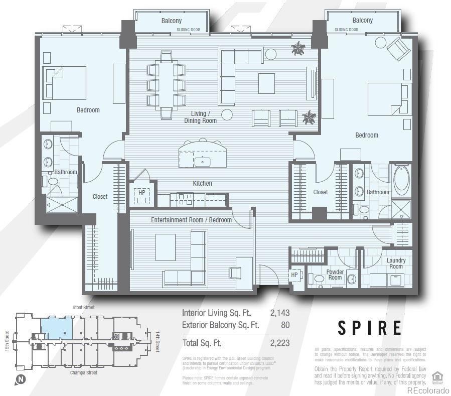NEW FURNISHED RENTAL! PARKING INCLUDED! DUAL PRIMARY SUITES! Boasting nearly 2,200 sq. ft. of living space, this rare gem stands out as one of downtown Denver's most spacious offerings! As you enter the wide-open floor plan, you'll be greeted by panoramic views of downtown Denver's iconic skyline and the Rocky Mountains. Two balconies, perched 35 stories high, are the perfect place for quiet mornings with a cup of coffee or relaxing evenings with a glass of wine, each moment framed by the dynamic cityscape and mountain range. This stylish home boasts granite countertops, hardwood floors, and all the furniture & furnishings, creating a turnkey retreat for those seeking both sophistication and comfort. Features include custom cabinets in the kitchen, wine cooler, automated lighting, custom closet systems, and extra storage, ensuring every inch of space is optimized. Privacy is paramount with bedrooms strategically placed at opposite ends of the condo. Lease this home and gain access to the SkyClub. Sorry, no pets, smoking or vaping is permitted. Monthly utility fee of $300 includes everything but your telephone! Lease terms available: 6 mos, 12 mos, or more. SPIRE also has DirecTV HD-DVR with HBO, Showtime and Cinemax. Tenant pays an application fee ($40) and Spire's charge for the new-resident orientation ($50). The 42-story SPIRE is LEED-certified, with 40,000 sq ft of awesome amenities, including a pool and hot tub which are heated & open year-round, health club, the a multimedia theater, outdoor grilling area, a private event lounge, 24-hour courtesy desk, fully-furnished SPIRE guest suites, and special accommodations for electric vehicles, and security & access systems. Very well-maintained building! Check out the renovated amenity spaces. Every occupant 18+ yrs old must complete a rental application and have a credit score of 725+. Recent portable tenant screening applications are accepted. Specific lease terms & conditions are subject to owner approval