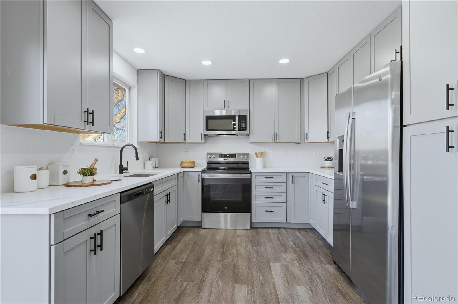 Welcome home to this fully remodeled 4-bedroom tri-level, perfectly situated on a peaceful street in the highly sought-after Meadowood neighborhood. Featuring a modern design and thoughtful upgrades throughout, this home is truly move-in ready. Step inside to discover new luxury vinyl flooring, new doors, and new recessed lighting throughout the entire home. The stunning kitchen has been completely updated with brand-new stainless-steel appliances, high-end cabinetry, and stone countertops, creating the perfect space for both everyday cooking and entertaining. Both bathrooms have been beautifully renovated with new tile, vanities, and tubs, offering a clean, contemporary feel. Enjoy peace of mind with major upgrades including a new roof and gutters, new air conditioning, and a new furnace—all adding comfort and efficiency. Outside, the large yard offers plenty of room to relax or play and features a brand-new deck with sleek metal railings, ideal for gatherings or quiet evenings outdoors. With its prime location near parks, schools, and amenities, this home offers the perfect blend of convenience, comfort, and style
