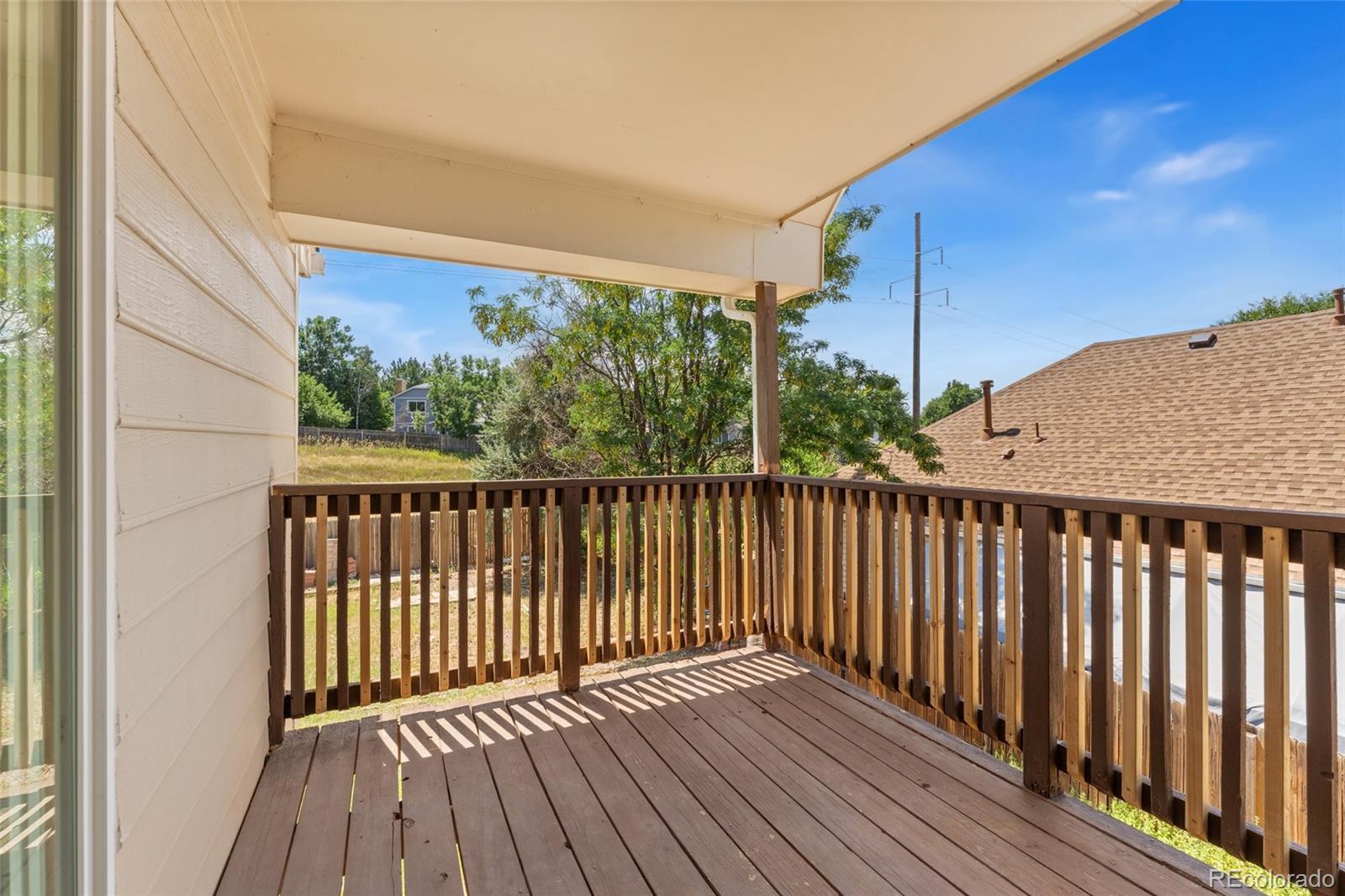 Nicely maintained two-story home in the Summer Valley neighborhood, backing to a peaceful greenbelt. With no HOA and a generously sized lot with mature trees, this property feels tucked away while still being close to shopping, dining, and everyday amenities. Inside, the easy-flowing layout begins with a welcoming living room anchored by a cozy fireplace, creating a warm and inviting space to gather. The updated eat-in kitchen features granite countertops, stainless steel appliances, and plenty of cabinet space. Upstairs, all bedrooms are thoughtfully positioned, including a primary suite with its own private deck, a walk-in closet, and direct access to a tastefully updated bathroom. Recent improvements include a newly installed AC and furnace, a water heater that’s just two years old, and a new patio and driveway. The large backyard is ideal for entertaining or simply relaxing, complete with a spacious patio and plenty of room to garden, play, or customize to your lifestyle. Located in the Cherry Creek School District and just minutes from Quincy Reservoir, schools, and major highways, this home delivers comfort and convenience in one great package.