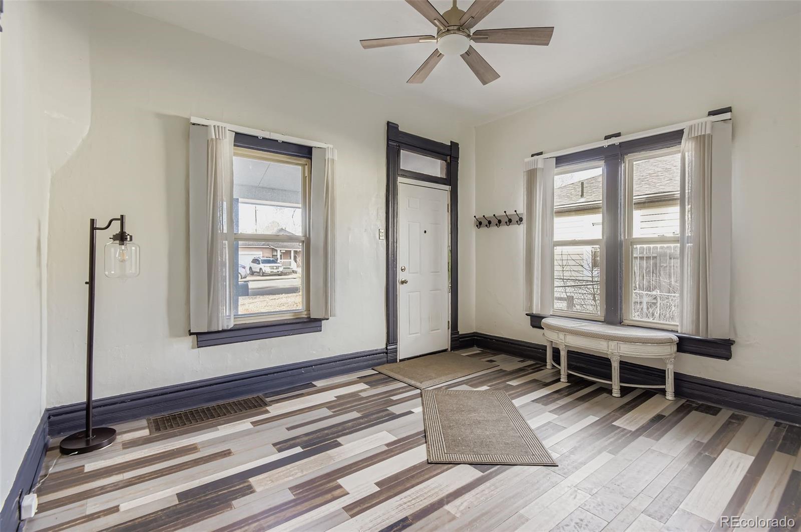 Charming and full of character, this 1919 home sits on a 6,316 sq ft lot and includes a 1-car detached garage, all in a desirable and highly convenient location close to Swedish, Craig, and Porter Hospital. The home offers two comfortable bedrooms (one with a walk-in closet) and a beautifully updated bathroom featuring a large soaking tub, a separate shower stall, sink, and toilet. A very spacious dining room flows openly into the sunny, bright kitchen, highlighted by a delightful garden window that brings in abundant natural light. Additional highlights include all newer windows (with original trim from 1919) and a newer high-efficiency furnace, a main-level laundry area, and the perfect blend of classic charm with thoughtful modern updates.