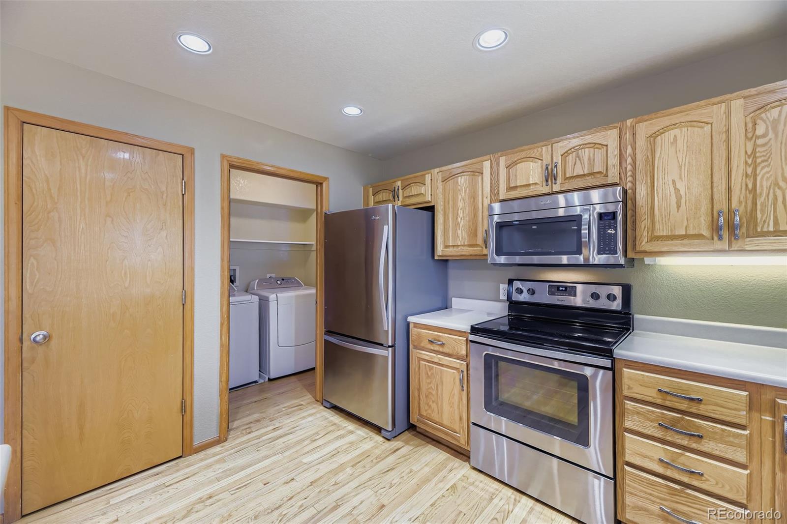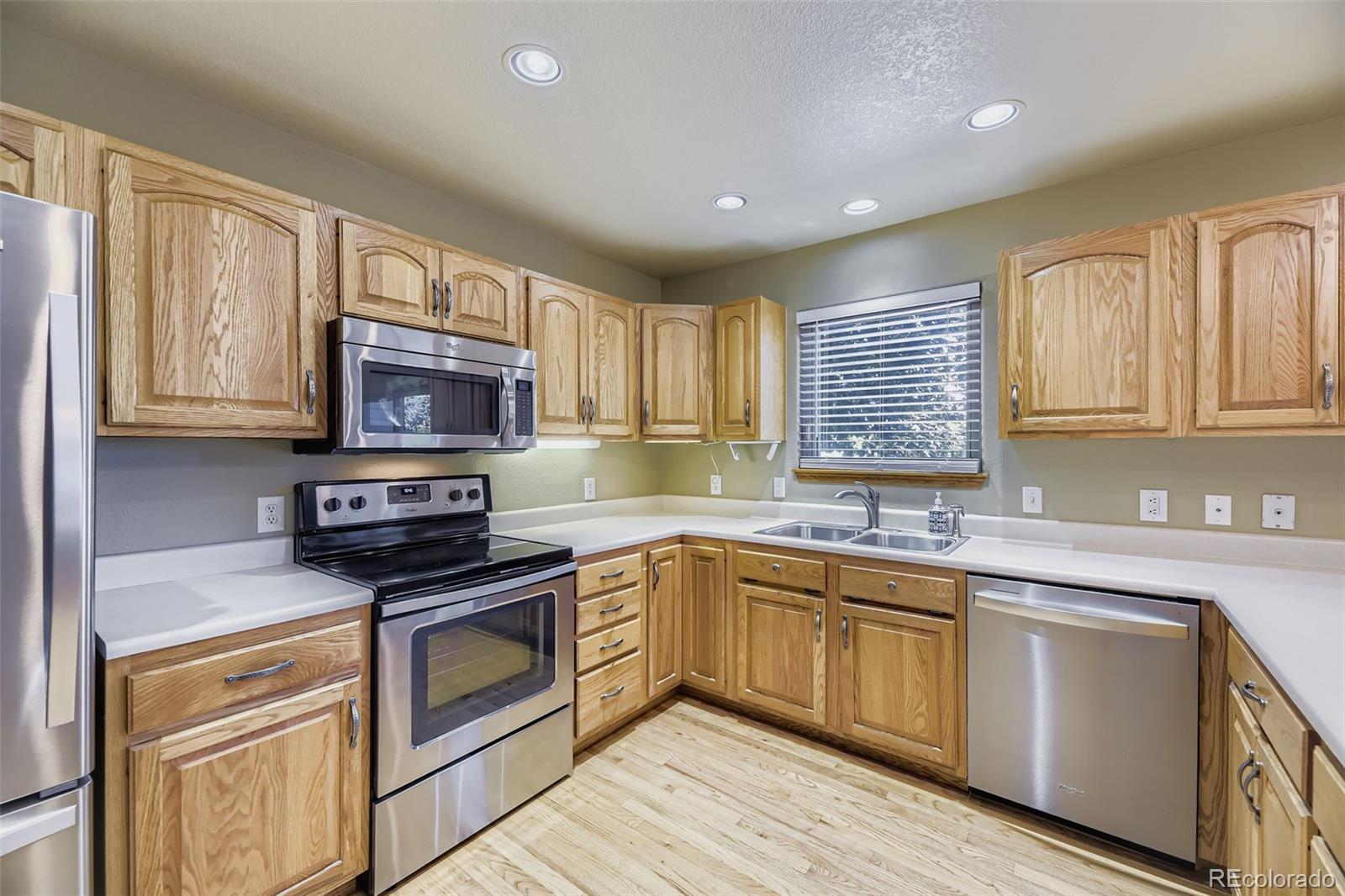 Welcome to 1911 S Kipling St #8, a radiant townhouse nestled in the serene community of Lakewood, CO. This end unit, with its quiet charm and off-street parking, offers a blend of comfort and sophistication. Step inside to discover a world where natural light dances across oak floors, and vaulted ceilings create an airy, expansive feel. The open plan layout ensures that each space flows seamlessly into the next, perfect for entertaining or simply enjoying the tranquility of your home. The heart of this home is the inviting living area, anchored by a gas fireplace that crackles with warmth on cool Colorado evenings. Fresh paint in a palette of soothing tones complements the clean, freshly serviced ducts and carpets, ensuring a pristine environment that's ready for you to make your own. Each of the three bedrooms promises restful slumber, while the 3.5 baths provide ample space for both family and guests. The master suite is a retreat unto itself, with generous proportions and a sense of seclusion. The finished basement is a treasure trove of possibilities, featuring a wet bar that stands ready to host your most memorable gatherings. Step outside to the fenced backyard, where a patio beckons for alfresco dining and the deck, equipped with an automatic awning, offers a shaded haven for lazy afternoons. The kitchen, a chef's delight, boasts stainless appliances set against a backdrop of oak cabinetry. New 2" blinds frame the windows, offering both privacy and a connection to the natural surroundings. For your convenience, the townhouse includes a 2-car attached garage, providing secure space for vehicles and storage. At 1911 S Kipling St #8, you're not just finding a house; you're discovering a home where every detail has been curated for your comfort. This is a place where memories will be made, laughter will resonate, and peace will be a constant companion. Your Lakewood haven awaits.