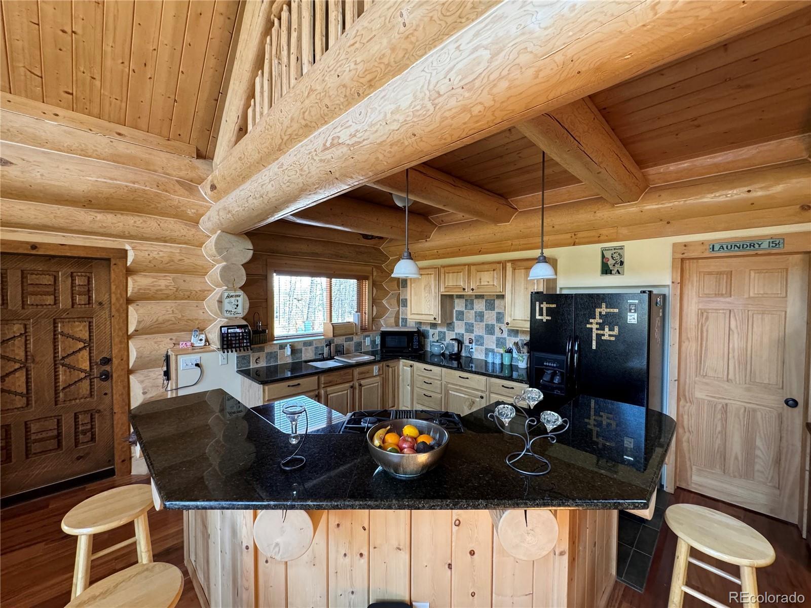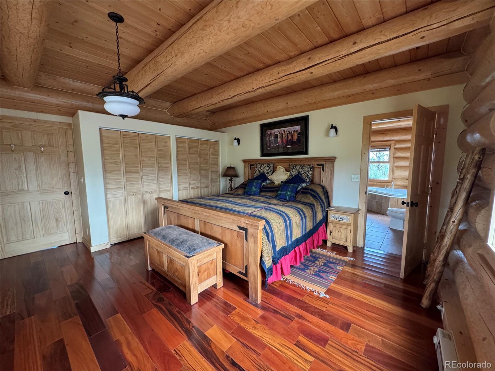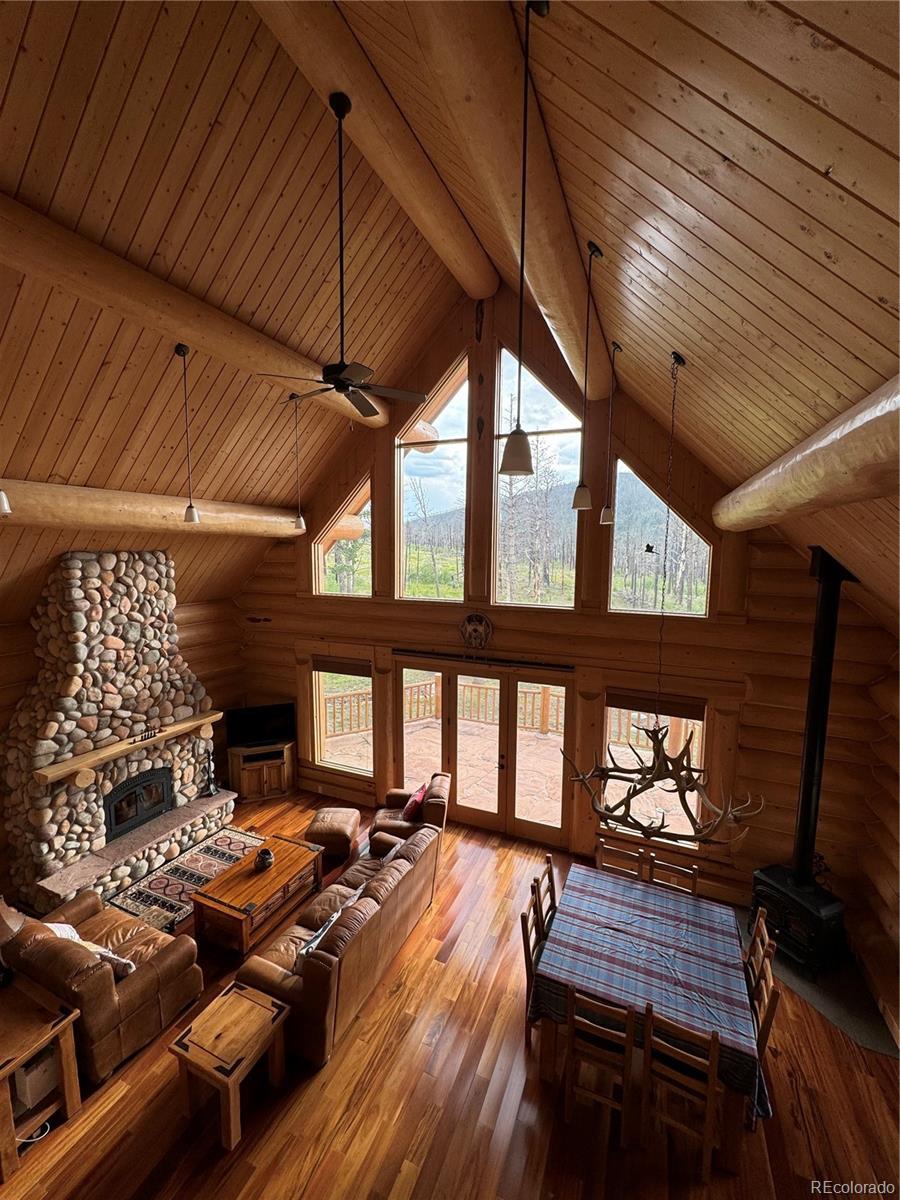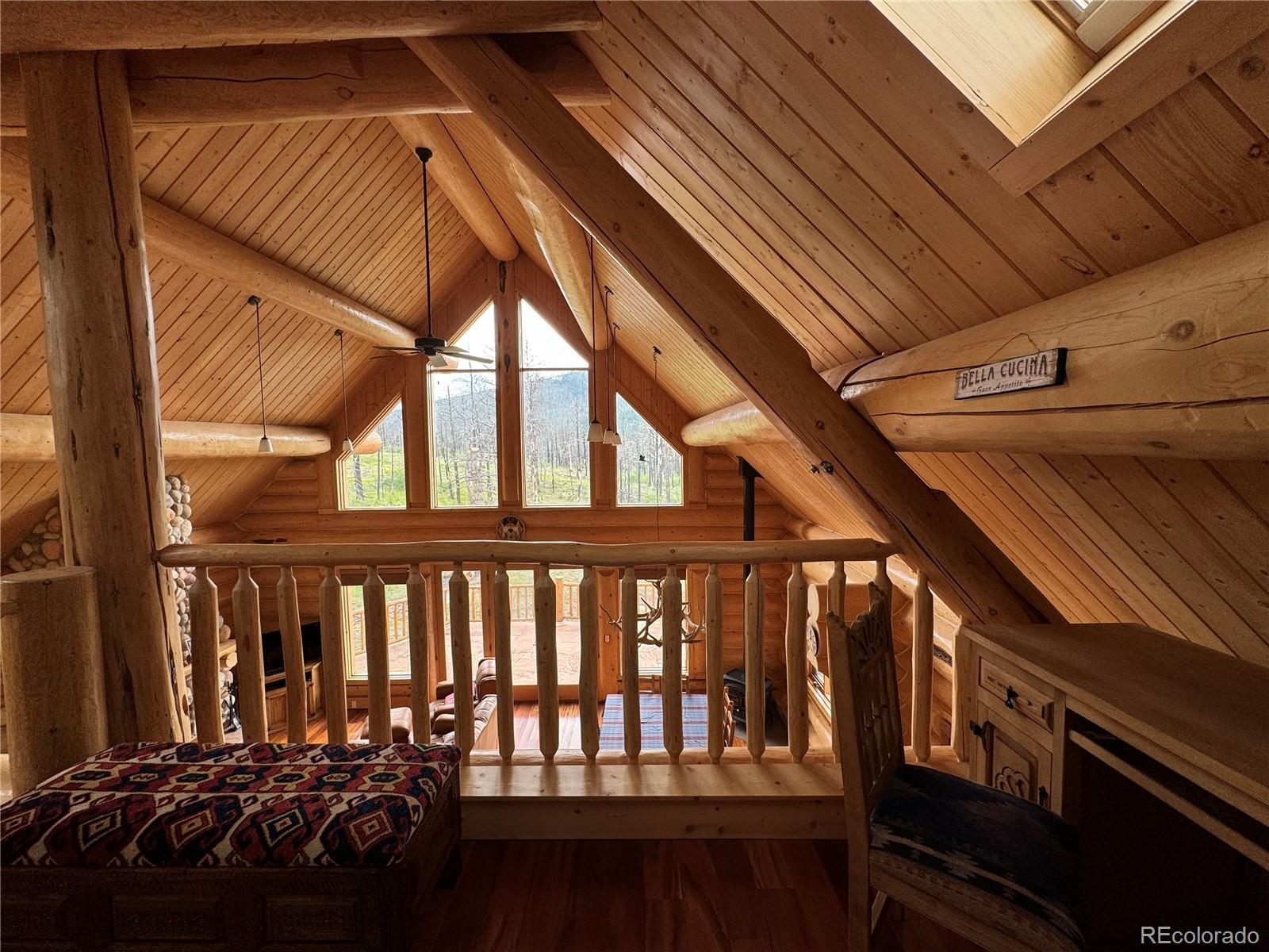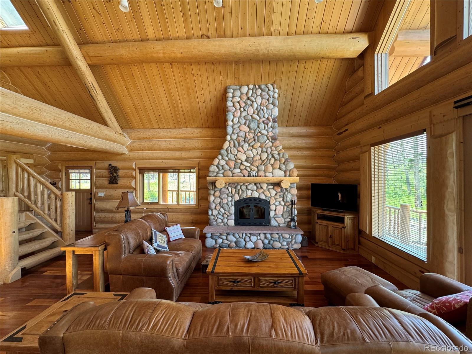 This custom built true log home is situated in GATED Forbes Park with full year access by subdivision maintained roads. A true hand crafted log home with every log cut specifically to fit the logs above and below, ranging from a minimum of 11 to 24 inches in diameter and meticulously maintained with extra care given to preserve the logs and seals. When walking in, you will immediately notice the gorgeous Somerset Tigerwood hardwood floors that carry throughout most of the home. The open floor plan, modern lighting and natural light through large custom windows create a picturesque ambiance. The primary bedroom and bathroom are on the main floor making it a delight for anyone who does not want to regularly climb stairs. Up the hand built log stairs, there are two more bedrooms with their own bathroom for guests. A gallery area at the top of the stairs is a great additional space and could be used as an additional sleeping space for extra visitors. Fiber Optic internet (up to 2Gb/S), mains electric service (supplied by San Isabel) and a buried gas tank make your mountain dreams a reality with all of the amenities you would look for in a home. Crystal clear well water and a newly pumped septic system will provide longevity without a recurring payment. While within the burn scar, these two properties are recovering quickly with abundant regrowth and mitigation following the fire. The HOA provides winter plowing and trash removal to ease your visits. Diverse wildlife call the area home and with few human neighbors, will happily keep you company. Enjoy day trips to Red River, Great Sand Dunes National Park, Cuchara, Taos (and the many nearby Ski resorts) offer so much with recreation all around the area throughout the year. Homebodies and explorers alike will fall in love with this one of a kind home.