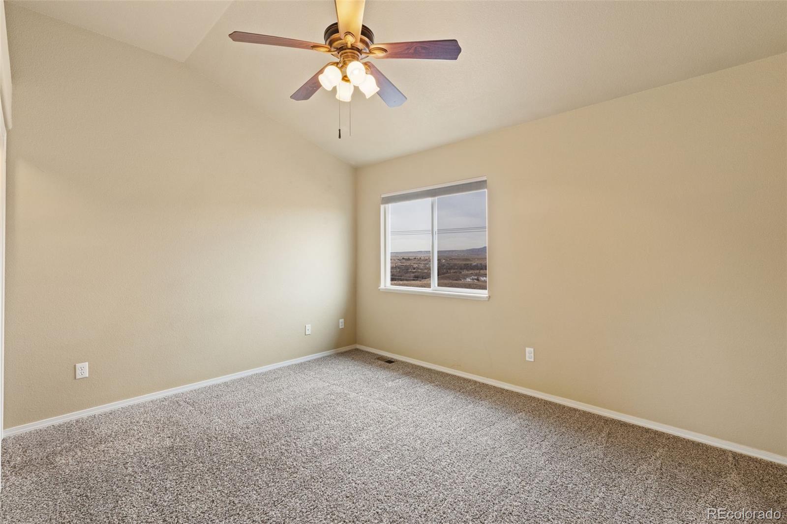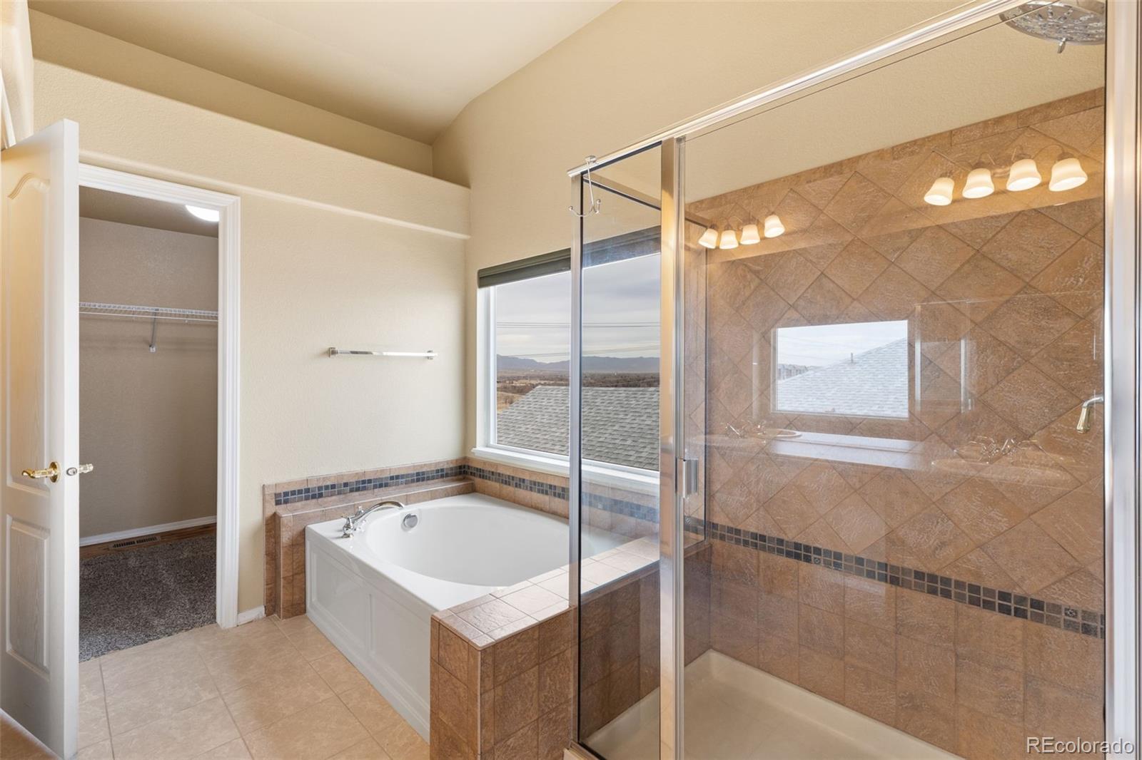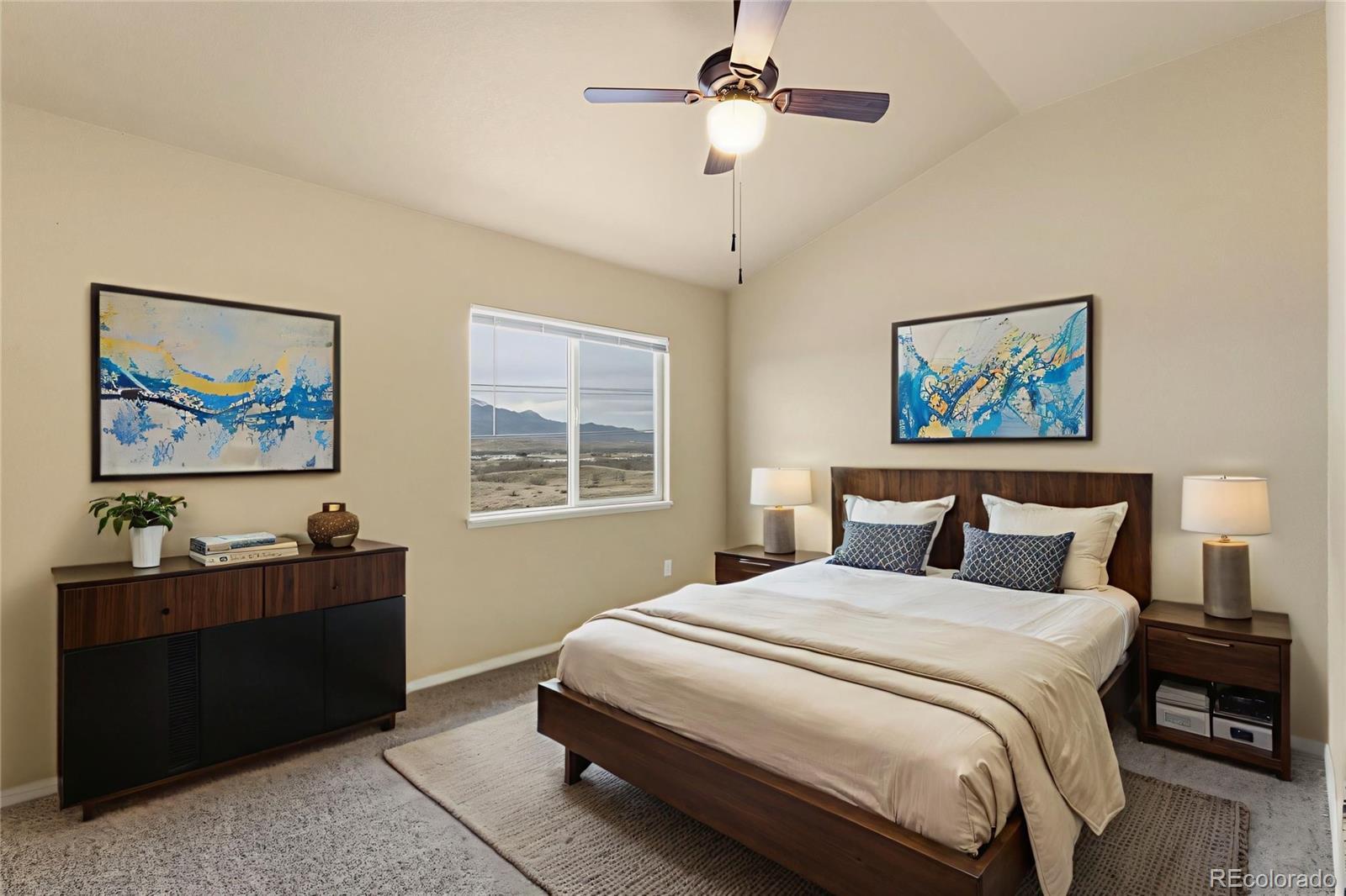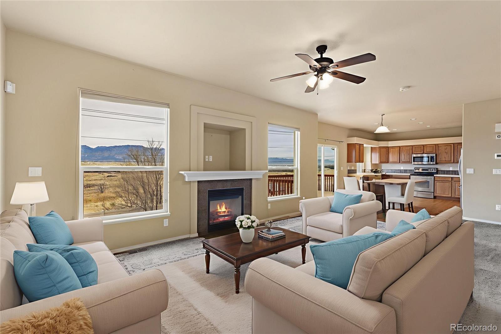 VIEWS, VIEWS, VIEWS! Don’t miss this incredible 4-bedroom home ideally located just outside Fort Carson and within walking distance of all Mesa Ridge amenities. Enjoy breathtaking, unobstructed views of the Front Range and Pikes Peak—views that are truly hard to find! Step inside to a spacious living room filled with natural light from a beautiful bay window, flowing seamlessly into the dining area. The expansive kitchen features upgraded stainless steel appliances, a large pantry, and a sunny eat-in nook. The kitchen has a walk out to the back deck which is perfect for outdoor entertaining. Just off the kitchen, the inviting family room offers a cozy gas fireplace and large windows that perfectly frame the stunning mountain views—enjoy them from the comfort of your couch. The main level also includes a convenient half bath, a generous laundry room, and access to the oversized two-car garage. Upstairs, retreat to the elegant primary suite with vaulted ceilings, large front-facing windows, and French doors leading to a luxurious five-piece bath with a spacious walk-in closet. Three additional bedrooms, a full bathroom with dual vanity, and a linen closet complete the upper level. The unfinished walk-out basement provides ample storage and opens to a fully fenced backyard, offering endless possibilities for future expansion or outdoor enjoyment. Conveniently located near Mesa Ridge shopping and dining, Fort Carson, I-25, and all military bases, this home truly has it all. Homes with views like this don’t come around often—schedule your showing today and don’t miss this gem!