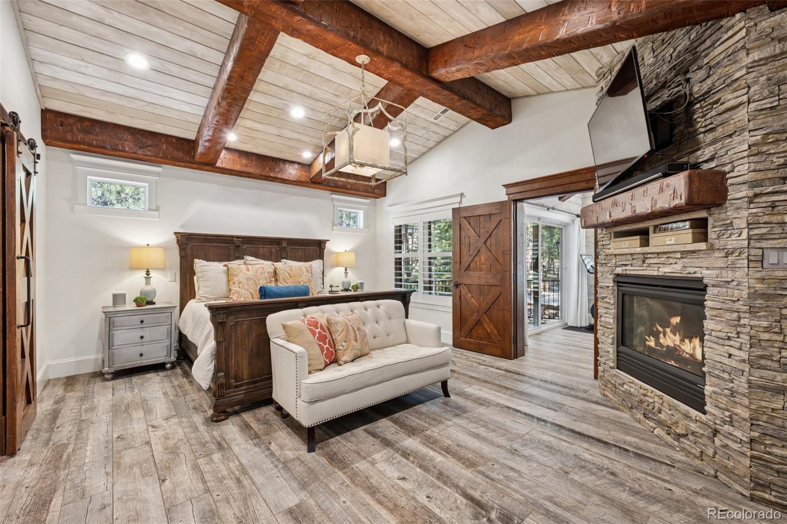 This extraordinary custom home blends timeless craftsmanship with modern luxury across 6,200+ sq. ft. of thoughtfully designed living space with custom finishes and upgrades. The main level features an inviting entry with crown molding, custom lighting, & a handcrafted front door. The living room boasts vaulted ceilings, boxed windows, & an artisan FPX wood-burning fireplace. A private office includes Brooks Brothers cabinetry, barn doors, & an exterior entrance. The kitchen offers updated appliances & Pottery Barn lighting, with a mudroom featuring custom cabinetry & designer finishes. This level also includes a laundry room with floor-to-ceiling cabinetry & a versatile craft room that doubles as a second office—ideal for two working from home. Upstairs you’ll find spacious secondary bedrooms, including one with a private bath, a sitting area, & a beautifully appointed primary suite with whitewashed beam ceiling, stone fireplace, radiant floors, spa bath with steam shower & Restoration Hardware tub, plus a Brooks Brothers closet with additional laundry & storage. Off the master is a second laundry & an exercise room/nursery, adding both convenience & flexibility. A private heated deck with Trex decking completes the retreat. The finished walk-out basement includes two bedrooms, an updated bath, a wood-burning fireplace & flexible living space including a potential media room. It also offers private side entrances for convenience. Outdoor living shines with multiple covered patios, a bocce court, pergola gates, raised garden beds, professional landscaping, a playground, a custom bridge, & a below-ground hot tub. Hand-cut stonework, copper gutters, & a Davinci roof with transferable 50-year warranty ensure beauty & durability. A private entrance leads directly to 417-acre Fox Run Park. From custom cabinetry & radiant floors to smart wiring, motion sensors with cameras, & outdoor speakers, every detail has been carefully considered.