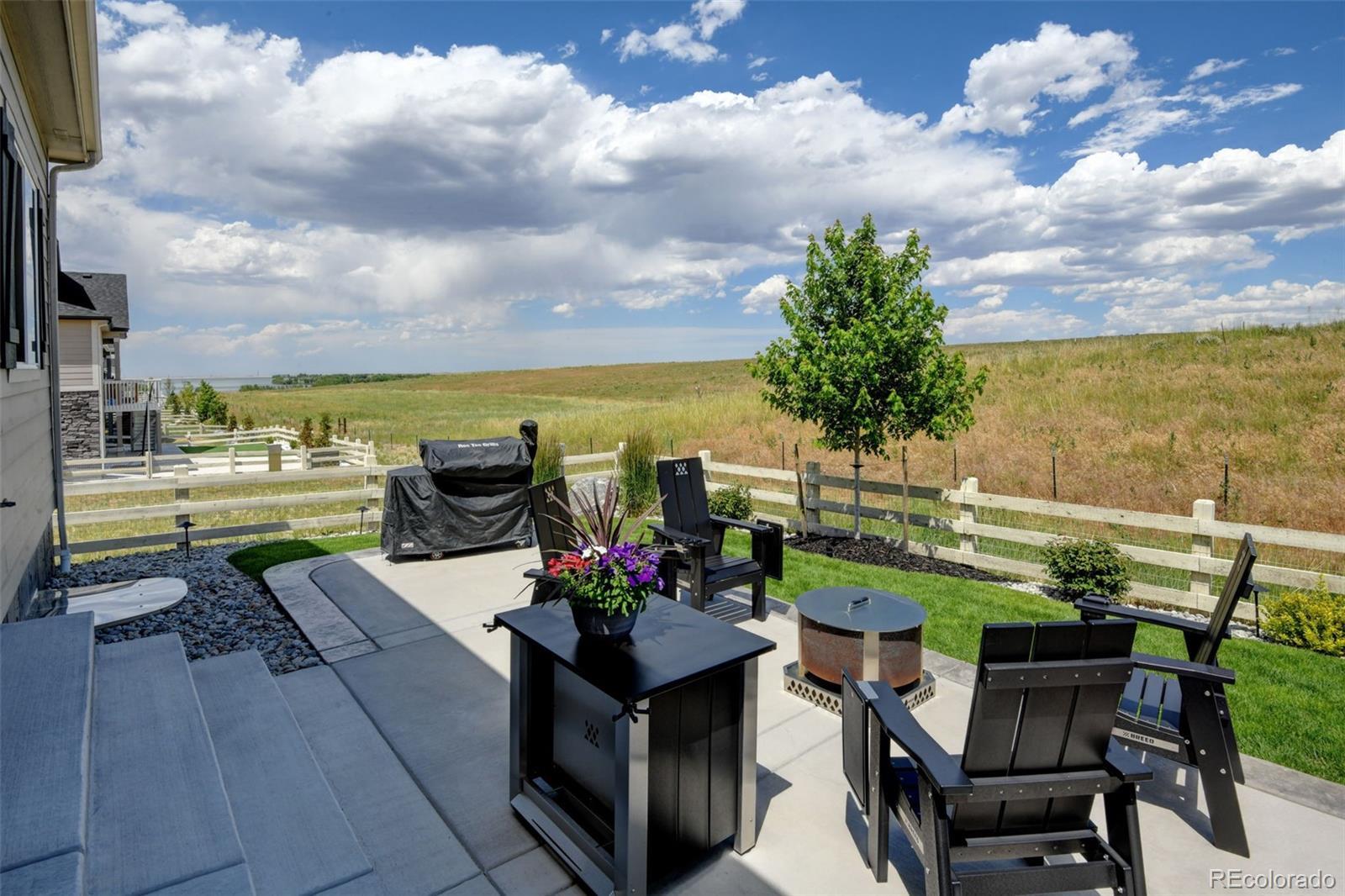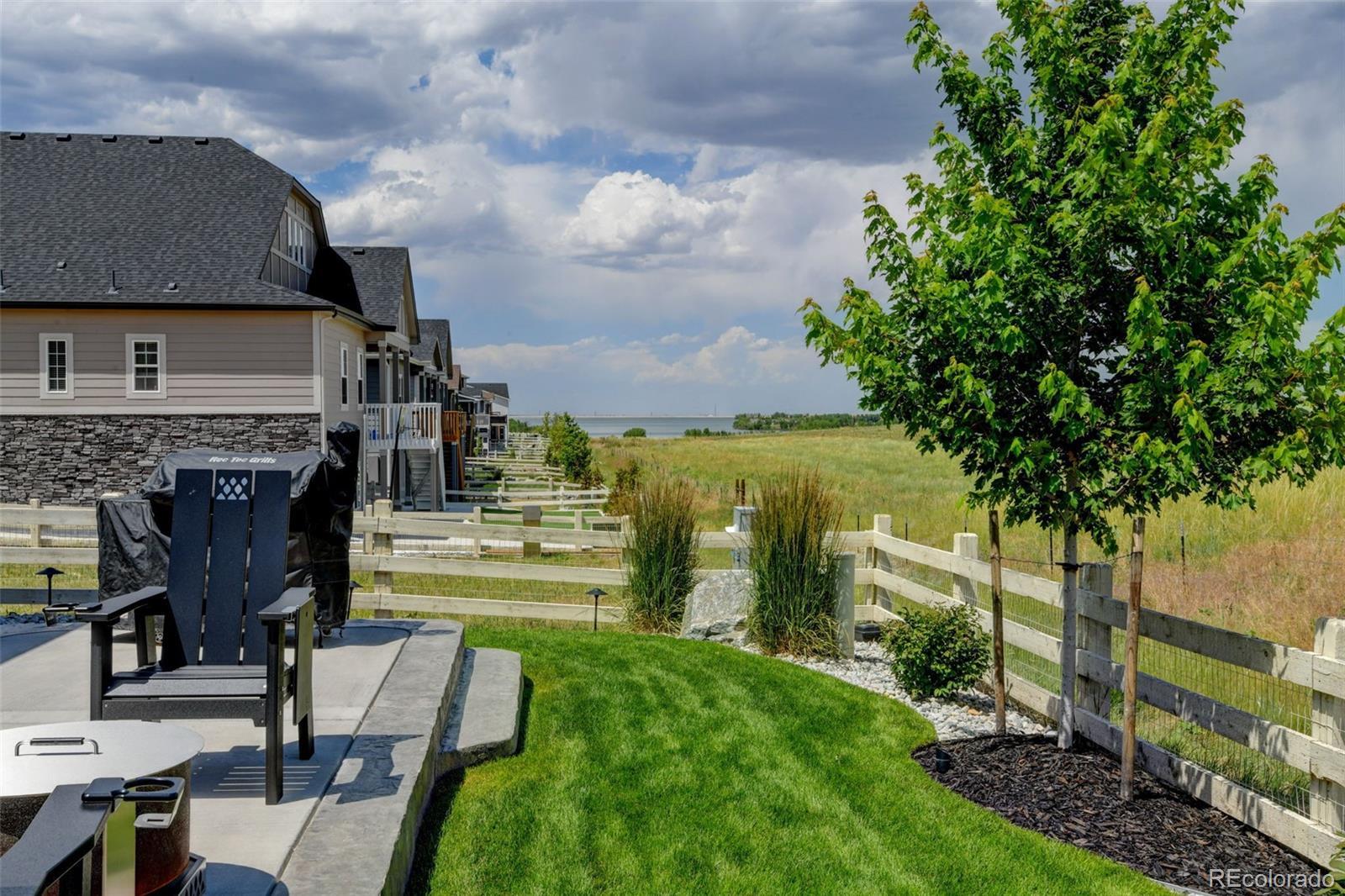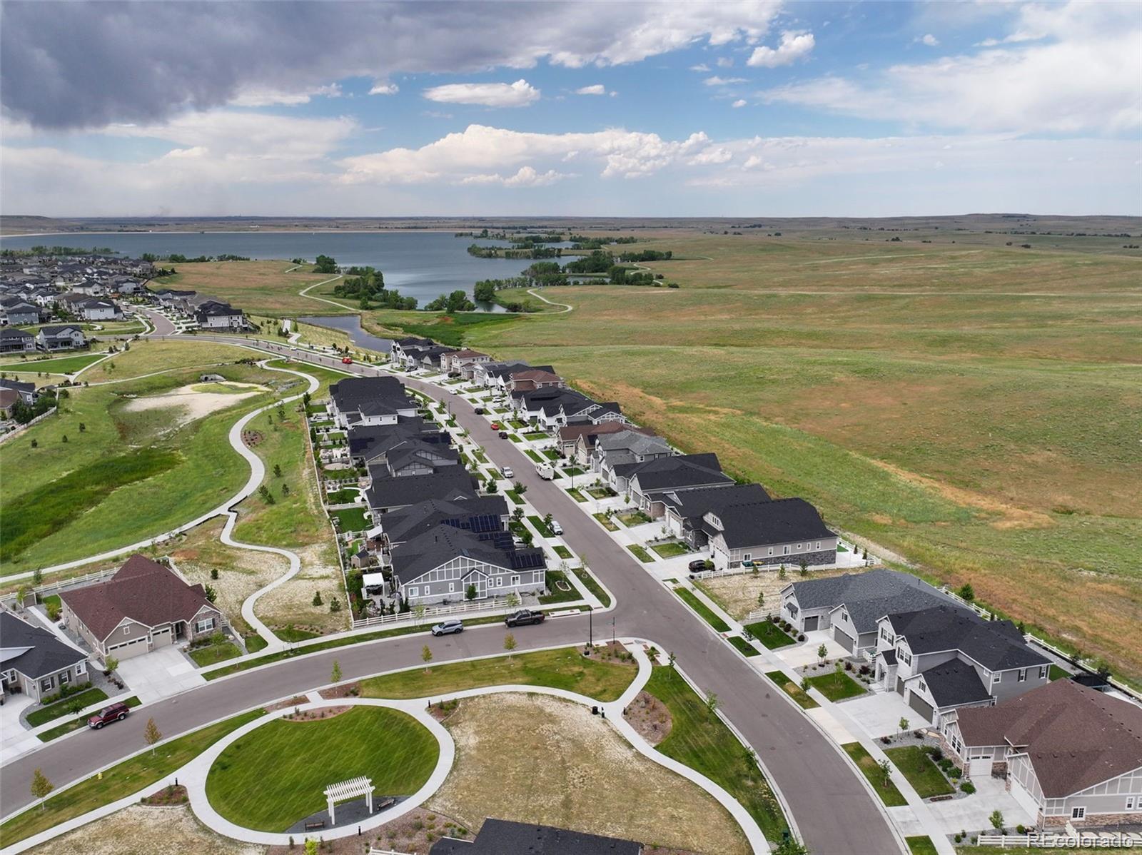 Welcome to this pristine home in the highly sought-after Southshore community! Situated on a premium lot, this property offers unmatched privacy with a park directly in front, a greenbelt on the side, and open space behind, PLUS beautiful views of the Aurora Reservoir from the dining room and back patio. This spacious ranch-style home features 10ft ceilings with 8ft doors on the main floor, five bedrooms and four bathrooms, with thoughtful design throughout. The gourmet kitchen is a standout, boasting a massive center island, an entire wall of counter space, and extended-height double cabinetry for abundant storage. On the main floor, you have the primary suite with a spa-like bathroom including dual vanities, a soaking tub, a large walk-in shower, and two walk-in closets. Additionally, you will find an office/flex space with double glass doors, two more bedrooms, and a full bath. The finished basement also includes two bedrooms, a full bath, an additional office/flex room with glass doors, and a large rec/media area, plus ample storage. Tech-savvy buyers will love the smart features throughout, including Wi-Fi enabled lighting, garage doors, Rachio irrigation system, thermostat, etc. Additional upgrades include a Class 4 impact-resistant roof (new in 2024), plantation shutters in main-floor bedrooms, automated blinds in living areas, and luxury vinyl plank flooring on the first level. Step outside to a beautifully landscaped backyard oasis, and with the right offer, sellers will include the newer hot tub. Extras include a radon mitigation system, access to top-rated Cherry Creek schools, and close proximity to two community clubhouses, pools, parks, shopping, DIA, and DTC. This home truly has it all, JUST move in and enjoy!