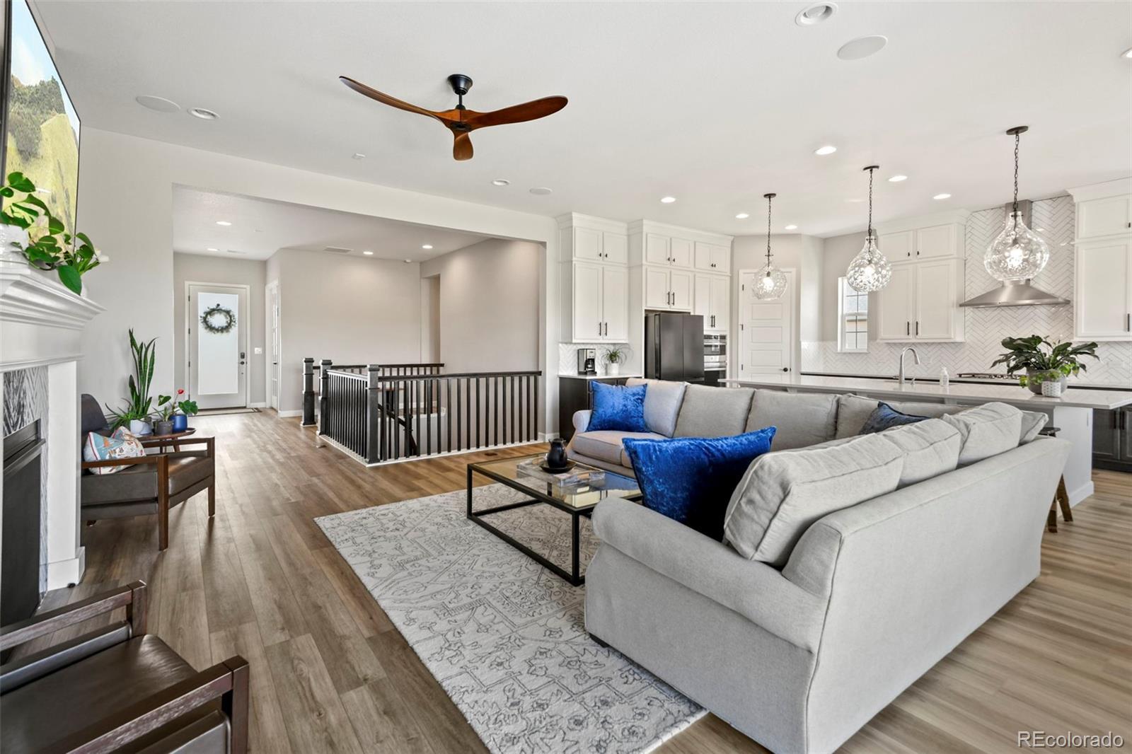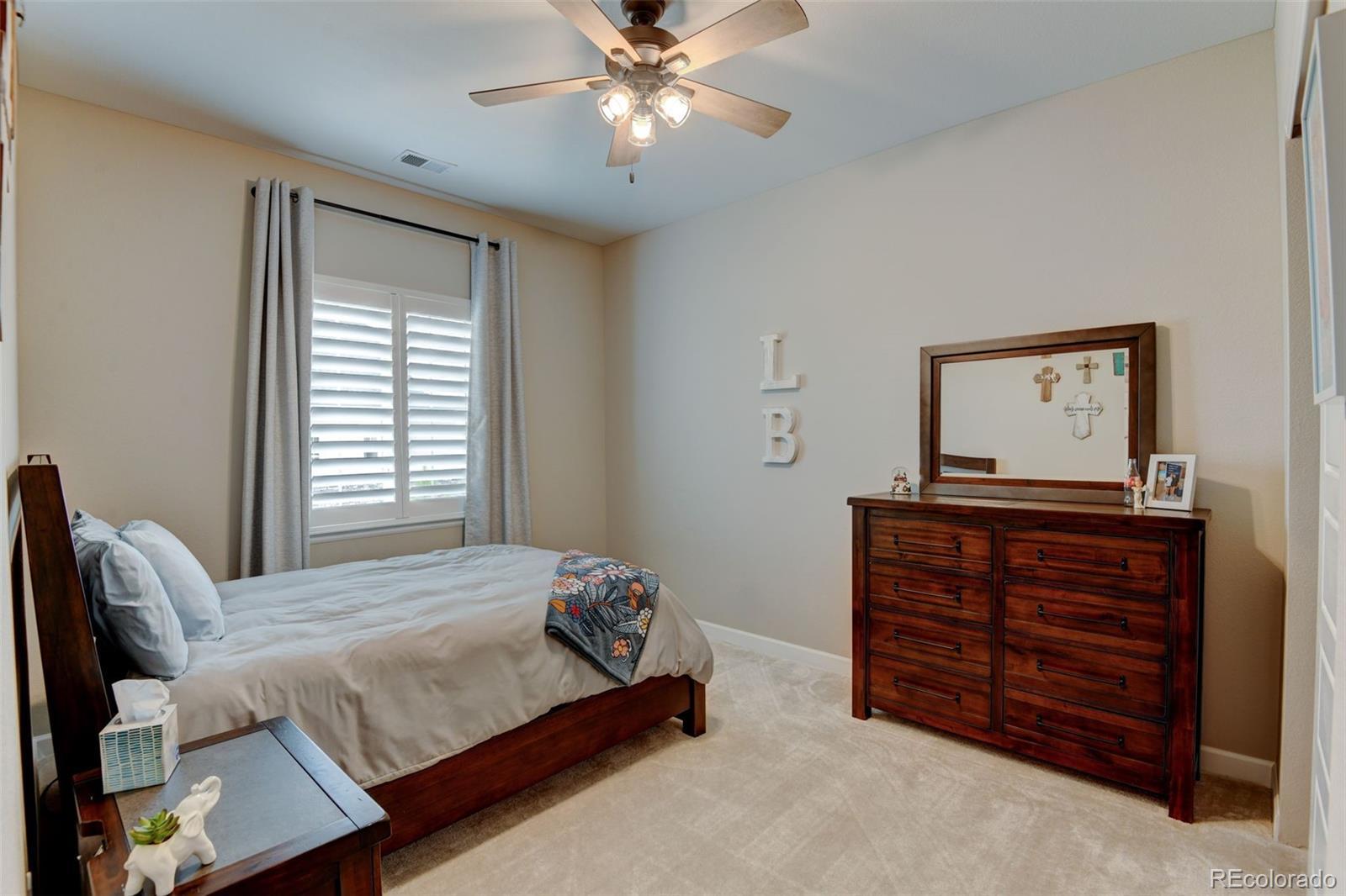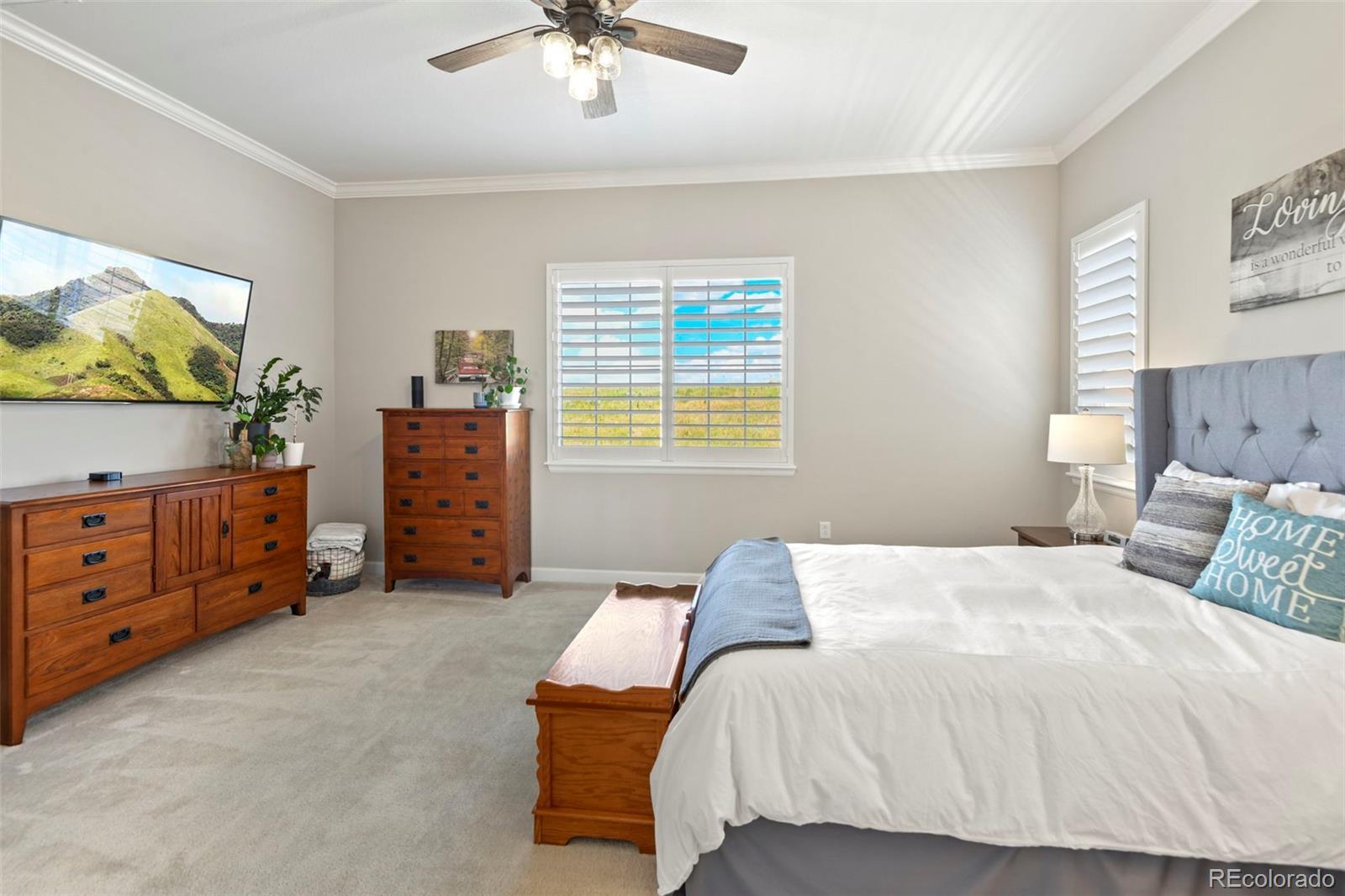 Welcome to this pristine home in the highly sought-after Southshore community! Situated on a premium lot, this property offers unmatched privacy with a park directly in front, a greenbelt on the side, and open space behind, PLUS beautiful views of the Aurora Reservoir from the dining room and back patio. This spacious ranch-style home features 10ft ceilings with 8ft doors on the main floor, five bedrooms and four bathrooms, with thoughtful design throughout. The gourmet kitchen is a standout, boasting a massive center island, an entire wall of counter space, and extended-height double cabinetry for abundant storage. On the main floor, you have the primary suite with a spa-like bathroom including dual vanities, a soaking tub, a large walk-in shower, and two walk-in closets. Additionally, you will find an office/flex space with double glass doors, two more bedrooms, and a full bath. The finished basement also includes two bedrooms, a full bath, an additional office/flex room with glass doors, and a large rec/media area, plus ample storage. Tech-savvy buyers will love the smart features throughout, including Wi-Fi enabled lighting, garage doors, Rachio irrigation system, thermostat, etc. Additional upgrades include a Class 4 impact-resistant roof (new in 2024), plantation shutters in main-floor bedrooms, automated blinds in living areas, and luxury vinyl plank flooring on the first level. Step outside to a beautifully landscaped backyard oasis, and with the right offer, sellers will include the newer hot tub. Extras include a radon mitigation system, access to top-rated Cherry Creek schools, and close proximity to two community clubhouses, pools, parks, shopping, DIA, and DTC. This home truly has it all, JUST move in and enjoy!