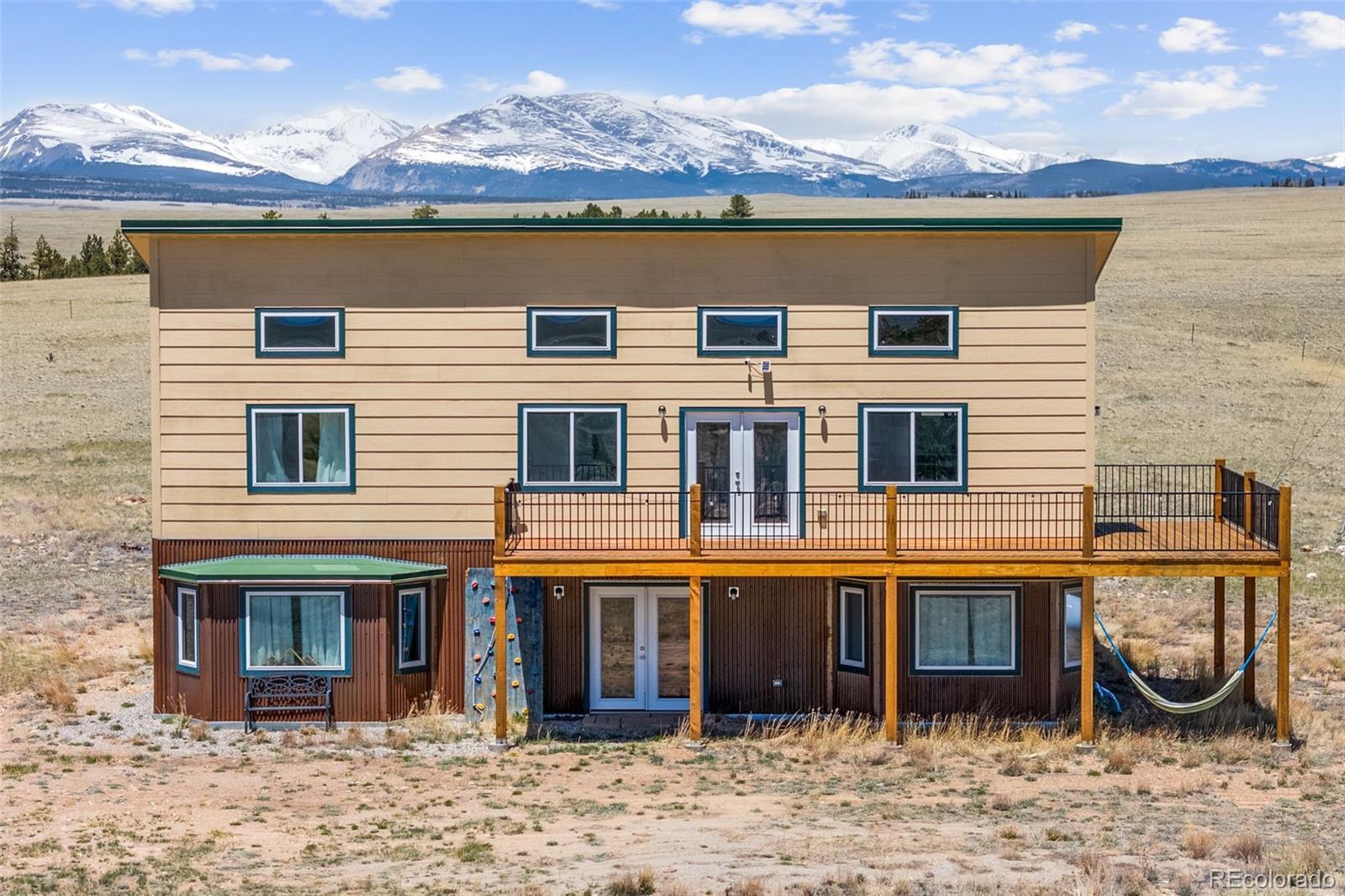 Experience modern mountain living in this pristine 2019-built home with sweeping views of the Mosquito Range. Bordering thousands of acres of BLM and conservation land, this energy-efficient retreat offers privacy, year-round comfort, and no HOA restrictions. Designed for off-grid living, the property features full solar power, in-floor radiant heat, and a fully fenced lot with gated entry. Inside, high ceilings, expansive windows, and passive solar design fill the home with light while maximizing efficiency. A cozy gas stove and custom Riverwalk accent wall—added after construction—bring warmth and style to the open-concept living space. Perfect as a full-time residence, vacation home, or investment with net rental income over $37,000, this like-new property blends modern finishes with mountain charm. Enjoy world-class skiing, hiking, and fishing nearby in Fairplay, Buena Vista, and Breckenridge. If you’ve been searching for a newer Colorado mountain home with privacy, views, and off-grid capability—this one checks all the boxes.