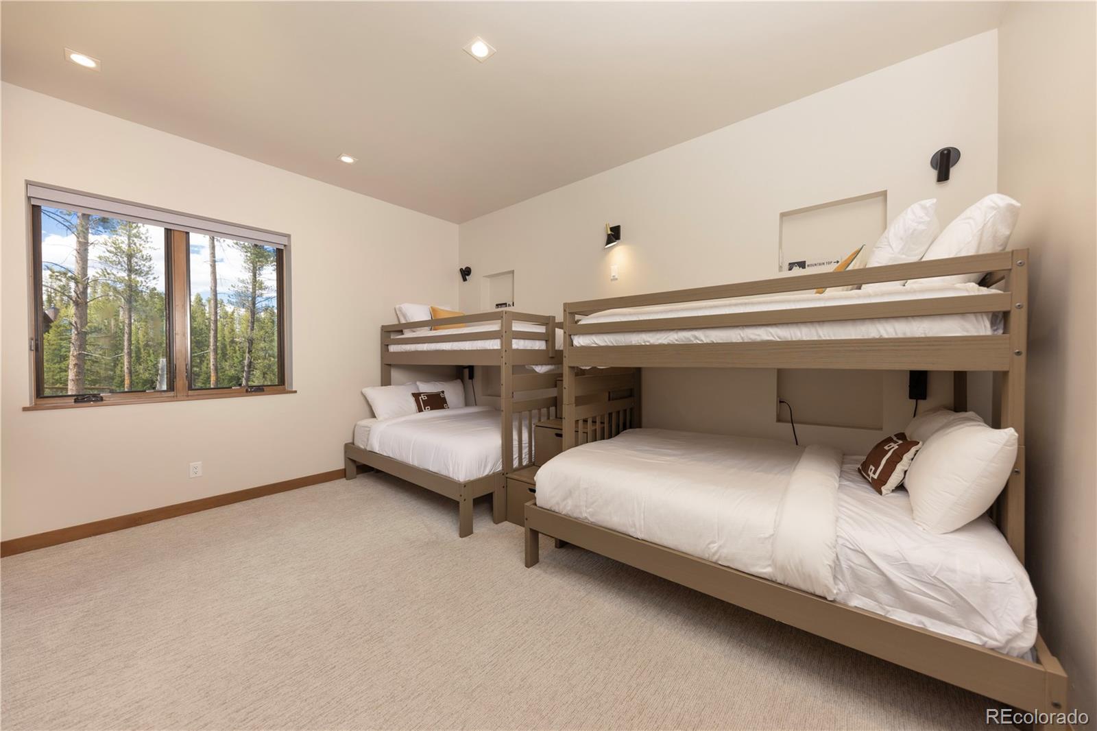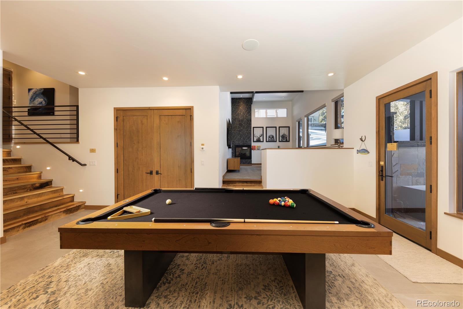 Experience elevated mountain living in this luxury, custom new-build just minutes from downtown Breckenridge. This impeccably designed home combines top-tier craftsmanship with a modern aesthetic, offering everything you want in a high-end mountain getaway. Thoughtfully laid out for comfort and connection, it features two primary suites perfect for hosting multiple groups or multi-generational families. Soaring windows, clean architectural lines, and premium finishes are featured throughout. The spacious game room includes a pool table and wet bar, ideal for entertaining. Enjoy a chef’s kitchen outfitted with Viking appliances, designer lighting, and open concept living spaces that flow seamlessly between indoor and outdoor areas. Every detail has been beautifully crafted to create a welcoming, social atmosphere that’s both stylish and functional. Step outside to the expansive outdoor living spaces with a private hot tub, built-in grill, and dual fire pits to take advantage of the idyllic setting with wooded privacy. Spa-inspired amenities include dual steam showers and a luxurious bath with double showers, adding a true retreat experience. Take in sweeping mountain views while gathering around the fire or soaking under the stars. Located on a peaceful cul-de-sac in the Peak 7 neighborhood, you have endless hiking and biking trails out your door. Fantastic access to Breckenridge Ski Area and Main Street’s shops, dining, and events. Local favorites including Broken Compass Brewing and Breckenridge Distillery are right down the road. Whether you're seeking adventure or a luxurious base to recharge, this home offers an unparalleled Breckenridge lifestyle year-round.