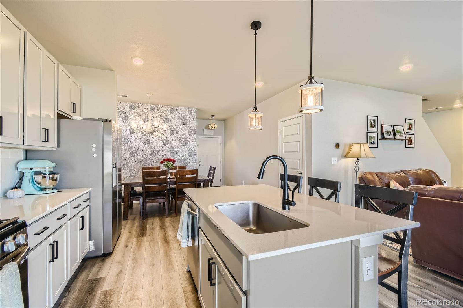 Assumable VA loan ** Welcome to this delightful three-bedroom, three-bathroom home in Lupton Village, Fort Lupton! while on one of the largest lots in the community, step inside to an inviting open-concept kitchen, complete with quartz countertops, soft-close cabinets, and stainless-steel appliances, including a smart gas range. The spacious living room is complemented by a mudroom with additional storage. Upstairs, the laundry area is conveniently located near all bedrooms, with one offering a picturesque view of the foothills. The backyard opens to a serene open space and a community bike trail. Both front and backyards are equipped with irrigation systems, and there's an additional rock irrigation setup in the back, ready for future landscaping. This home also features a tankless water heater, a heated and keyless two-car garage, fiber optic internet, solar panels, and no HOA. Plus, it’s just minutes away from city park, grocery store, library, and the neighborhood dog park. **If your a veteran or in the service, you can secure this home's VA benefit of 4.125% assumable mortgage, save thousands annually, and close in 45 days when you work with preferred lender. Inquire with the listing agent for more details**