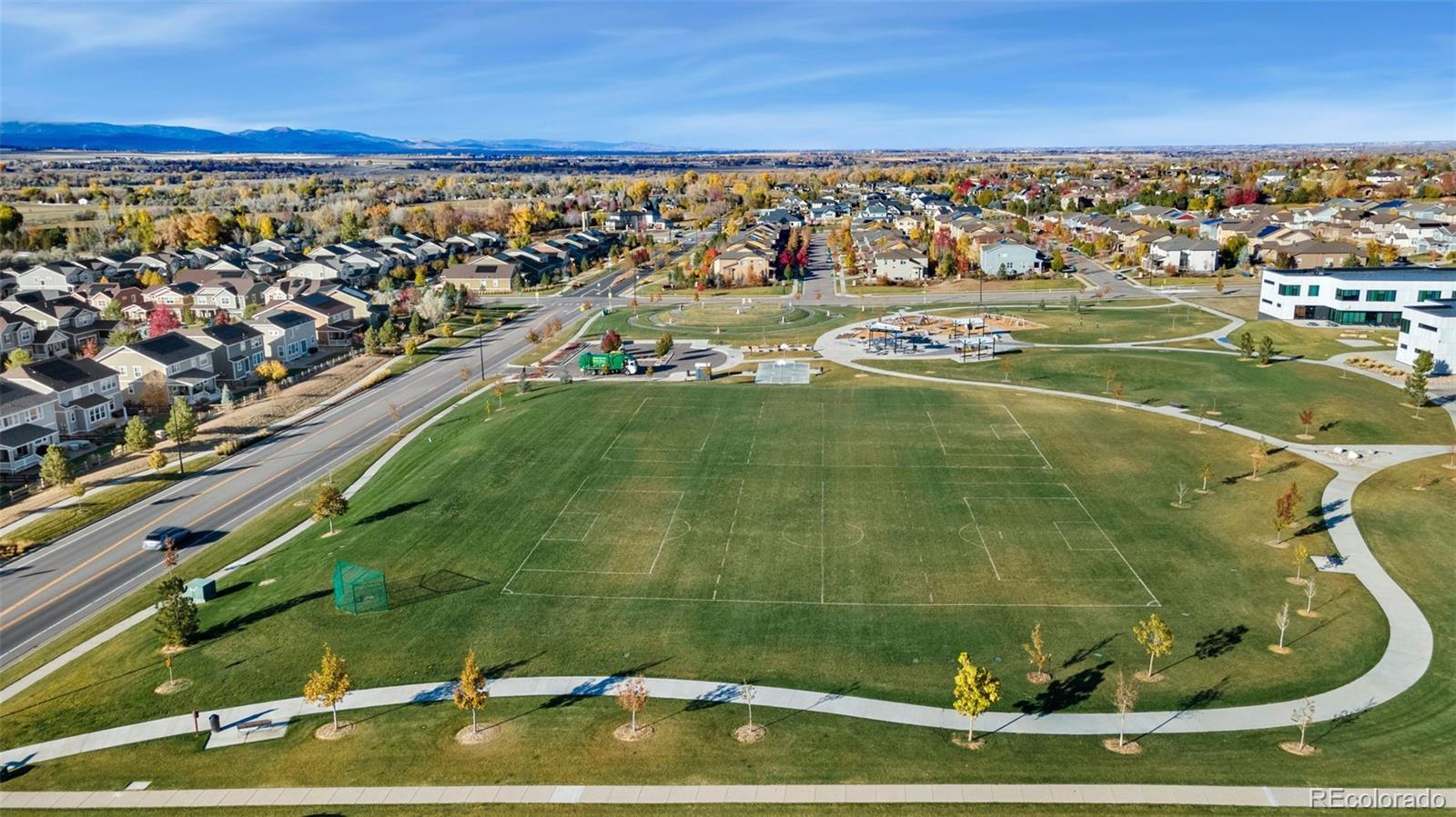 Set on an oversized corner lot in Flatiron Meadows, this 2014 Meritage ranch offers a calm, open feel that carries from the curb all the way through the backyard view. Inside, tall ceilings and natural light create an easy flow from the entry into the main living space, where everyday routines and weekend get-togethers feel equally at home. As the day winds down, mountain views and vibrant Colorado sunsets turn the back of the home into a favorite place to pause. The kitchen anchors the main level with an oversized island and granite counters, plus a gas cooktop, vent hood, and double ovens that make hosting simple. A private office with glass French doors adds a flexible retreat for work or hobbies. The main-floor primary suite is set apart for privacy with a coffered ceiling, mountain-view windows, a 5-piece bath, and two closets. A secondary bedroom with its own en-suite bath, a powder bath, and main-floor laundry with a utility sink complete the level. Downstairs, the unfinished basement adds room to expand with 9 ft ceilings, a finished bedroom currently used as a gym, and a stubbed bath for future plans. Out back, enjoy a stamped concrete patio and a fenced yard backing to the HOA greenbelt, with Town of Erie-owned acreage beyond, plus full sprinklers, garden beds, and landscape lighting.
