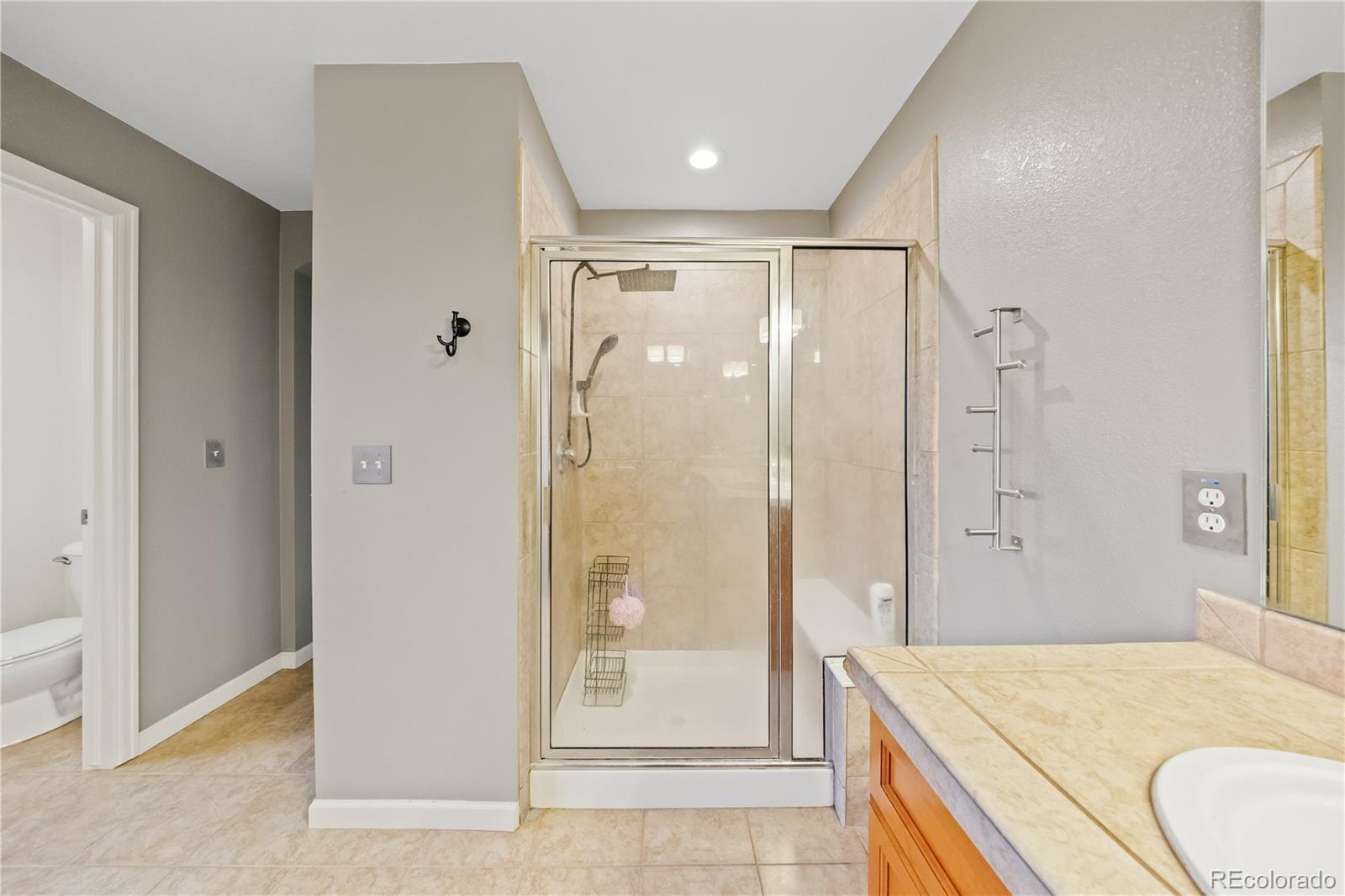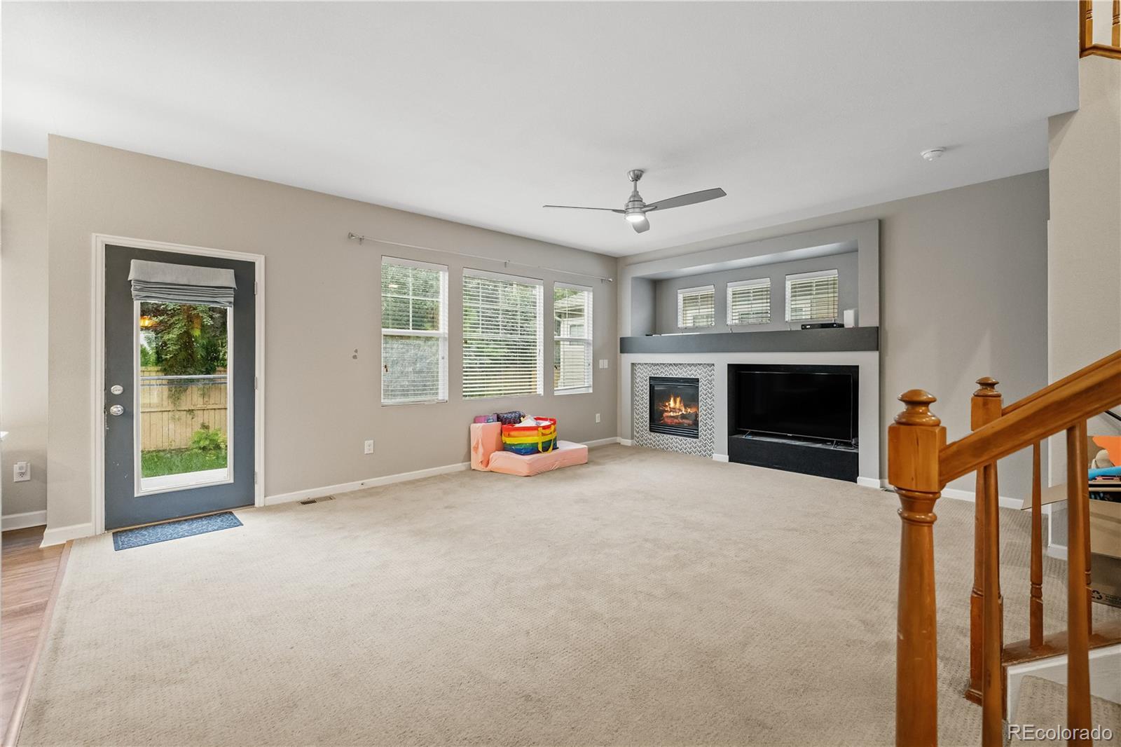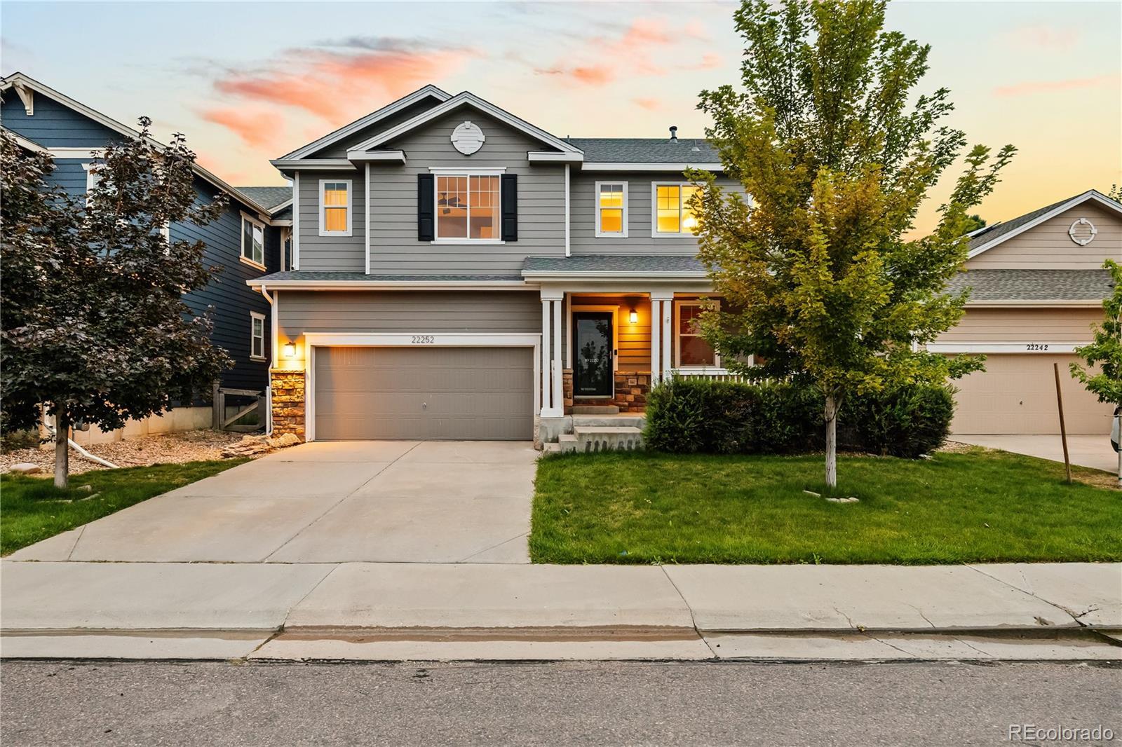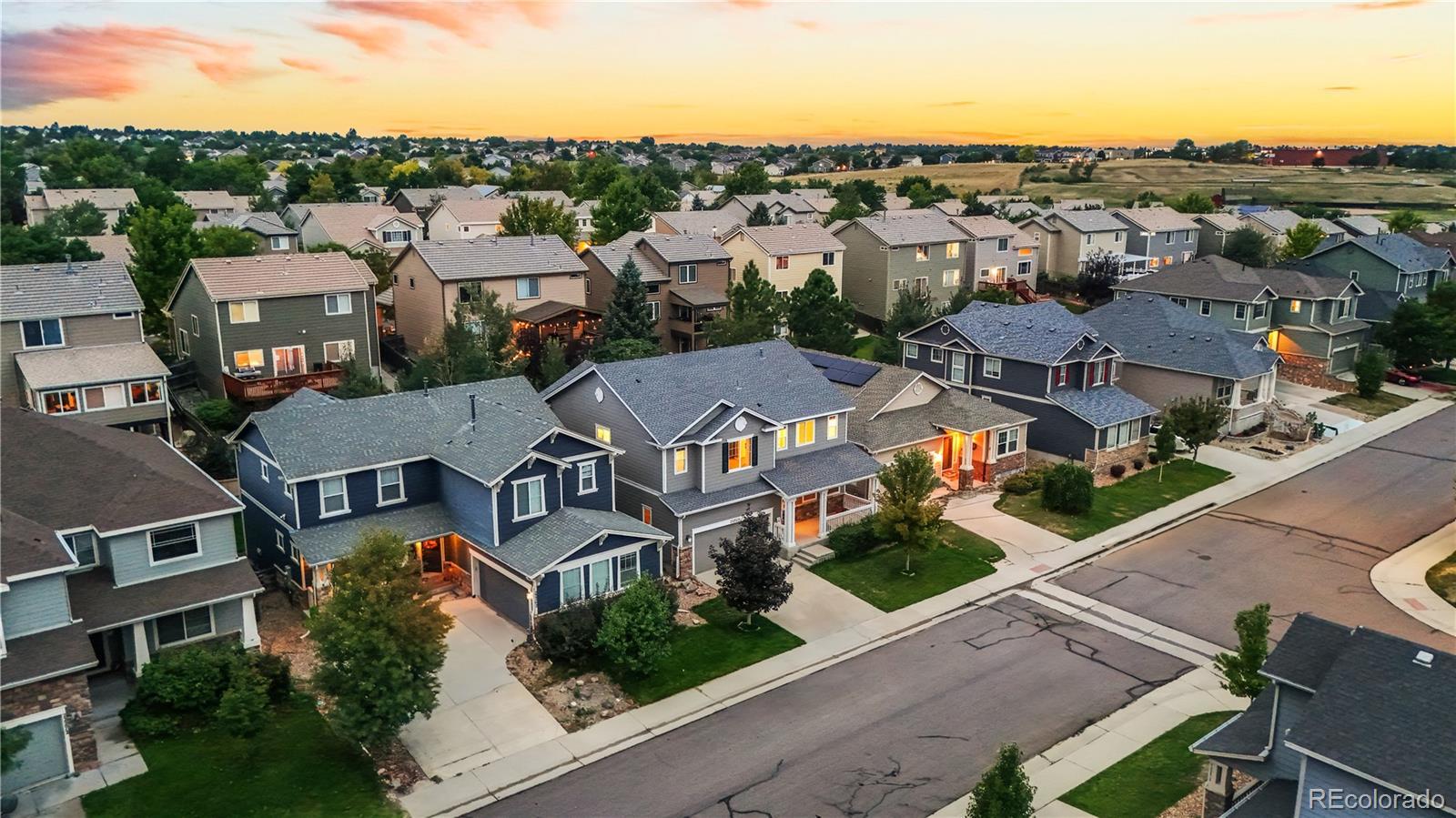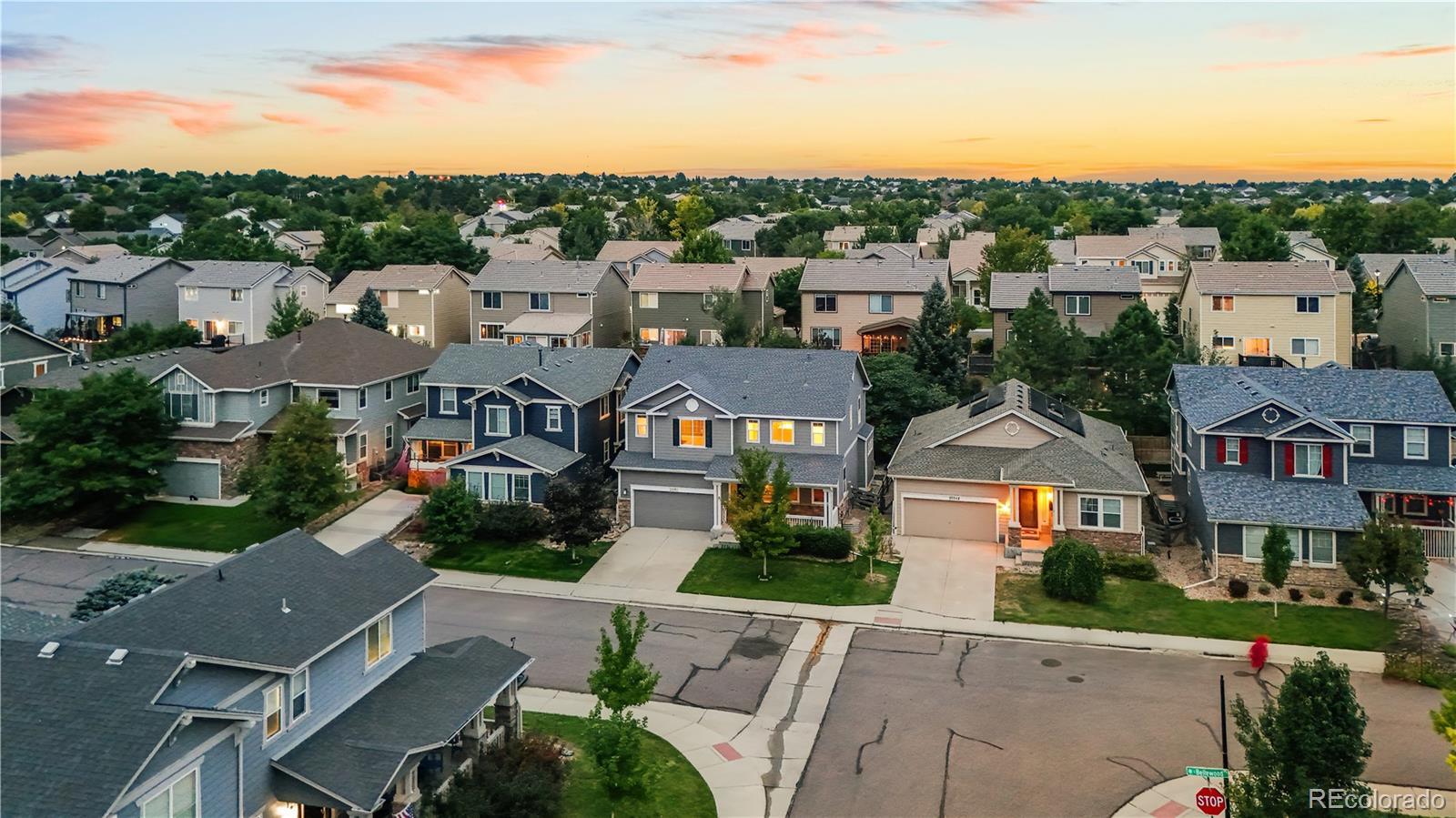 This gorgeous single-family home in Saddle Rock Ridge beautifully blends modern comfort with timeless design. With 4 bedrooms, 3.5 bathrooms, and over 3,200 finished square feet, including a fully finished basement, this residence offers a versatile layout ideal for everyday living and entertaining. Upon entering the home, a spacious, open floor plan seamlessly connects the main living spaces. The focal point of the living room is a striking fireplace, lending a cozy feel to the space. Large windows flood the space with natural light, highlighting the thoughtful design and creating an inviting atmosphere. The kitchen boasts stainless steel appliances, abundant cabinetry and counter space, a spacious island, and a walk-in pantry with additional storage capabilities. Upstairs, three bedrooms provide generous and flexible space, perfect for a family, guests, or creating a private home office. The primary suite features a luxurious spa-like ensuite bathroom with dual vanities, a soaking tub, a separate shower, and a large walk-in closet. This serene retreat is the perfect place to unwind at the end of the day. With a fully finished basement, this home is equipped with a fourth bedroom and a full bathroom on the lower level, ideal for hosting guests or creating a private suite. The flexible basement layout can easily be adapted for a home gym, media room, or additional recreation space, offering endless possibilities to fit your lifestyle. Outside, the backyard is a private sanctuary with well-maintained landscaping and expansive patio space, making it the perfect space for homeowners who want to enjoy outdoor beauty without excessive upkeep. This exceptional property balances style, comfort, and functionality, with easy access to beautiful parks, walking trails, the acclaimed Cherry Creek School District, and a wide array of shopping and dining options.