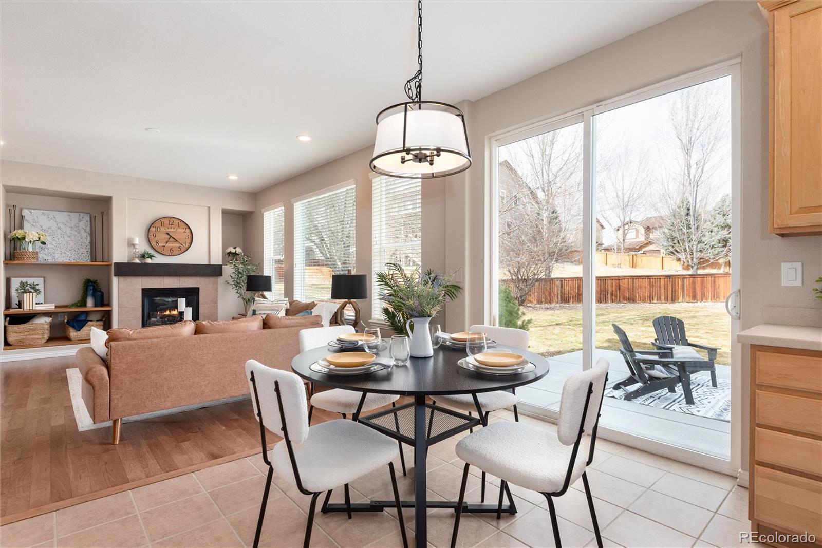 Exceptional home with distinctive enhancements that create a more functional and custom floor plan. Two-story ceilings and expansive picture windows, paired with refinished wood floors, new carpeting and new paint inside & out, give this refreshed home an elevated feel. The kitchen offers both style and function with 42” maple cabinetry for ample storage, a window framed sink, and a gas range perfect for the aspiring chef. Center island has been reconfigured to include a generous workspace, storage, charging station and seating. French-door access from the family room creates a smart modification to the main-floor bedroom, offering an ideal work-from-home space while retaining bedroom status with a walk-in closet. This bedroom pairs well with a full bath, ideal for comfortable stair-free living. The upstairs has a cozy reading nook and striking custom rooms wrapped in oversized windows for exceptional natural light plus bonus features like a charming window bench seat with mountain views and private vanities at the Jack & Jill bathroom delivering a functional layout without sacrificing character. The spacious primary suite offers a sense of privacy and retreat, complemented by a bath updated with quartz counters, new sinks, mirrors, lighting, and new blinds. A finished basement expands the living space, ideal for movie nights or game days and allowing everyone room to spread out comfortably. Outside, the ¼-acre corner cul-de-sac lot provides a peaceful setting away from busy traffic, complemented by an expanded patio with gas hookup and speaker wiring for year-round outdoor living. With all major systems - roof, furnace, A/C, and water heater, sprinkler system - replaced within the last seven years, this home offers complete peace of mind and nothing left to do but move in. TrailMark is a one-of-a-kind community blending natural beauty with neighborhood charm and surrounded by open space and miles of trails, ponds and parks - true Colorado lifestyle at your doorstep