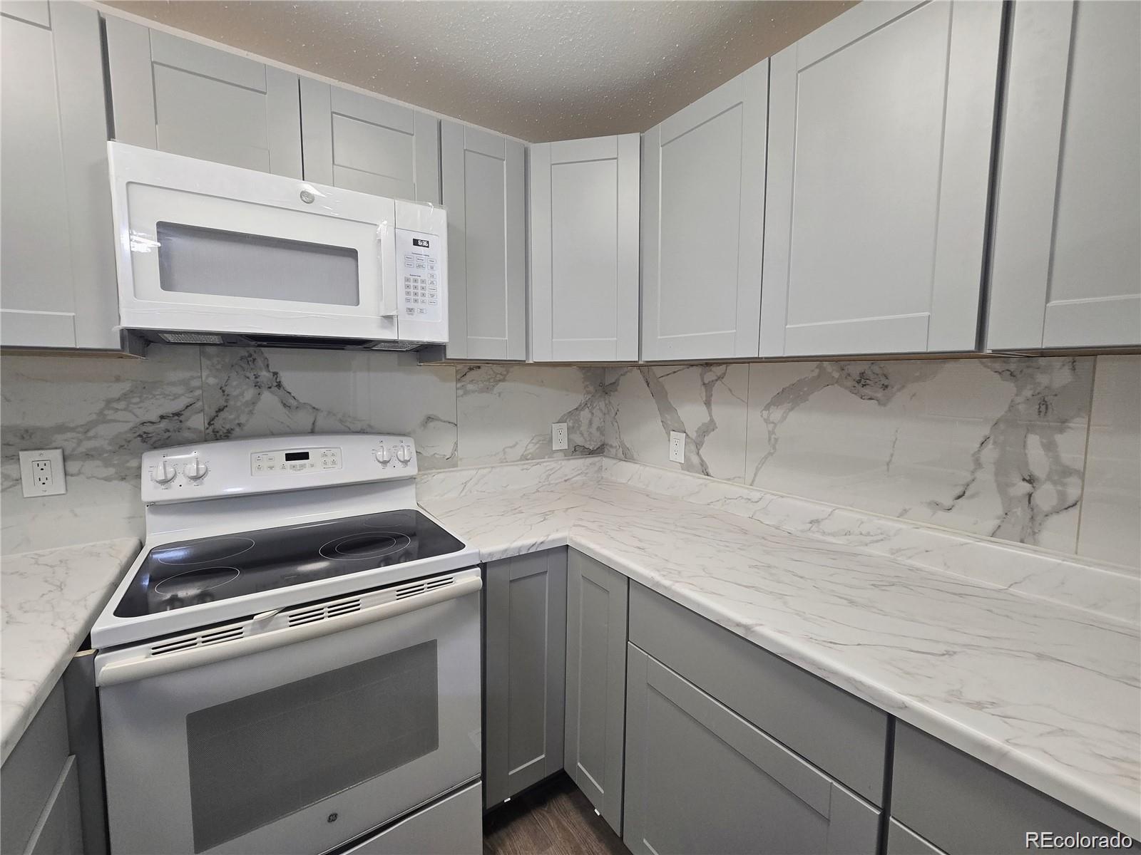 Updated 1-Bedroom, 1-Bathroom Condominium This residence offers an open floor plan with a newly remodeled kitchen. The spacious bedroom includes a walk-in closet, while the living room showcases a stone wood-burning fireplace. Recent updates include fresh interior paint and laminate flooring throughout. Conveniently located with easy access to I-225, light rail, and Aurora Town Square for shopping and dining.