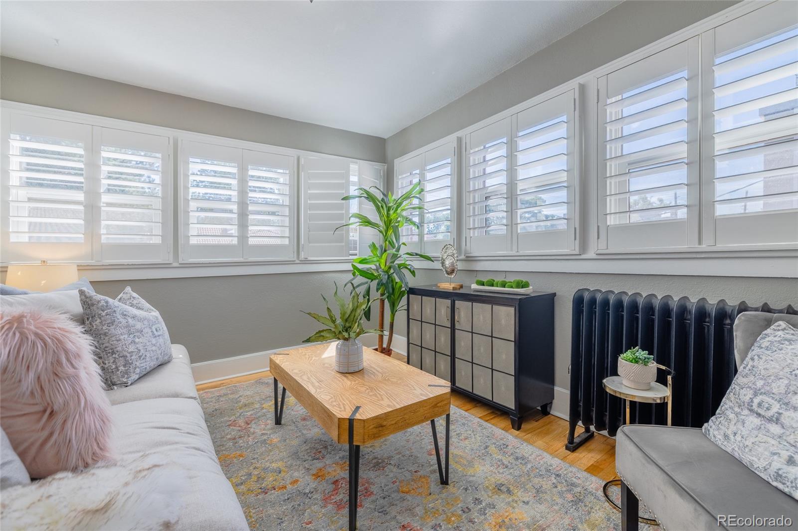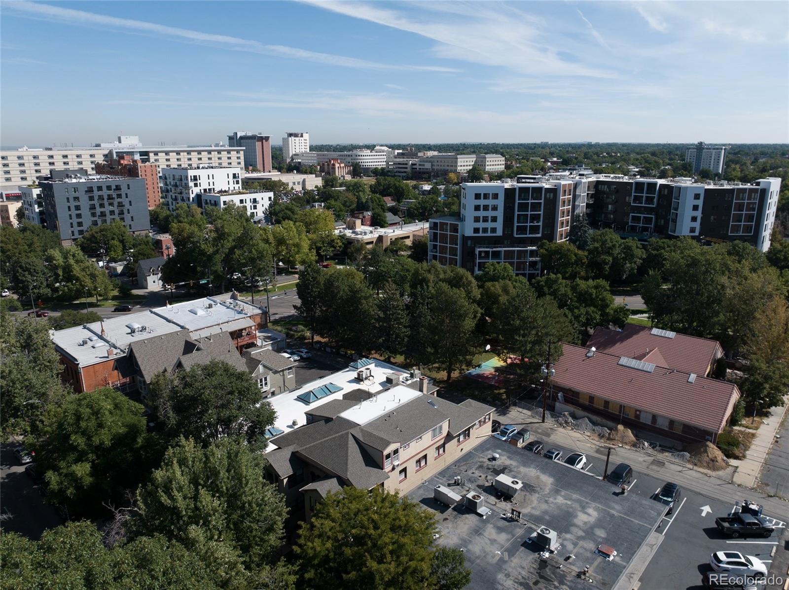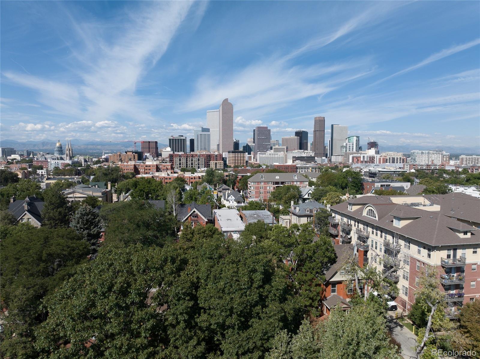 Denver’s beloved and bustling Uptown Neighborhood is home to this charming 2-story condo offering urban living that incorporates both historic character and updated contemporary finishes. Upon entry, hardwoods reveal an open floor plan, soaring ceilings, and an abundance of windows flooding the space with natural light, not to mention fresh paint and impressive 4½-inch wooden shutters throughout. A well-appointed kitchen with stainless steel appliances and brand new refrigerator is trimmed by chic white cabinetry while bar-height seating borders the dining room beyond, giving way to a fabulous, inviting living room. Step outside to enjoy your wonderful outdoor space via private access directly from the kitchen to a sizable deck. The main floor is completed by a stylish bedroom with closet and ¾-ensuite. Stately spiral staircase climbs to the second-story loft boasting exposed brick wall, vaulted ceilings, and skylight. Retreat upstairs to a spacious ensuite bedroom with full-bath and large walk-in closet conveniently including brand new side-by-side washer and dryer. A separate flex space provides unlimited potential for a home-office, nursery, reading nook, or any number of desirable uses. In addition to a dedicated storage space in the basement, this unit also comes with its own deeded parking space in the private lot at the back of the property. This quaint, 8-unit community provides several perks including secured access at both the front door and back gate, as well as HOA covering a substantial amount of maintenance, utilities, and amenities. Excellent location minutes from beloved City Park, Cheesman Park and Downtown Denver, plus easy access to Washington Park and Cherry Creek. Close proximity to tons of shopping, dining and entertainment options, nearby public transit, and more.