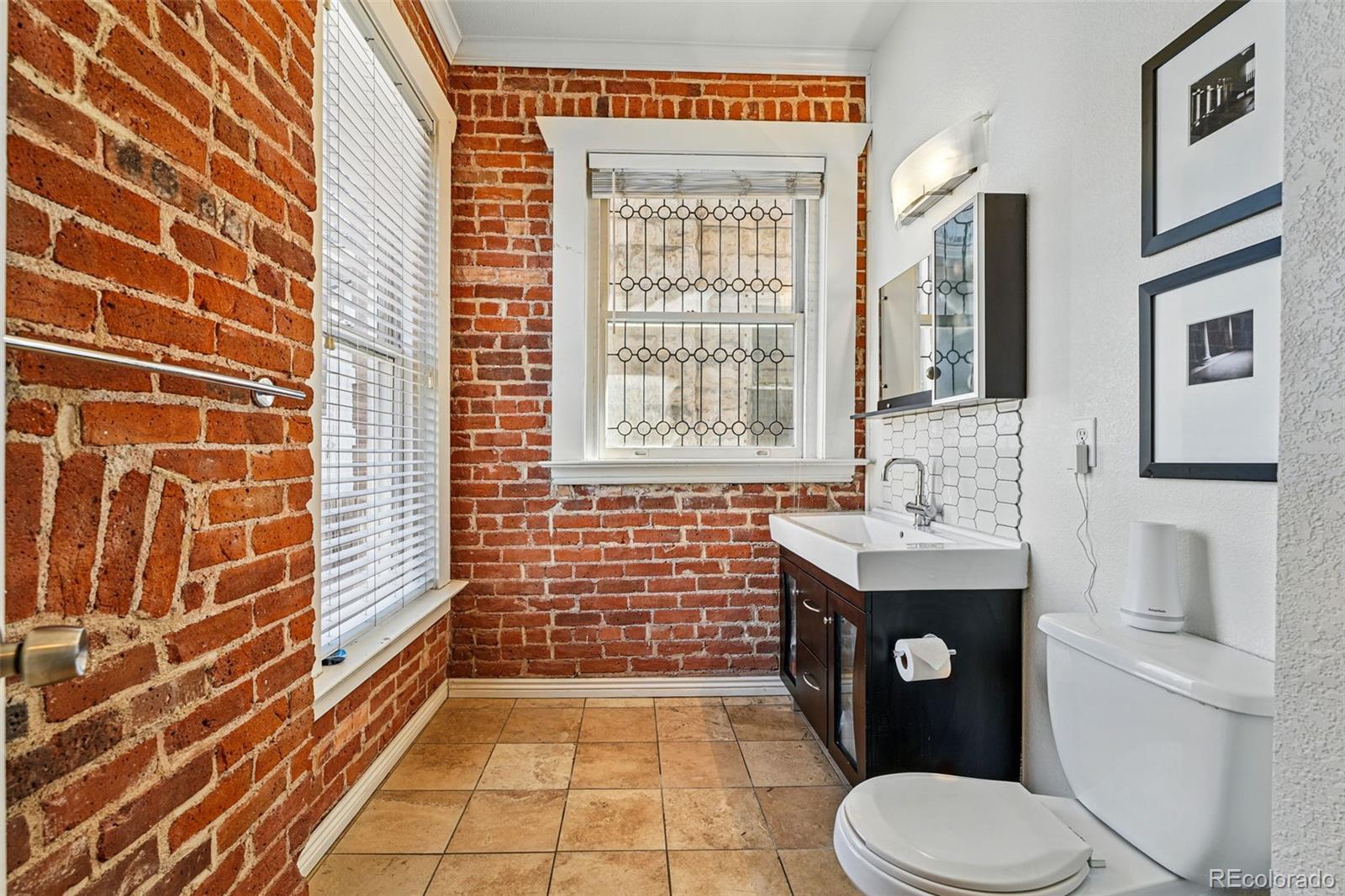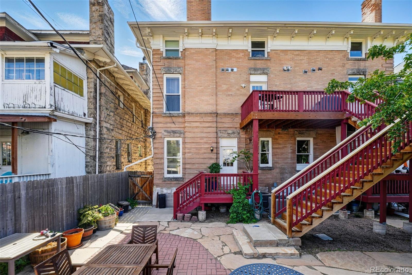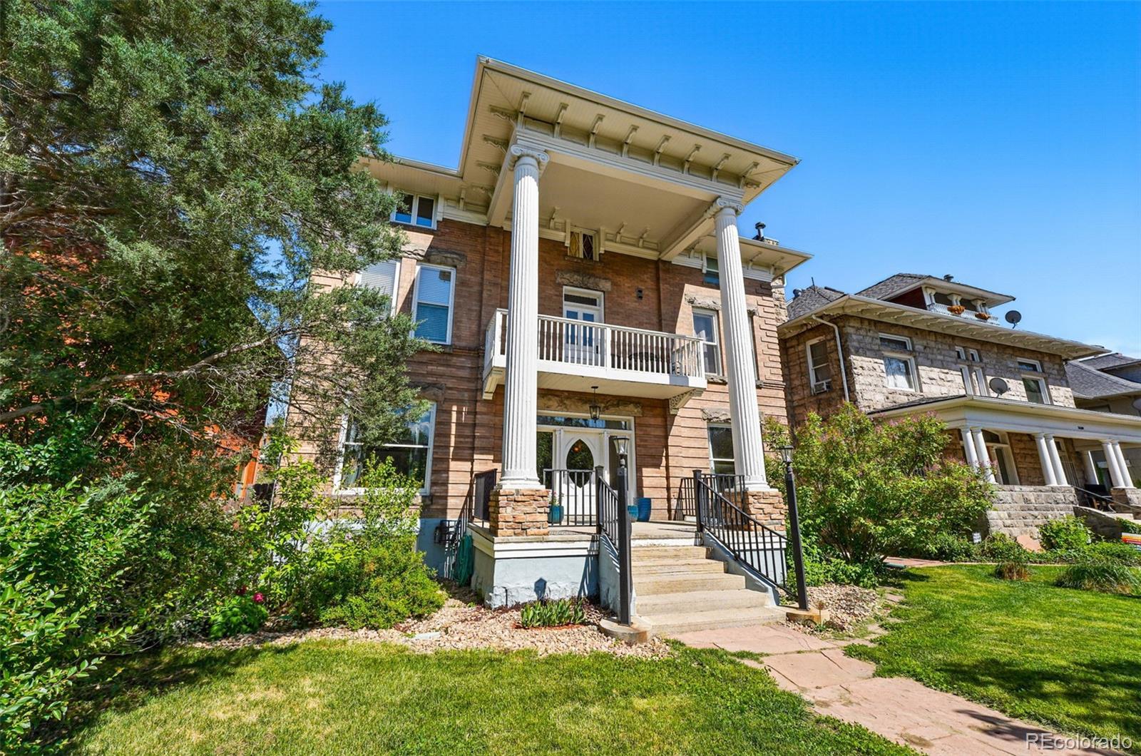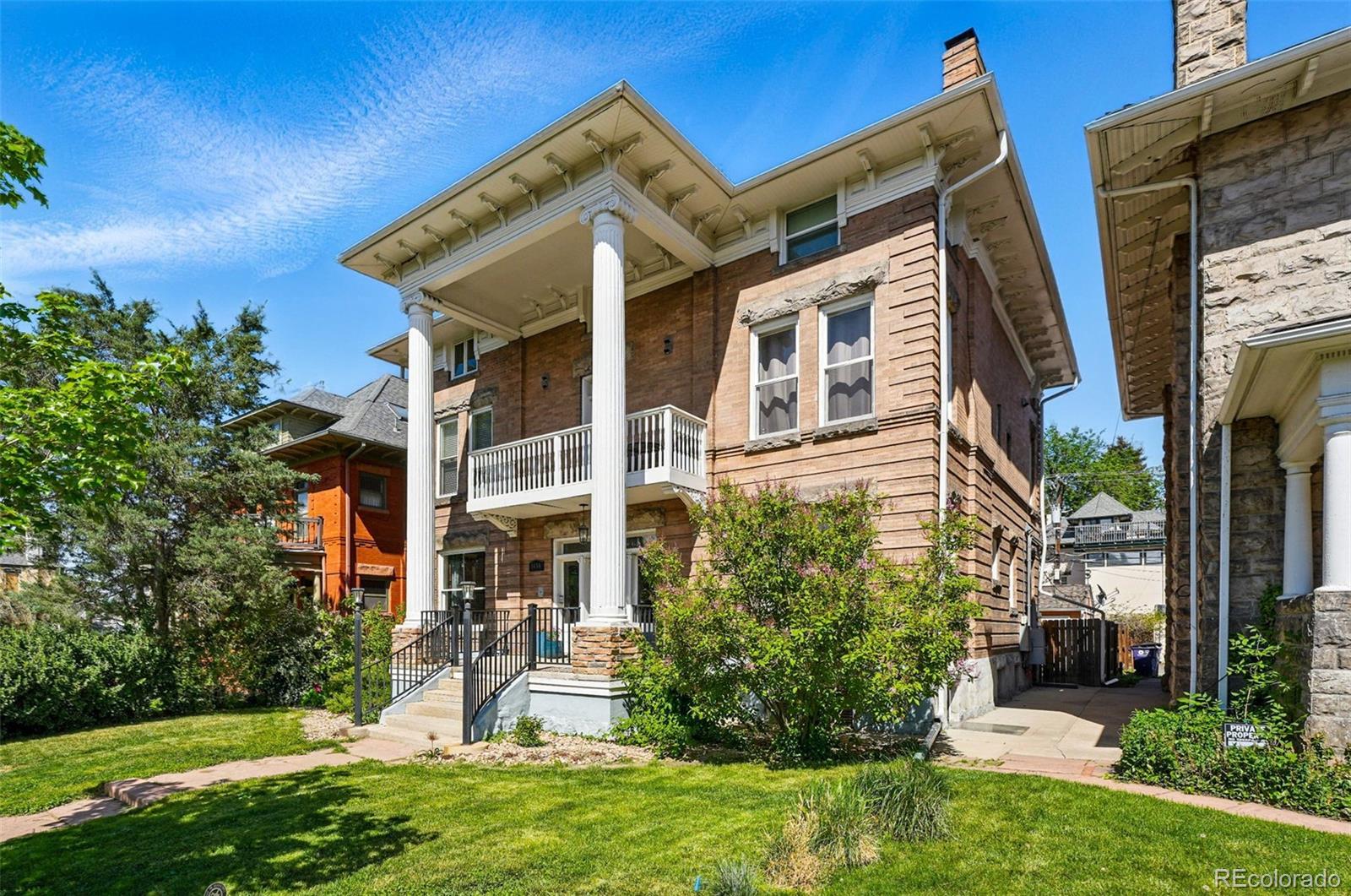 A rare gem in the historic Franklin Mansion! Built in 1898 and beautifully reimagined for today’s lifestyle, this home captures the best of Denver’s charm and modern convenience. The main level impresses with tall ceilings, oversized windows, rich hardwood floors, and exposed brick that highlights its timeless character. The inviting living space centers around an original fireplace mantle, flowing seamlessly into a stylishly updated kitchen featuring marble countertops, stainless steel appliances, and an undermount sink—perfect for entertaining or everyday comfort. A bright and spacious half bath on the main floor adds both convenience and charm. Downstairs, two generously sized bedrooms each feature their own fully remodeled en-suite bath, offering privacy and comfort for residents or guests. A dramatic two-story built-in bookshelf creates a stunning architectural focal point at the landing. Step out through your private rear entrance to enjoy your own deck, opening to a shared courtyard with a community garden, fire pit, and outdoor dining area—ideal for relaxing or gathering with neighbors. With a private garage and prime location just one block from Cheesman Park, this home is the perfect balance of historic soul and modern ease.