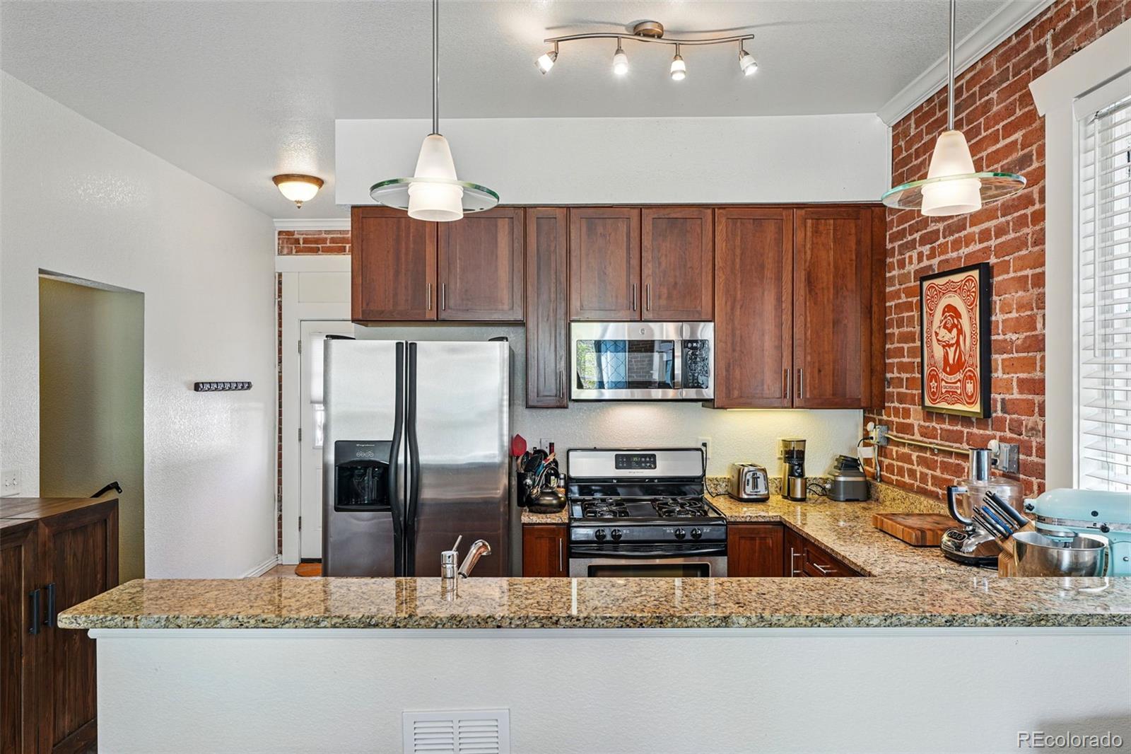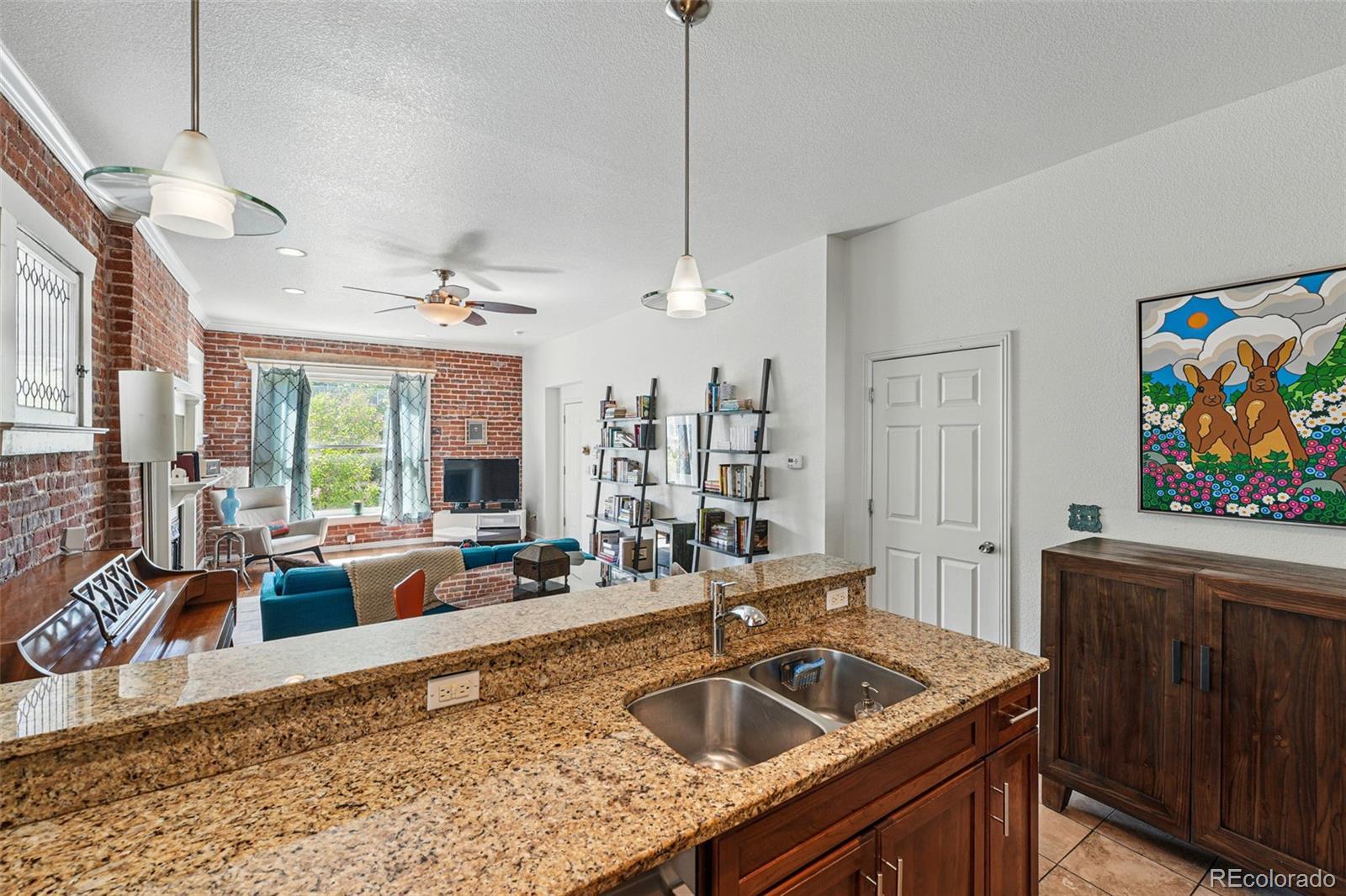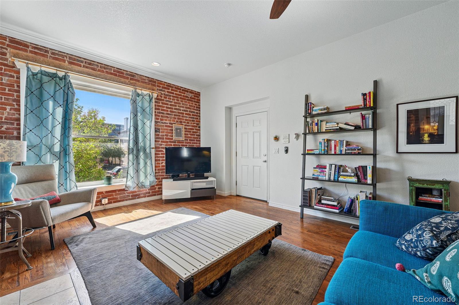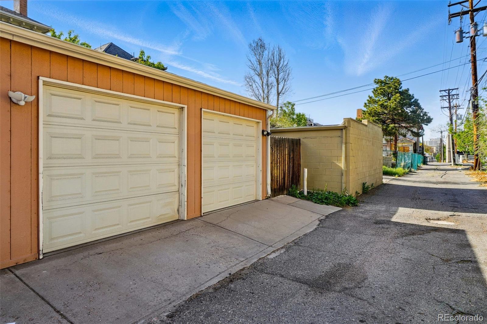 A rare gem in the historic Franklin Mansion! Built in 1898 and beautifully reimagined for today’s lifestyle, this home captures the best of Denver’s charm and modern convenience. The main level impresses with tall ceilings, oversized windows, rich hardwood floors, and exposed brick that highlights its timeless character. The inviting living space centers around an original fireplace mantle, flowing seamlessly into a stylishly updated kitchen featuring marble countertops, stainless steel appliances, and an undermount sink—perfect for entertaining or everyday comfort. A bright and spacious half bath on the main floor adds both convenience and charm. Downstairs, two generously sized bedrooms each feature their own fully remodeled en-suite bath, offering privacy and comfort for residents or guests. A dramatic two-story built-in bookshelf creates a stunning architectural focal point at the landing. Step out through your private rear entrance to enjoy your own deck, opening to a shared courtyard with a community garden, fire pit, and outdoor dining area—ideal for relaxing or gathering with neighbors. With a private garage and prime location just one block from Cheesman Park, this home is the perfect balance of historic soul and modern ease.