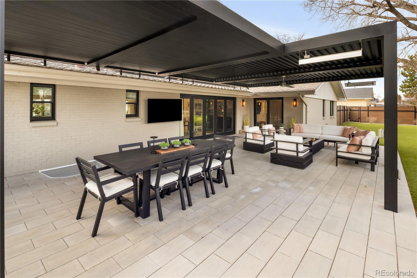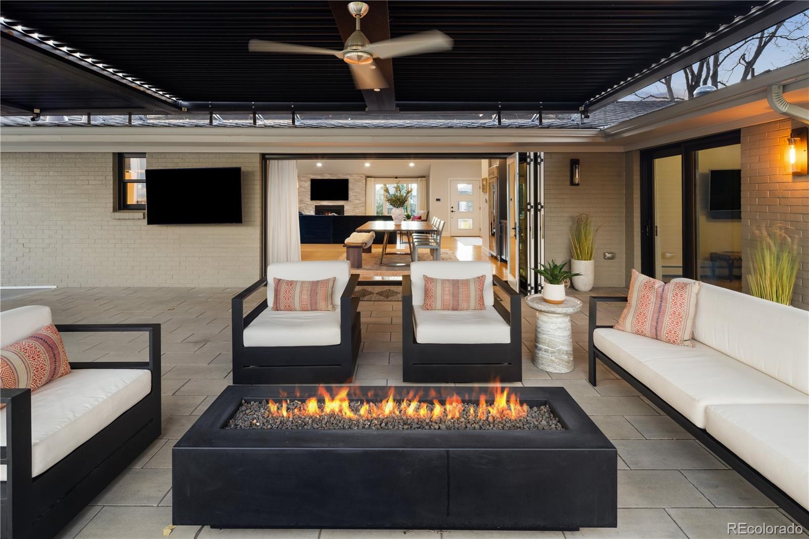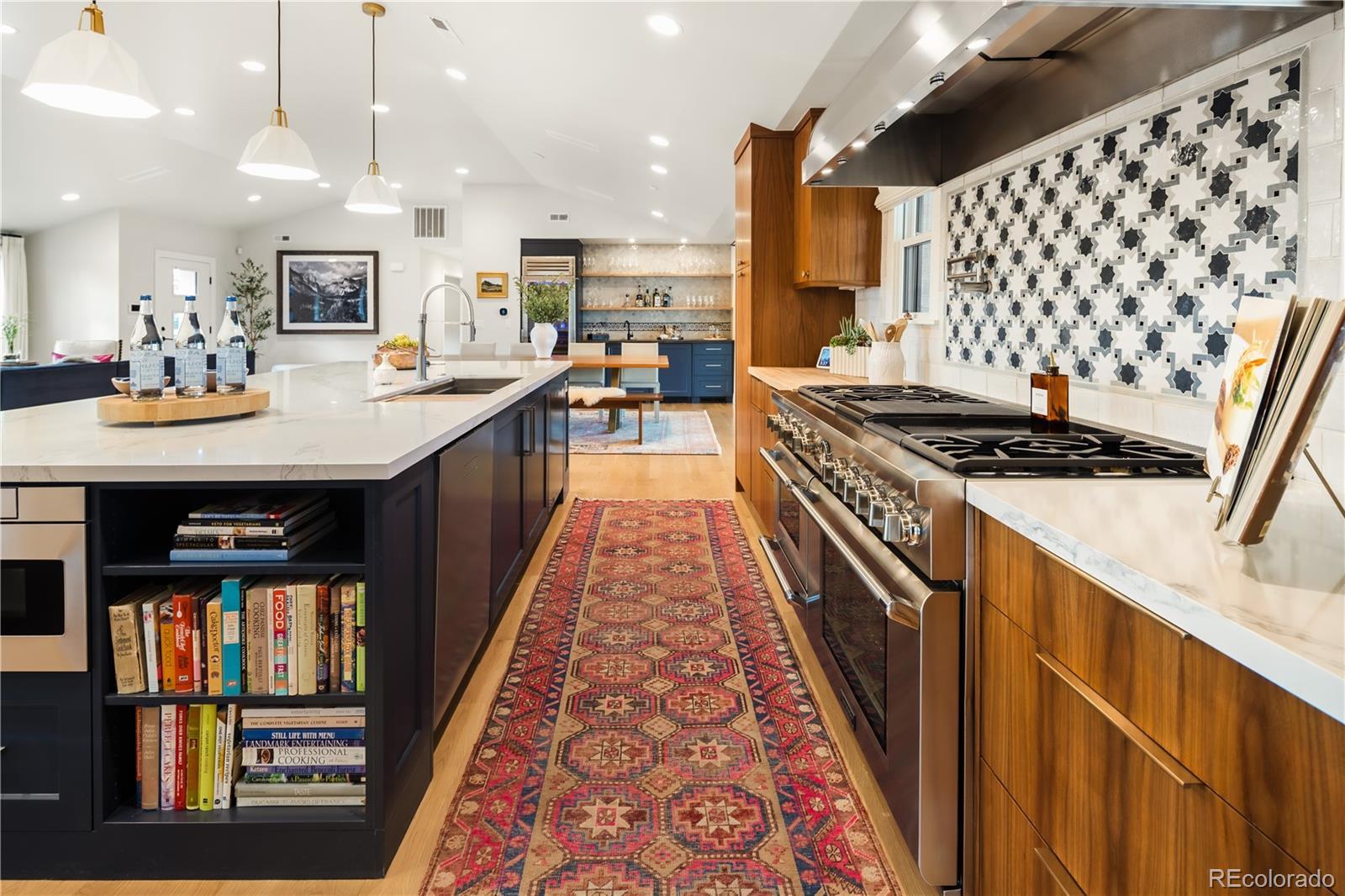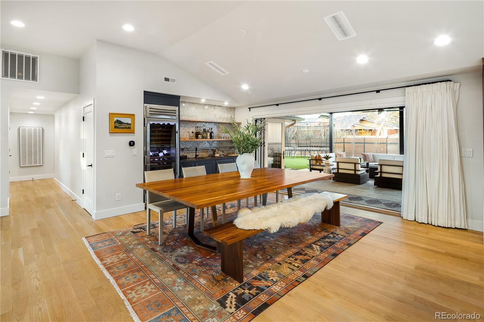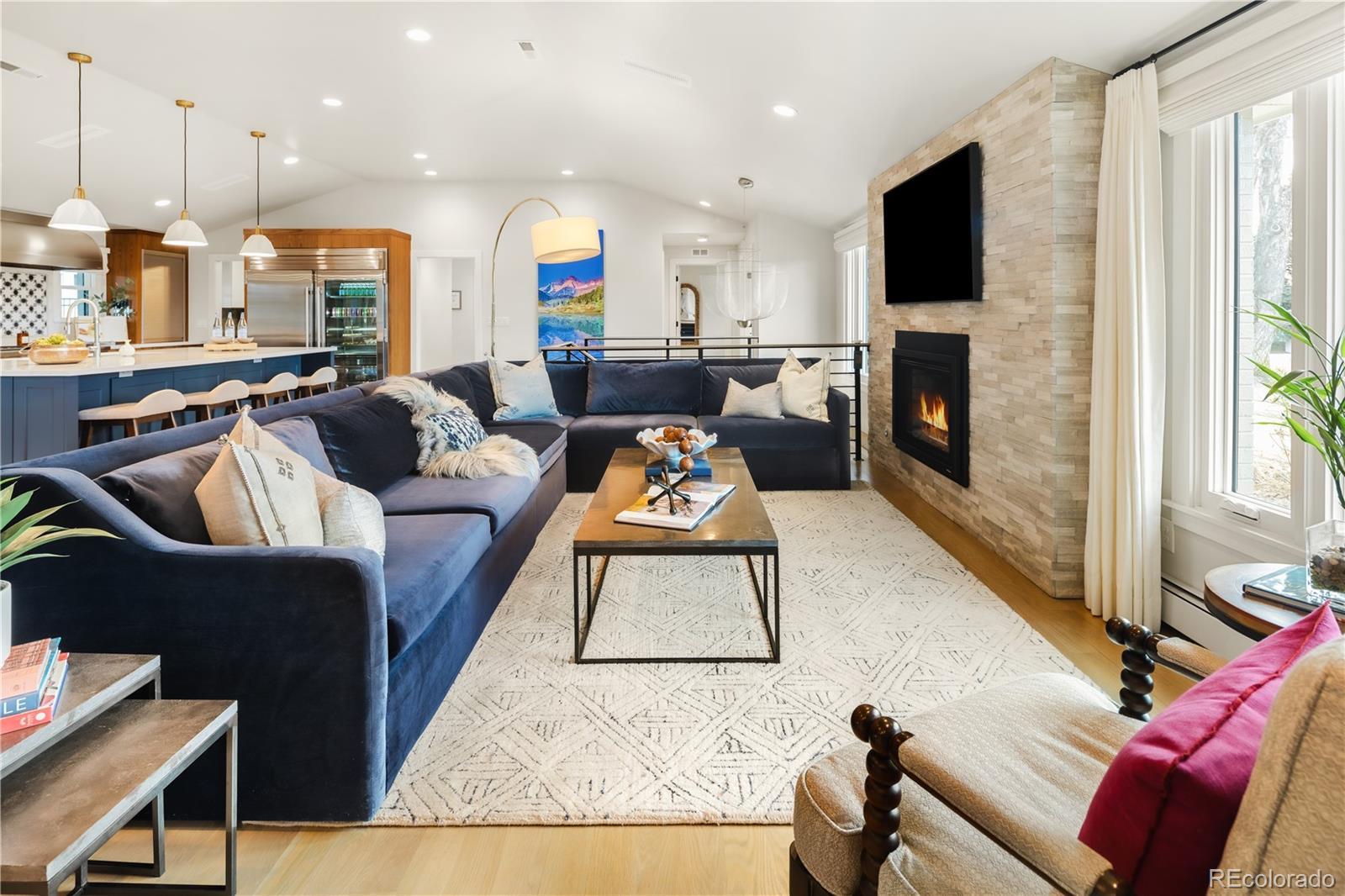 Thoughtfully curated, five bed/six bath masterful renovation. Two additional dens serve as convenient home offices. Vaulted ceiling great room with mountain views and custom floor-to-ceiling stone fireplace. With imported Moroccan Zellige tile, Ann Sacks and Delta selections, you will find no detail overlooked. Spacious main floor living and three zones for household members or guests, including four en suites with in-floor heat. Professional chef-designed kitchen with custom walnut cabinetry, pass through pantry with Elkay water dispenser, Thermador 60" Range, True Side by Side Refrigerator/Freezer, Vent-A-Hood and dual Asko dishwashers. Plenty of storage on three sides of the white quartz island. Stunning custom wet bar, complete with 150 bottle True wine refrigerator, integrated beverage center and Sub Zero ice machine. Perfect indoor-outdoor connection via accordion doors, which open onto the half-acre lot. Design aficionados will appreciate this zen oasis, complete with luxury hardscape, xeriscaping and modern Infinity Euro panel fencing (over 300K in exterior additions.) Elevated entertaining abounds with whole-house sound system which features high-end REL, Vienna Acoustics and BluSound speakers with BluSound amps, motorized louvered pergola, patio heaters, firepit, outdoor television, and low maintenance artificial turf. All televisions, Blusound sound bars and sound system are included. Massive ~1,000 square foot 3-car heated garage reaching 17 feet in height, custom cabinetry and room for year round hobbies. Modern efficiency with 26 owned Silfab 400-watt solar panels (10.4 kW system), a new Bryant 800SA high-efficiency heat pump (approx. 60% utility savings), full security system, Cat 6 wiring with three wifi hubs, Level exterior smart locks, epoxy garage floors, Chargepoint EV station, and even a dedicated dog wash—this is easy living in one of Denver’s most sought-after enclaves. Moments from Kent Denver School, St. Mary’s Academy & Denver Academy.