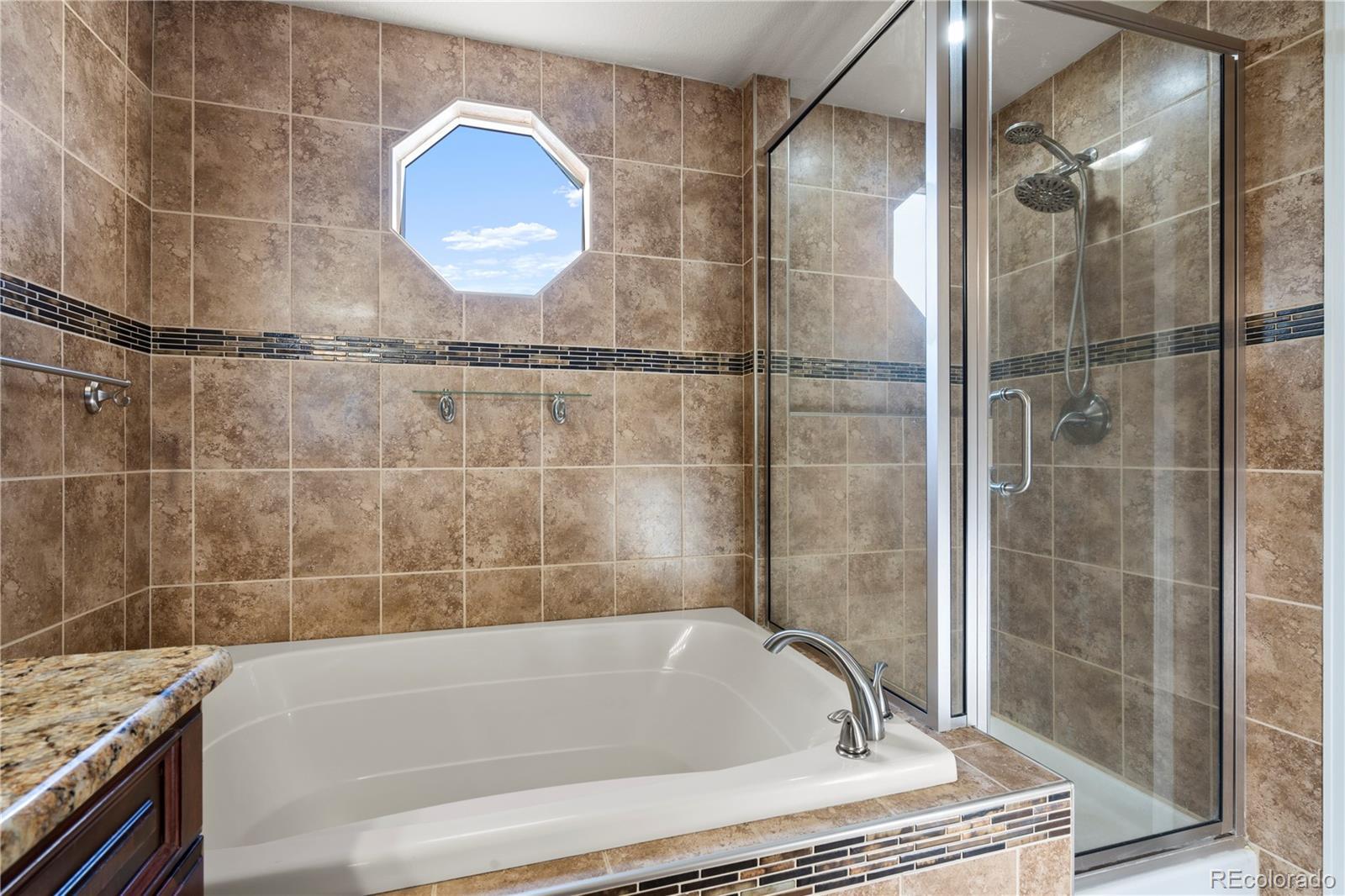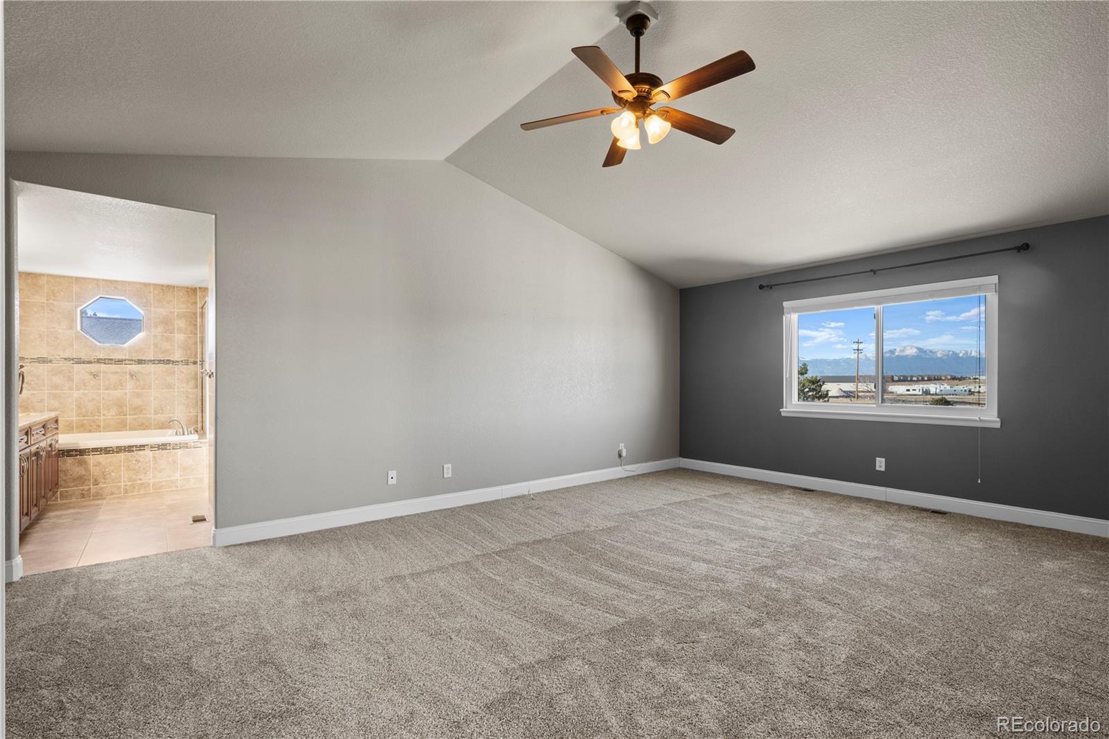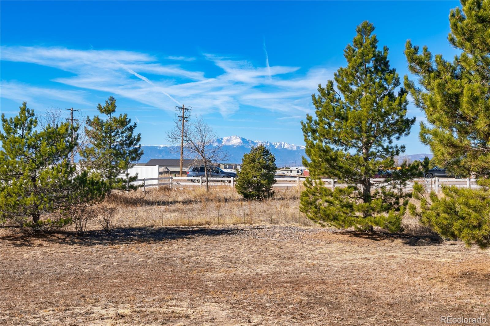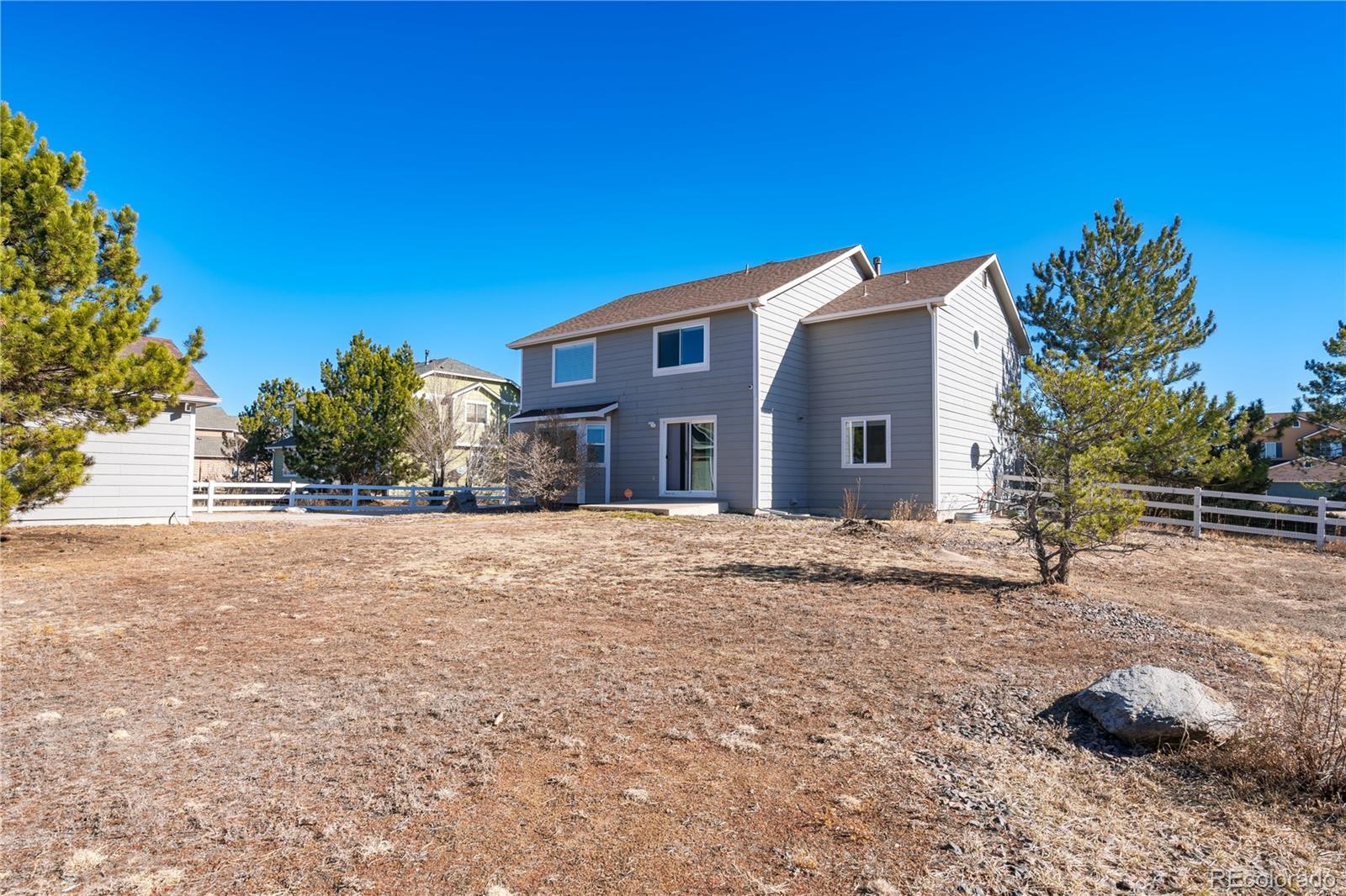 Pikes Peak stands as the majestic backdrop to this exceptional two-story home, offering breathtaking mountain views from the formal dining room, gourmet kitchen, family room, primary suite, and across the expansive half-acre backyard. This residence seamlessly blends architectural grandeur with high-end custom finishes and timeless quality. The main level is defined by soaring vaulted ceilings in both the living and family rooms, creating an airy, light-filled atmosphere that highlights the exquisite hardwoods and rare, flush-mount matching floor vents. The gourmet kitchen is a chef’s delight with granite countertops, a stunning pantry and custom cabinetry. Subtle touches of luxury extend throughout the home with granite surfaces in nearly every bathroom and the spacious laundry room. Retreat to the massive primary suite, a private sanctuary featuring its own vaulted ceilings, iconic views of the Peak, and brand-new, plush carpeting. The attached five-piece master bath offers custom tiling and a generous walk-in closet. A major highlight is the newly finished basement, providing significant additional living space perfect for a home theater, guest quarters, or a massive playroom. For the enthusiast, the property offers an incredible total of five garage spaces—including a three-car attached garage and a detached two-car workshop—plus gated RV parking on the oversized lot. Modern convenience is integrated throughout, from the nearly whole-home dimmable lighting to a comprehensive security system protecting all windows and doors. Ideally located within walking distance to the King Soopers Marketplace and local dining, this is an incredible opportunity to own a home of this scale and caliber, where the massive 5-car capacity and 2-car detached shop perfectly complement the unmatched quality and world-class views of Pikes Peak.
