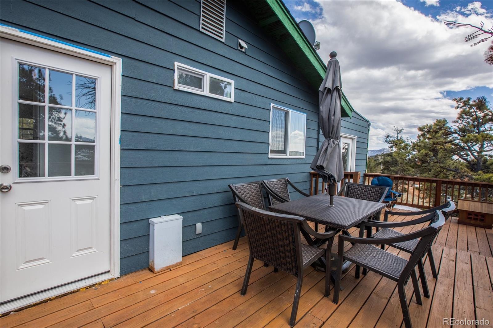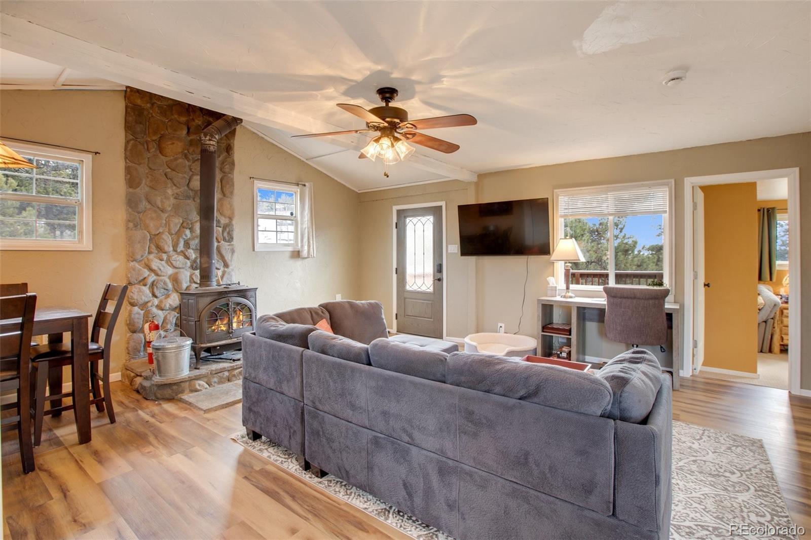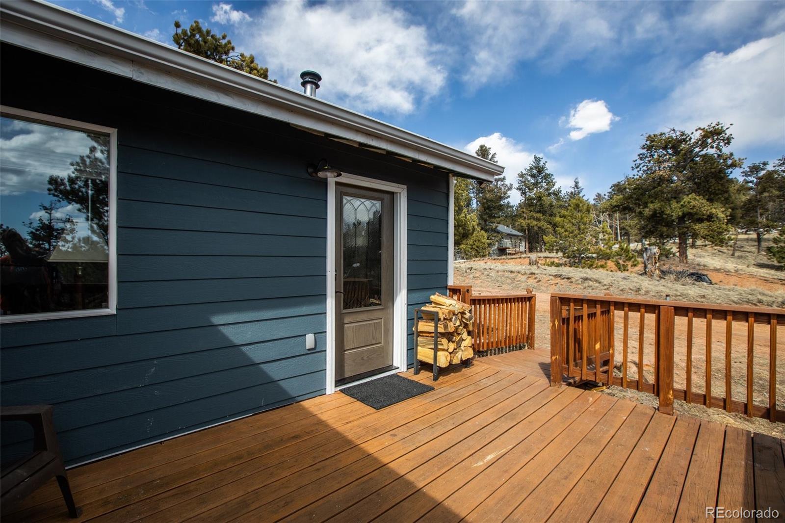 Discover the ultimate mountain getaway at this beautifully modernized retreat, designed for family relaxation and adventure. Nestled in serene natural surroundings, this charming home offers stunning views and abundant wildlife, creating a peaceful haven while providing modern conveniences. Enjoy the best of both worlds—proximity to local shops and restaurants, yet blissfully distanced from the city's hustle. The home features two inviting decks: a back deck perfect for alfresco dining and a front deck ideal for sipping morning coffee while watching the sunrise or observing deer stroll by. This 800+ sq. ft. home ensures privacy and comfort, featuring: Master Bedroom: A serene space with French doors leading to the back deck. Second Bedroom: A cozy, versatile room currently with a stylish bunk bed (full-sized bottom, twin top). Remodeled Bathroom: Brand-new plumbing and modern fixtures. Full Kitchen: Equipped with all appliances, ready for family meals. The home also includes a heating and A/C unit for year-round comfort, a charming wood stove for cozy nights, optional high-speed wireless internet, and a washer/dryer for added convenience. Meticulously updated with new windows, flooring, plumbing, electrical systems, doors, and light fixtures, this retreat is ideal as a vacation home, full-time residence, or short-term rental. For outdoor enthusiasts, the location offers easy access to gold medal fishing at Eleven Mile Canyon, ATV/OHV trails, horseback riding, and hiking/biking at Dome Rock Wildlife Area, Mueller State Park, and Florissant Fossil Beds National Monument. This mountain retreat provides the perfect mix of seclusion, comfort, and adventure.