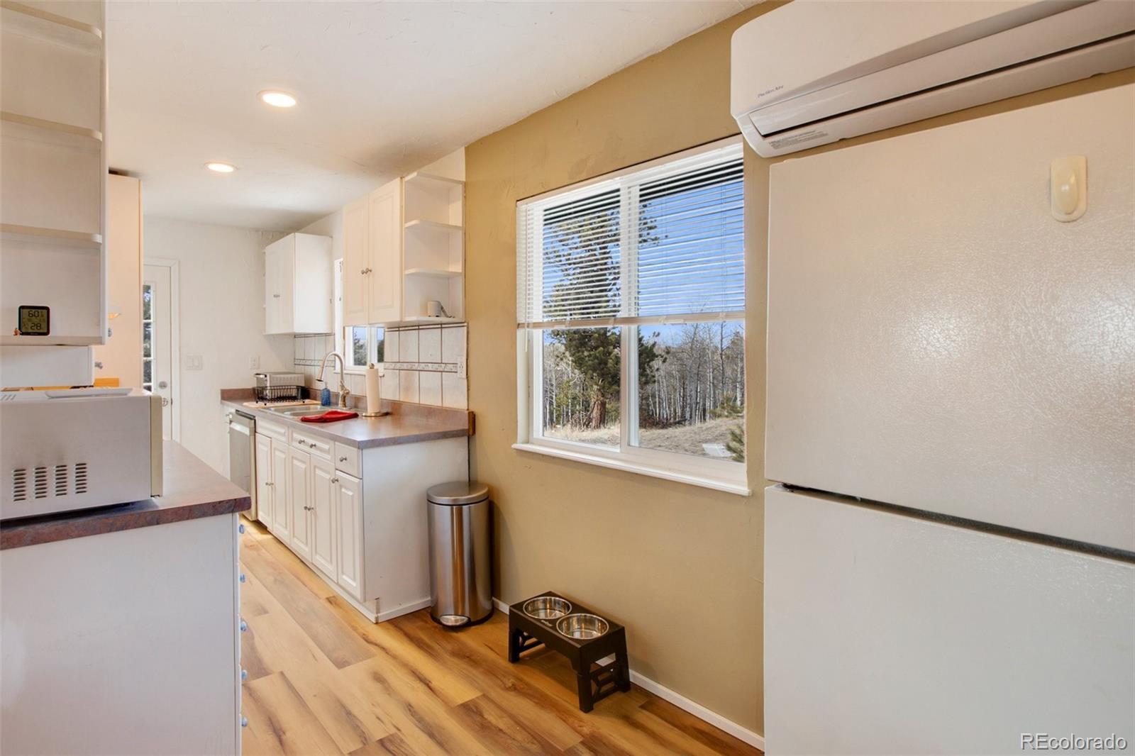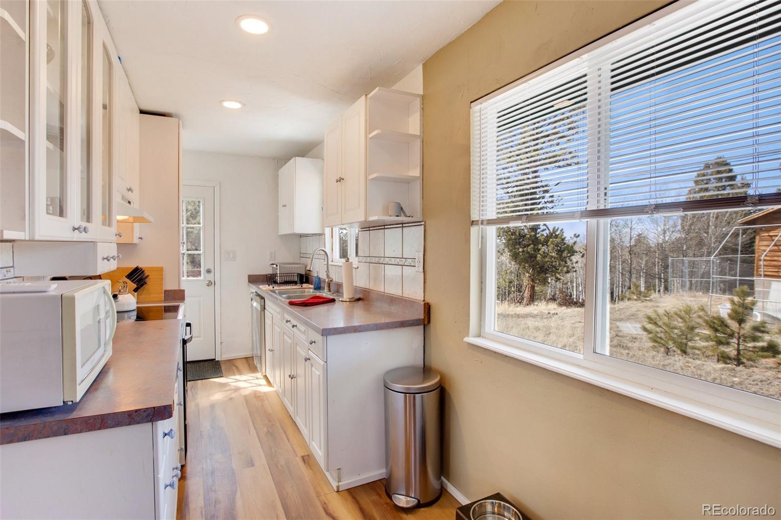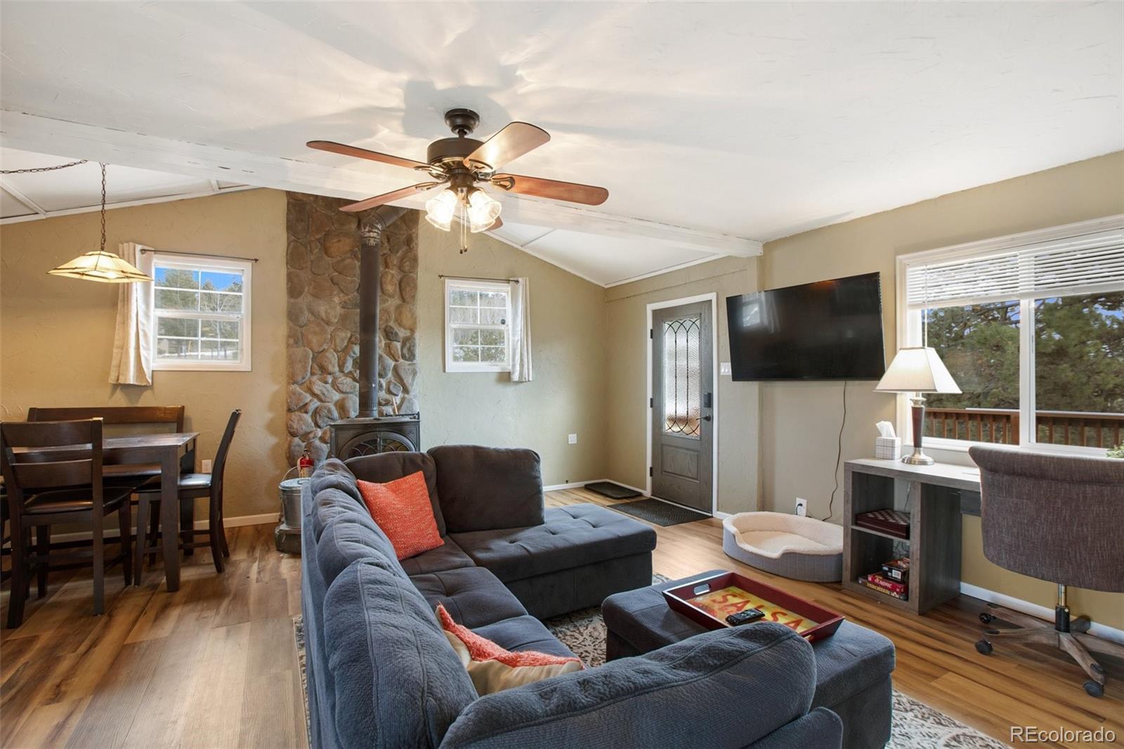 Discover the ultimate mountain getaway at this beautifully modernized retreat, designed for family relaxation and adventure. Nestled in serene natural surroundings, this charming home offers stunning views and abundant wildlife, creating a peaceful haven while providing modern conveniences. Enjoy the best of both worlds—proximity to local shops and restaurants, yet blissfully distanced from the city's hustle. The home features two inviting decks: a back deck perfect for alfresco dining and a front deck ideal for sipping morning coffee while watching the sunrise or observing deer stroll by. This 800+ sq. ft. home ensures privacy and comfort, featuring: Master Bedroom: A serene space with French doors leading to the back deck. Second Bedroom: A cozy, versatile room currently with a stylish bunk bed (full-sized bottom, twin top). Remodeled Bathroom: Brand-new plumbing and modern fixtures. Full Kitchen: Equipped with all appliances, ready for family meals. The home also includes a heating and A/C unit for year-round comfort, a charming wood stove for cozy nights, optional high-speed wireless internet, and a washer/dryer for added convenience. Meticulously updated with new windows, flooring, plumbing, electrical systems, doors, and light fixtures, this retreat is ideal as a vacation home, full-time residence, or short-term rental. For outdoor enthusiasts, the location offers easy access to gold medal fishing at Eleven Mile Canyon, ATV/OHV trails, horseback riding, and hiking/biking at Dome Rock Wildlife Area, Mueller State Park, and Florissant Fossil Beds National Monument. This mountain retreat provides the perfect mix of seclusion, comfort, and adventure.